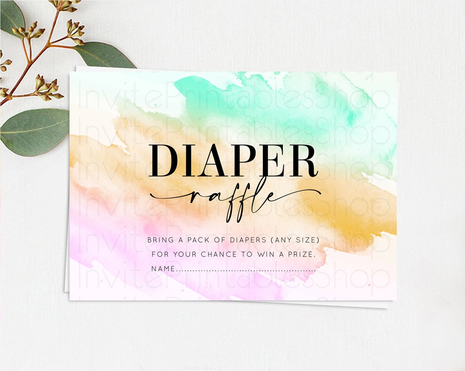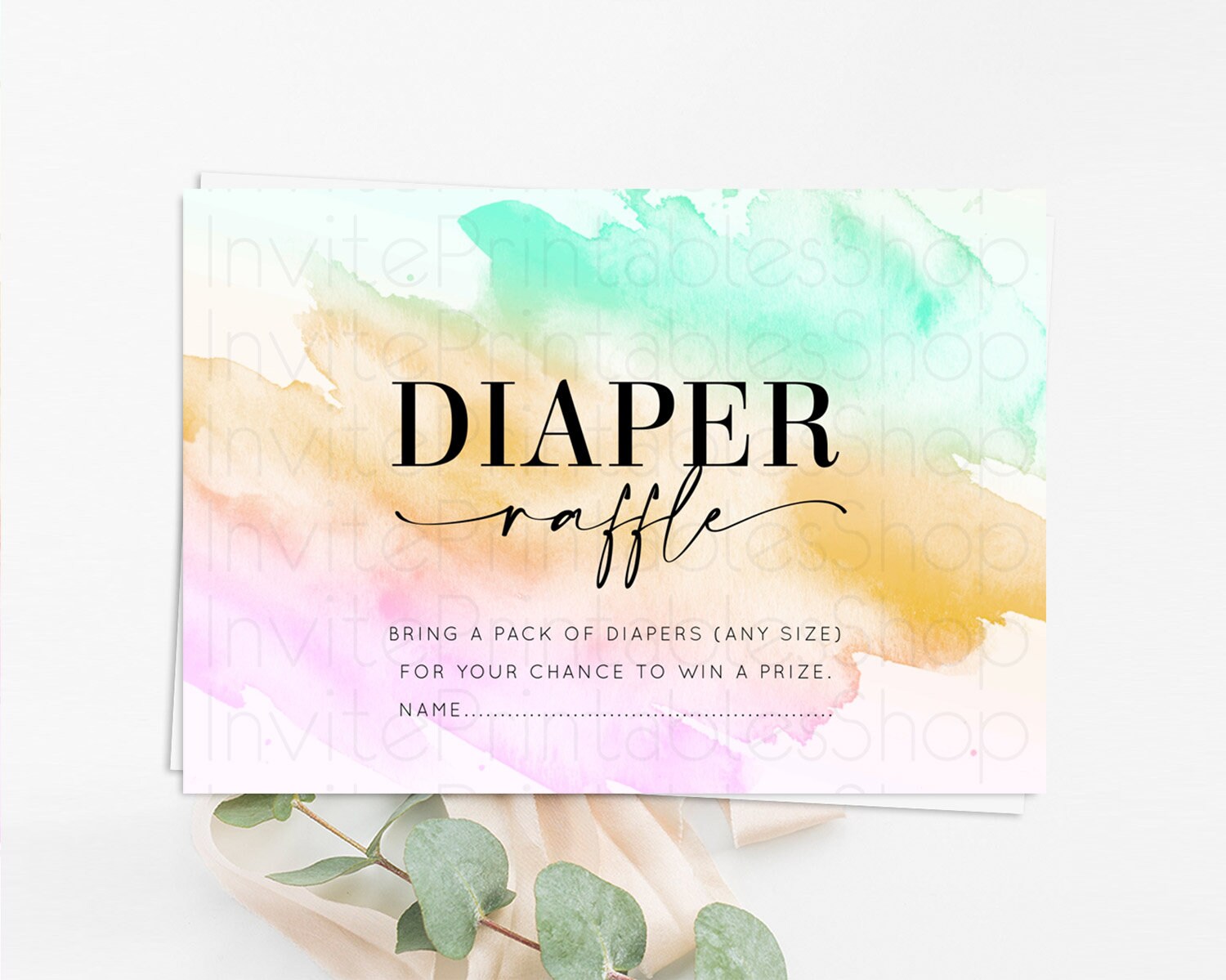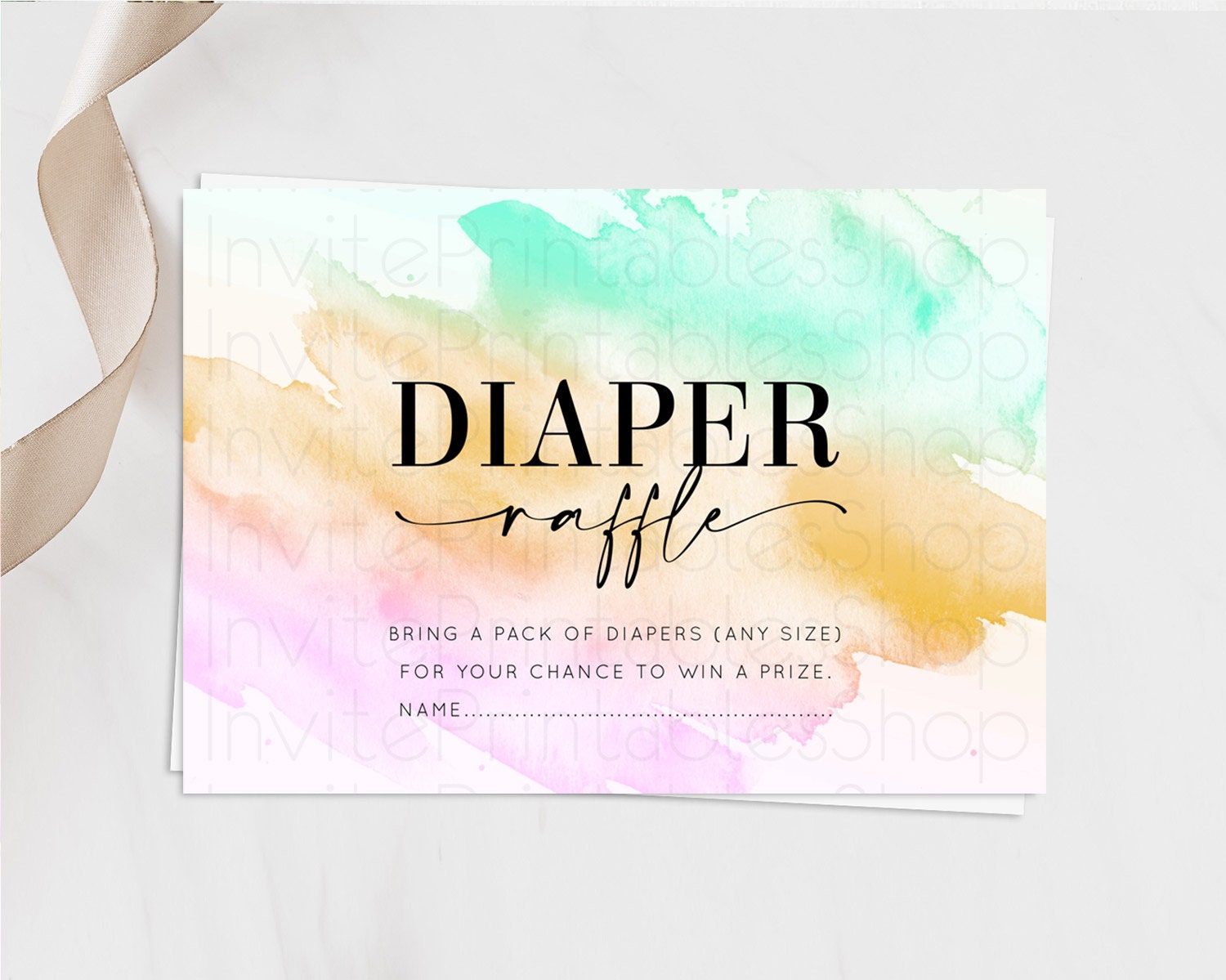 Pastel Diaper Raffle Card Pastel Rainbow Diaper Raffle Insert Colorful Ombre Watercolor Diaper Ticket Confetti Glitter Raffle Game D10962