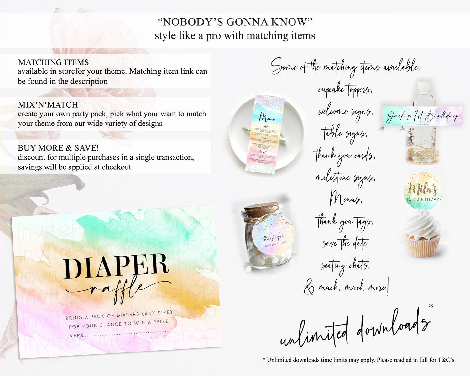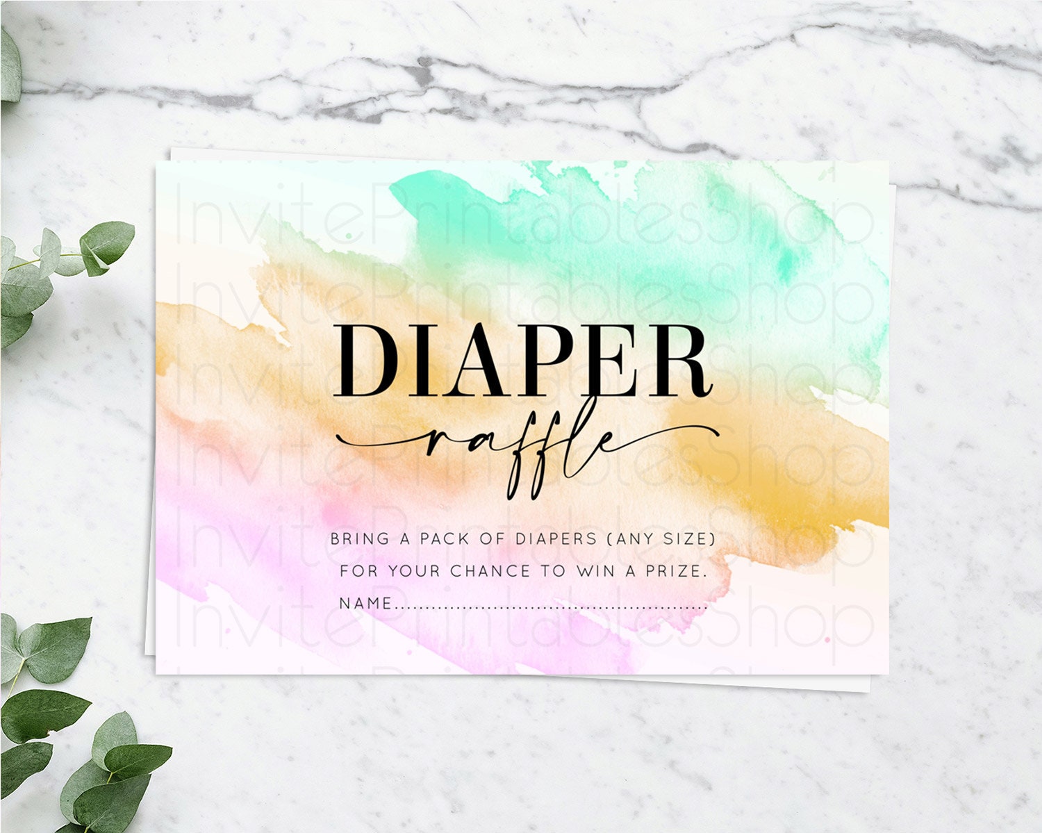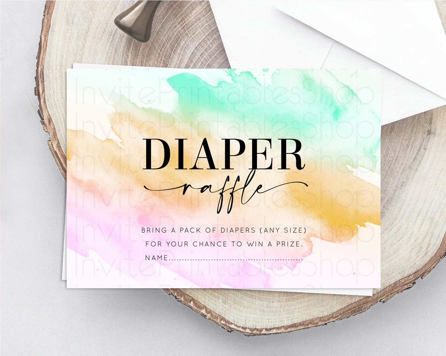Pastel Diaper Raffle Card Pastel Rainbow Diaper Raffle Insert Colorful Ombre Watercolor Diaper Ticket Confetti Glitter Raffle Game D10962