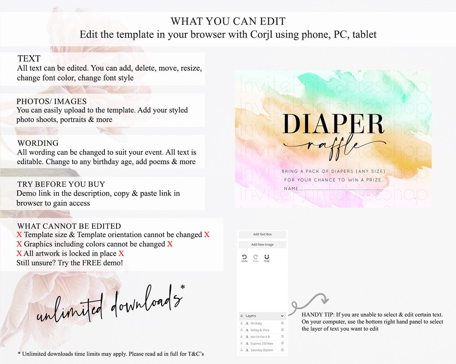 • After purchase, Corjl emails your editing link. Allow up to 15 minutes for delivery.
