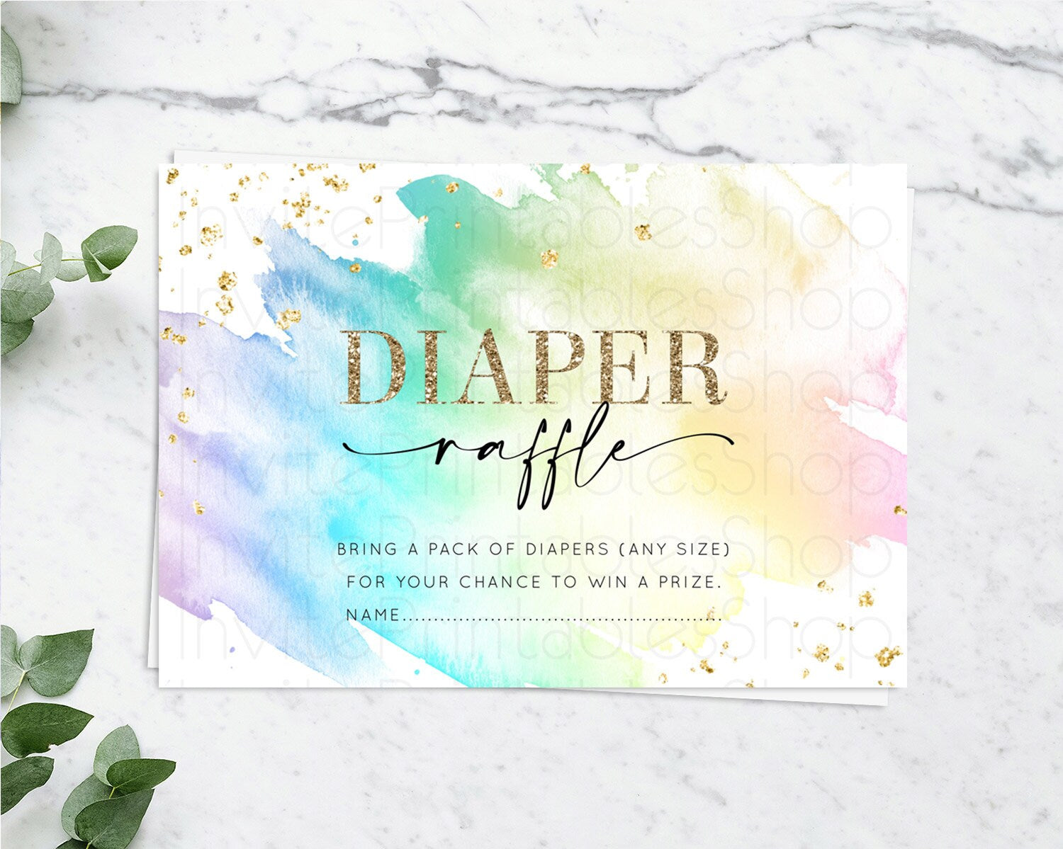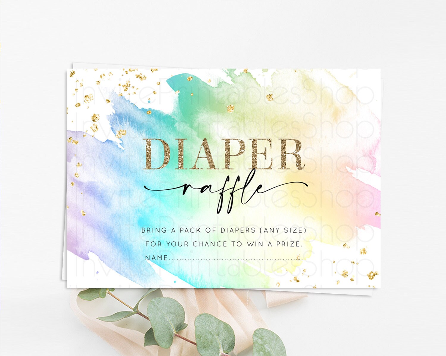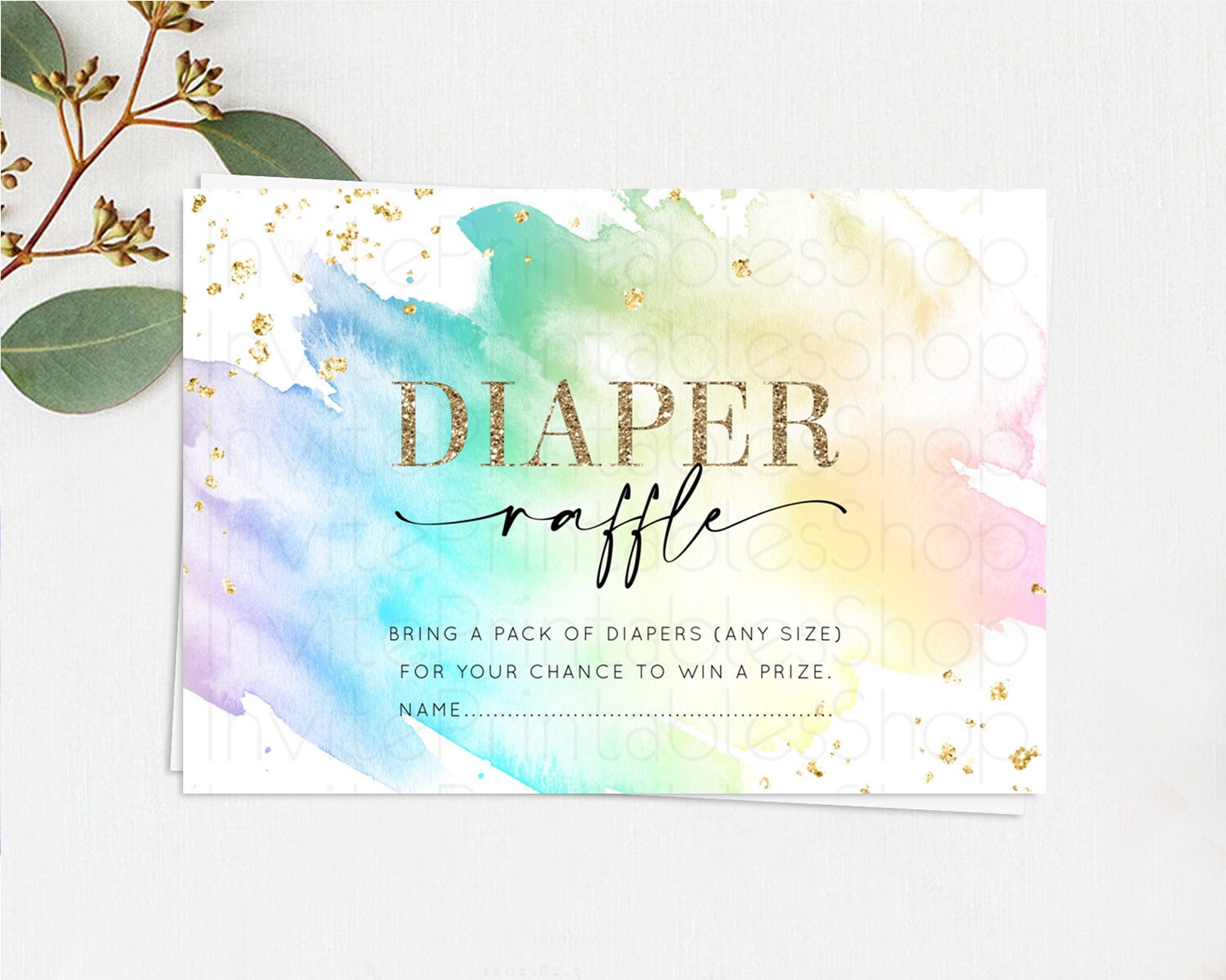 Pastel Diaper Raffle Card Pastel Rainbow Diaper Raffle Insert Colorful Ombre Watercolor Diaper Ticket Confetti Glitter Raffle Game D11028