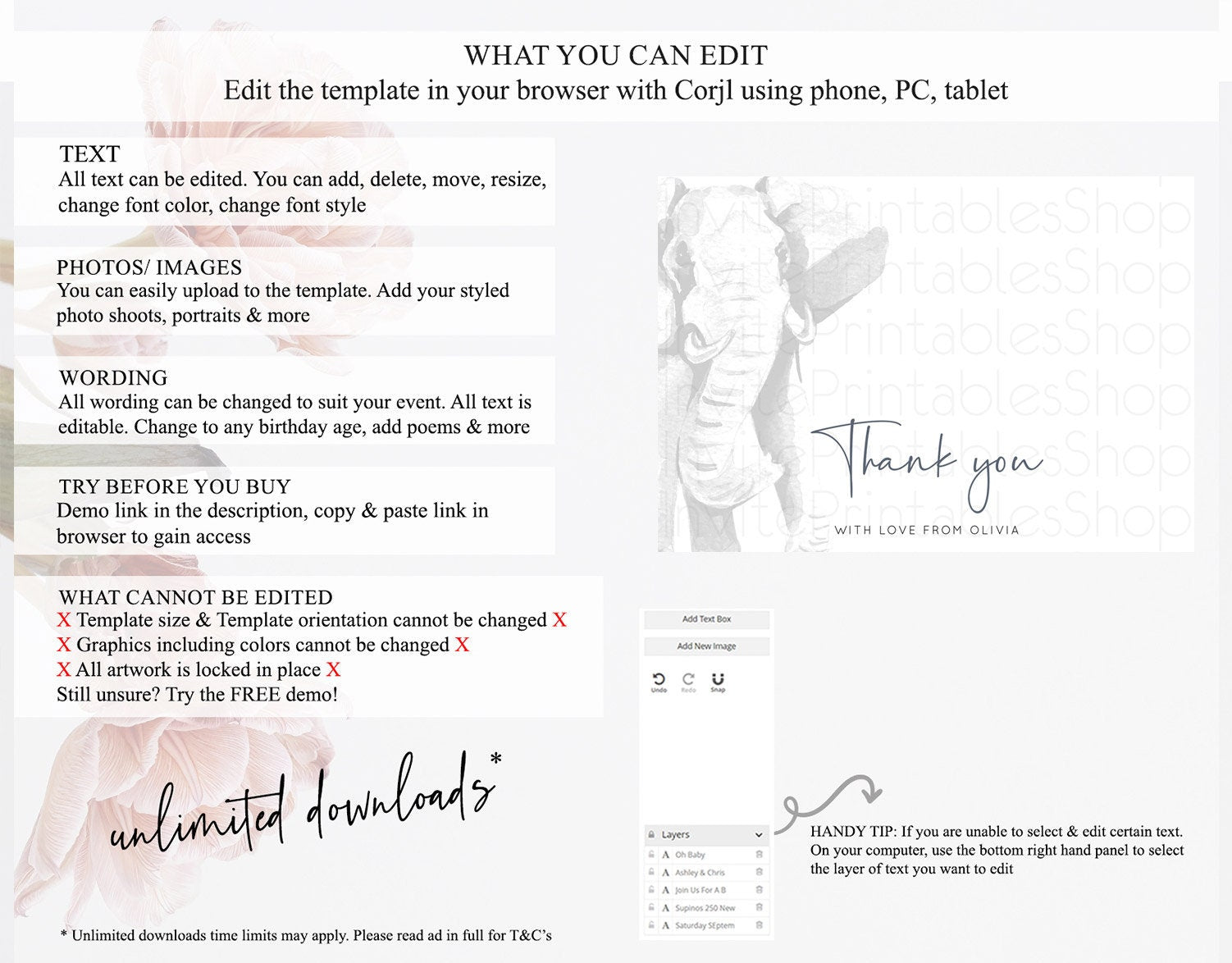 • Template size & orientation cannot be changed. Please use the demo link to confirm this product suits your needs.