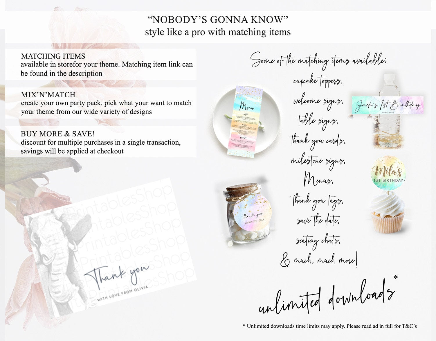 • Content shown in your gallery images is the source of truth for what’s included.