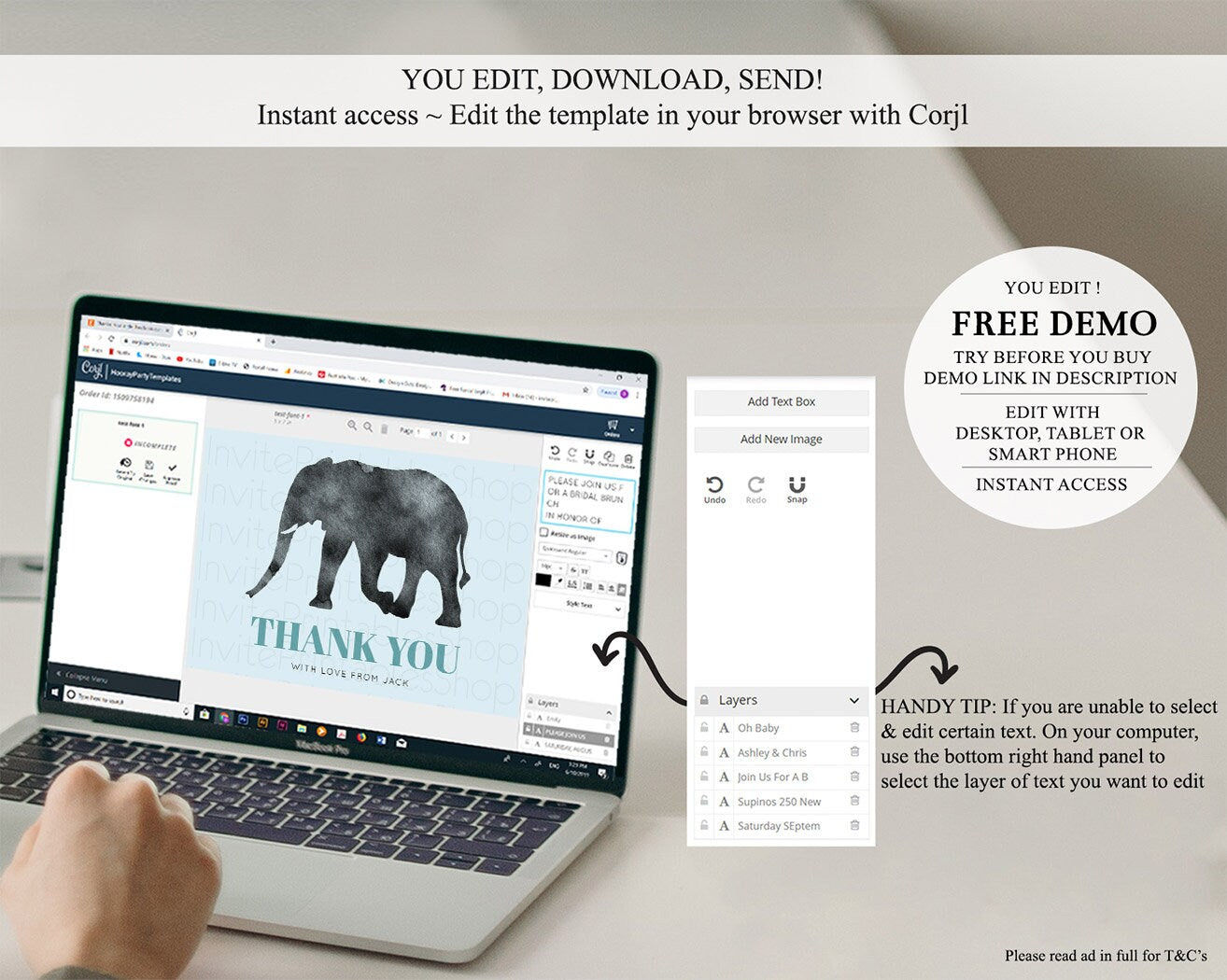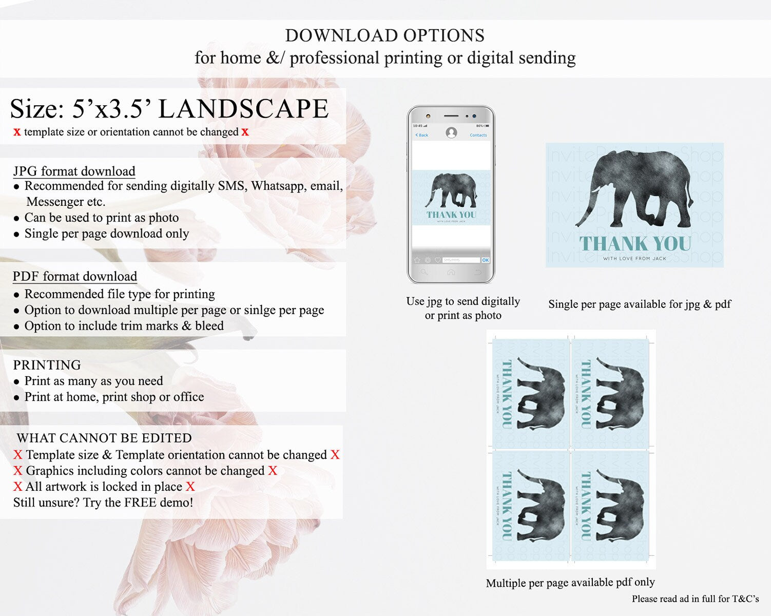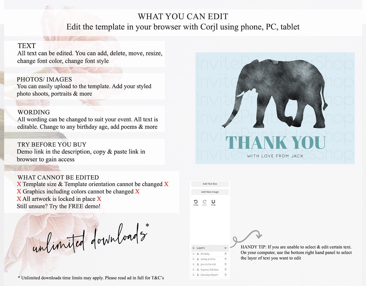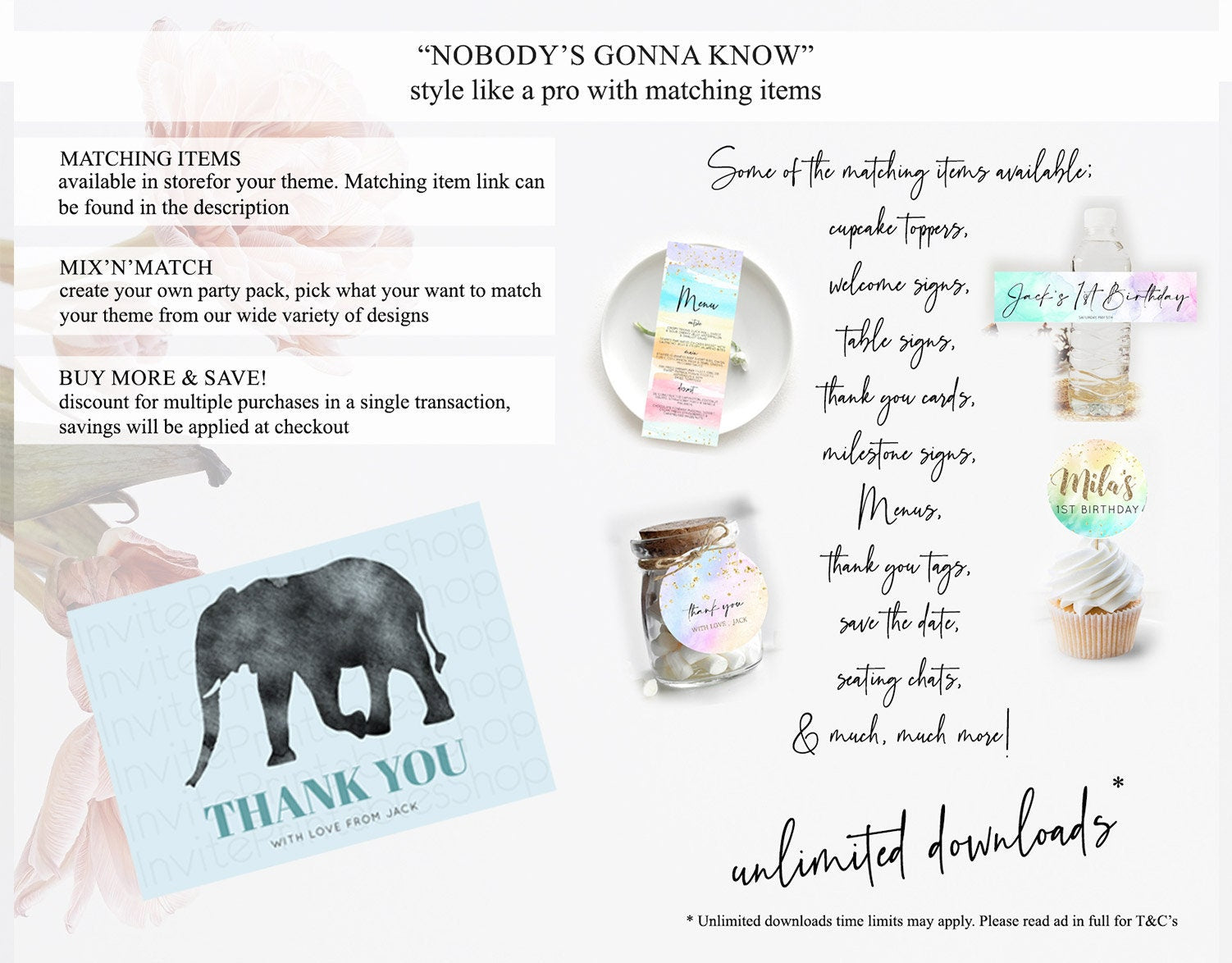 Pastel Elephant Thank You Rainbow Elephant Thank You Card Colorful Rainbow Birthday Thank You Pastel Teacher Thank You Card Template D10802