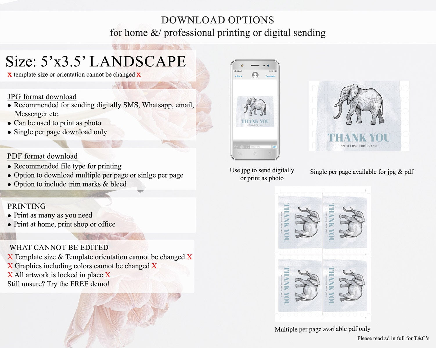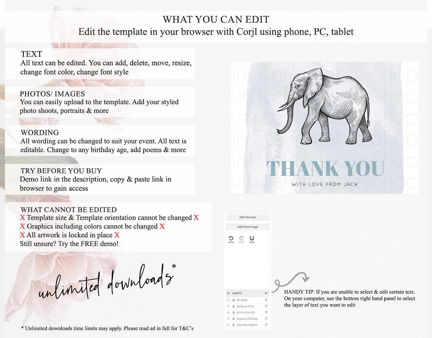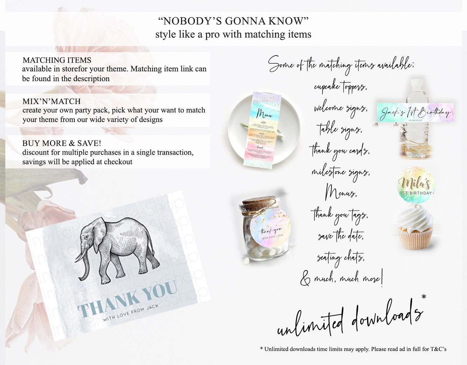 Pastel Elephant Thank You Rainbow Elephant Thank You Card Colorful Rainbow Birthday Thank You Pastel Teacher Thank You Card Template D10811