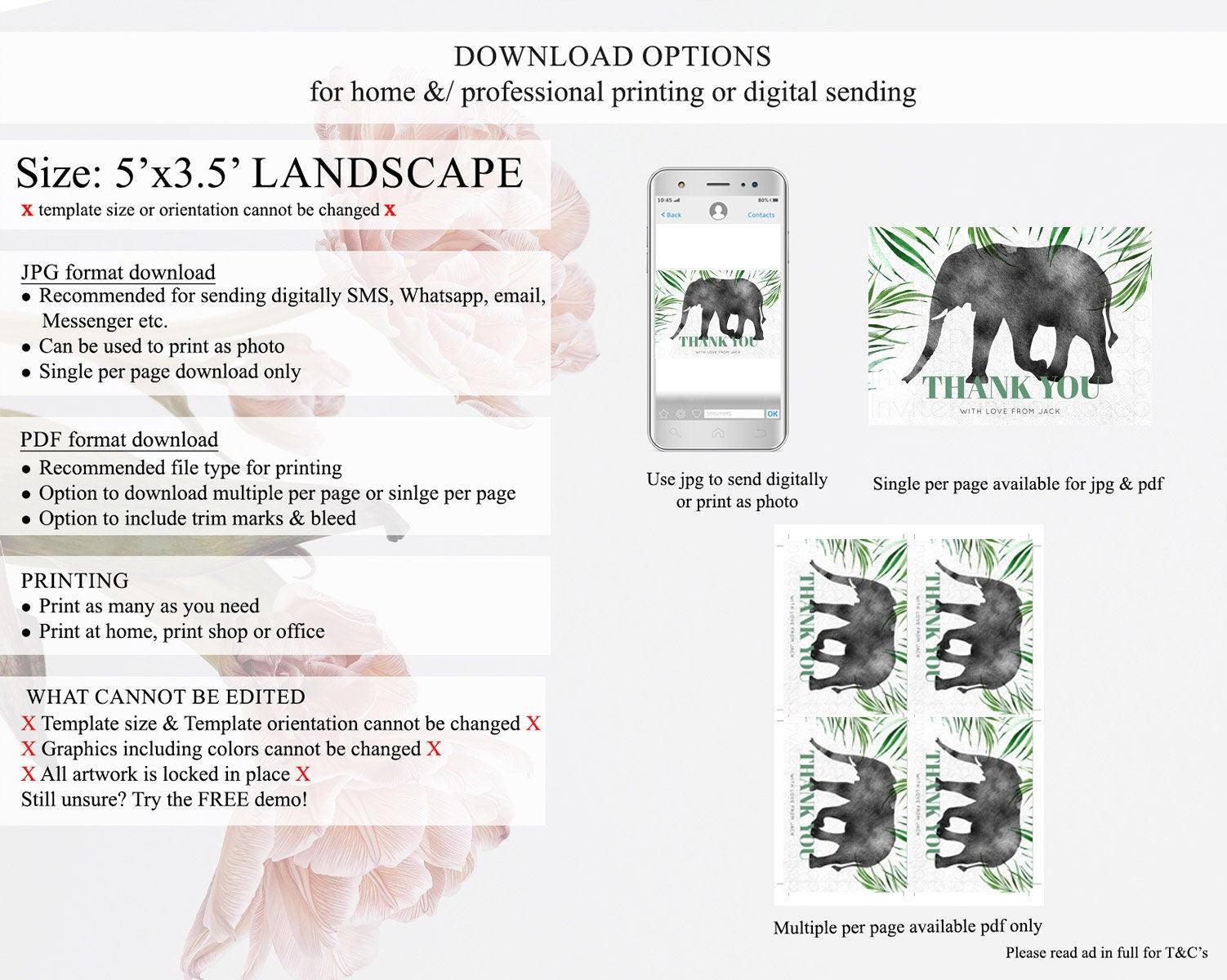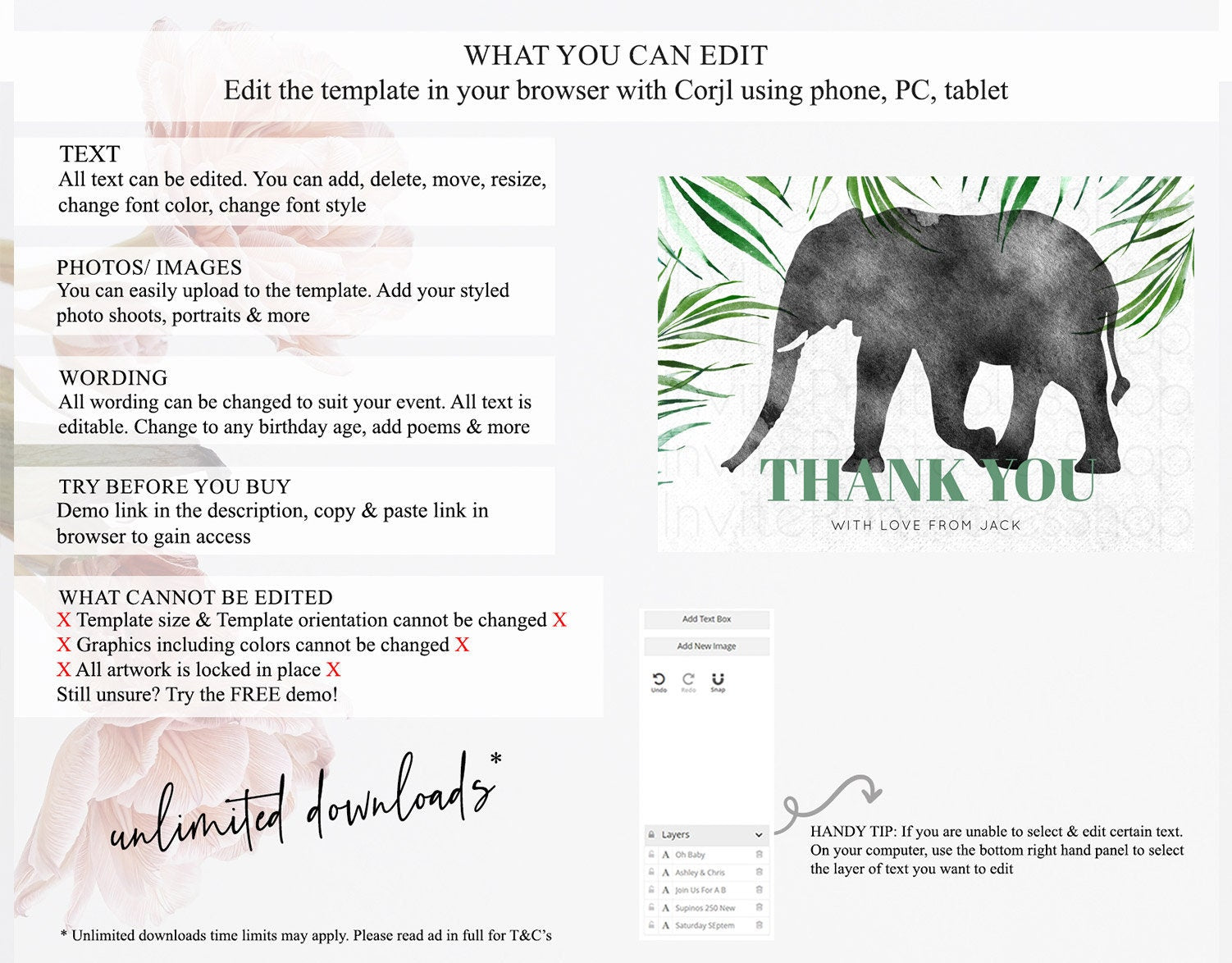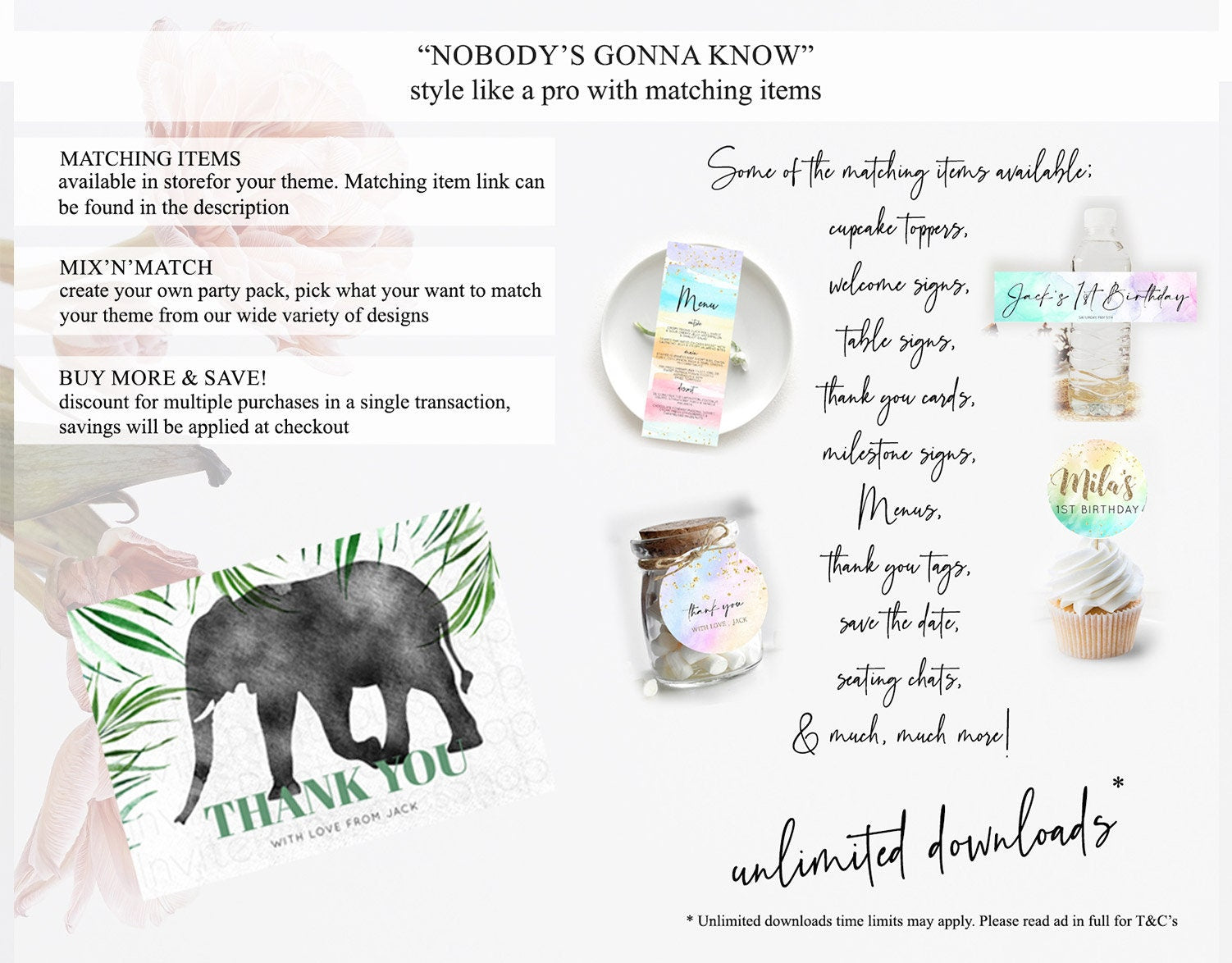 Pastel Elephant Thank You Rainbow Elephant Thank You Card Colorful Rainbow Birthday Thank You Pastel Teacher Thank You Card Template D10842