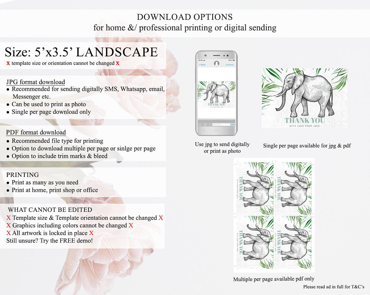 • Template size & orientation cannot be changed. Please use the demo link to confirm this product suits your needs.