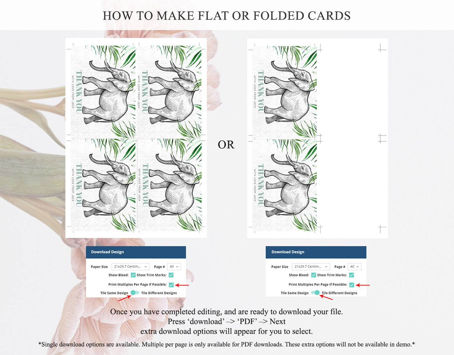 • Custom changes to artwork are not provided on existing templates.