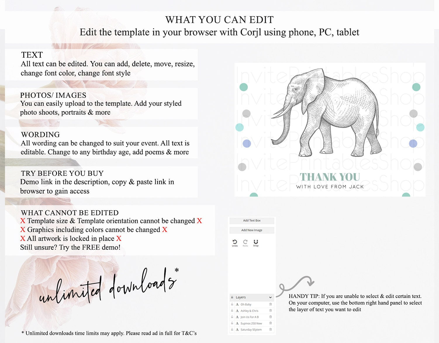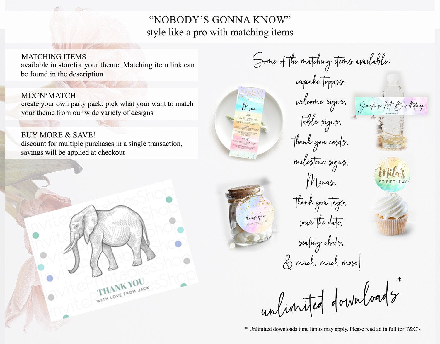 Pastel Elephant Thank You Rainbow Elephant Thank You Card Colorful Rainbow Birthday Thank You Pastel Teacher Thank You Card Template D10859