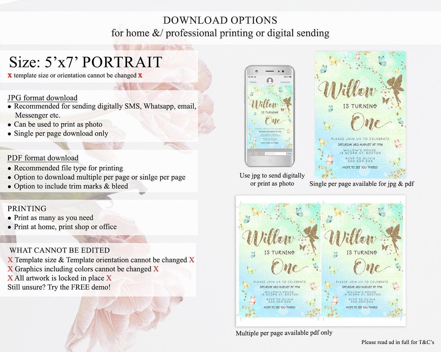 Pastel Fairy Birthday Invitation Pastel Butterflies Fairy Birthday Invitation Rainbow Ombre Watercolor 1st 2nd Birthday Invitation D23150