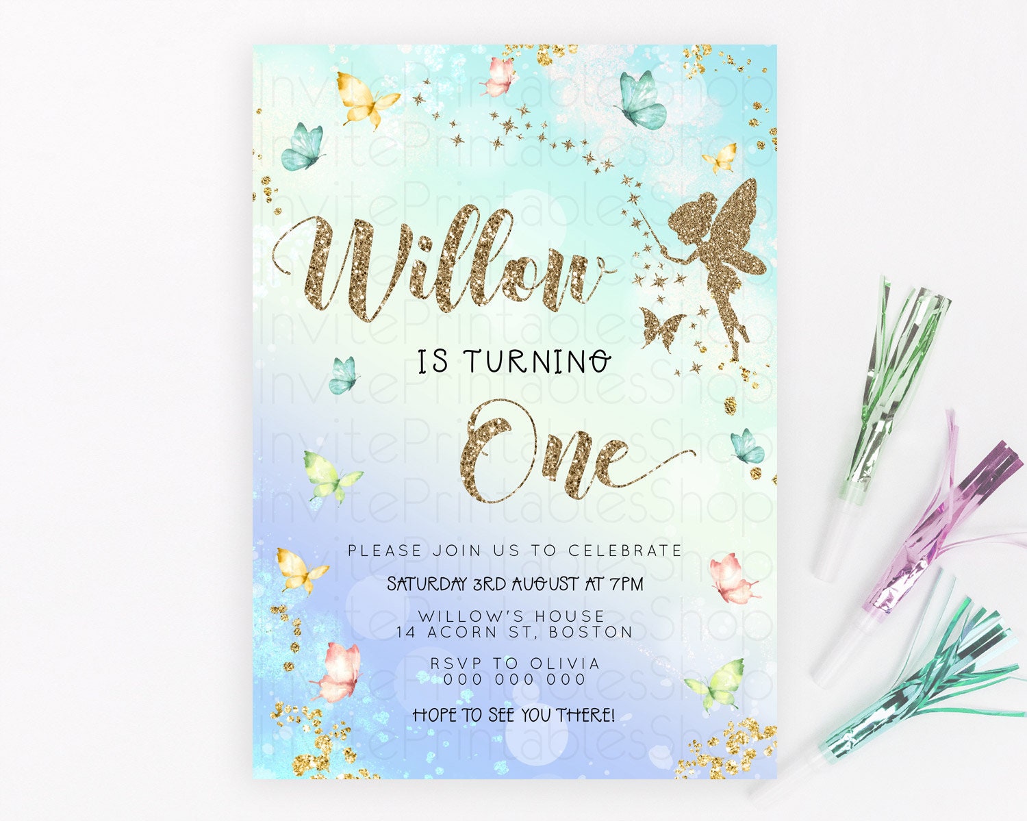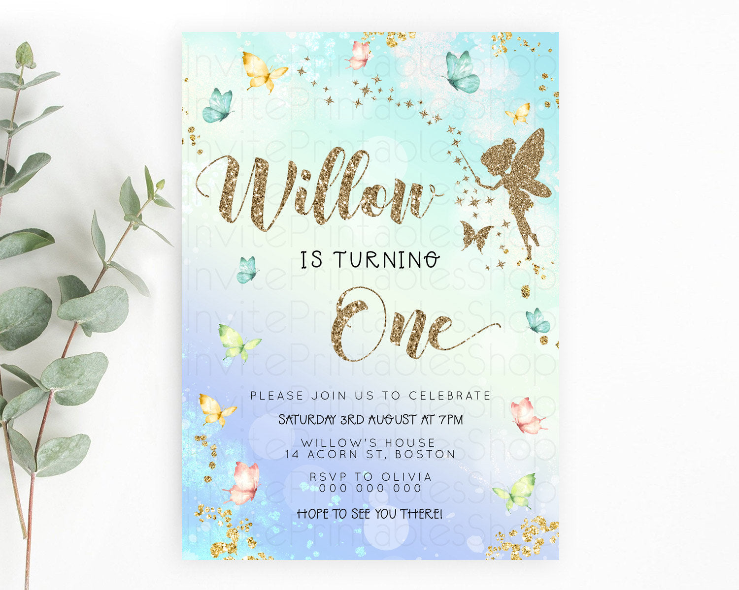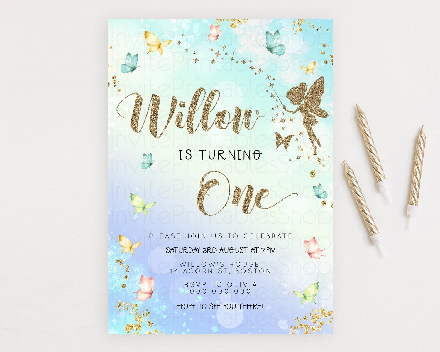 Pastel Fairy Birthday Invitation Pastel Butterflies Fairy Birthday Invitation Rainbow Ombre Watercolor 1st 2nd Birthday Invitation D23153