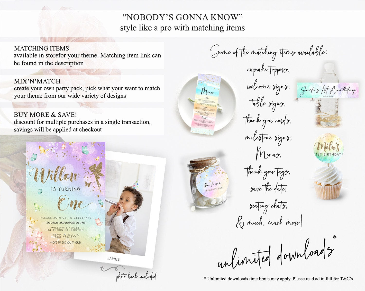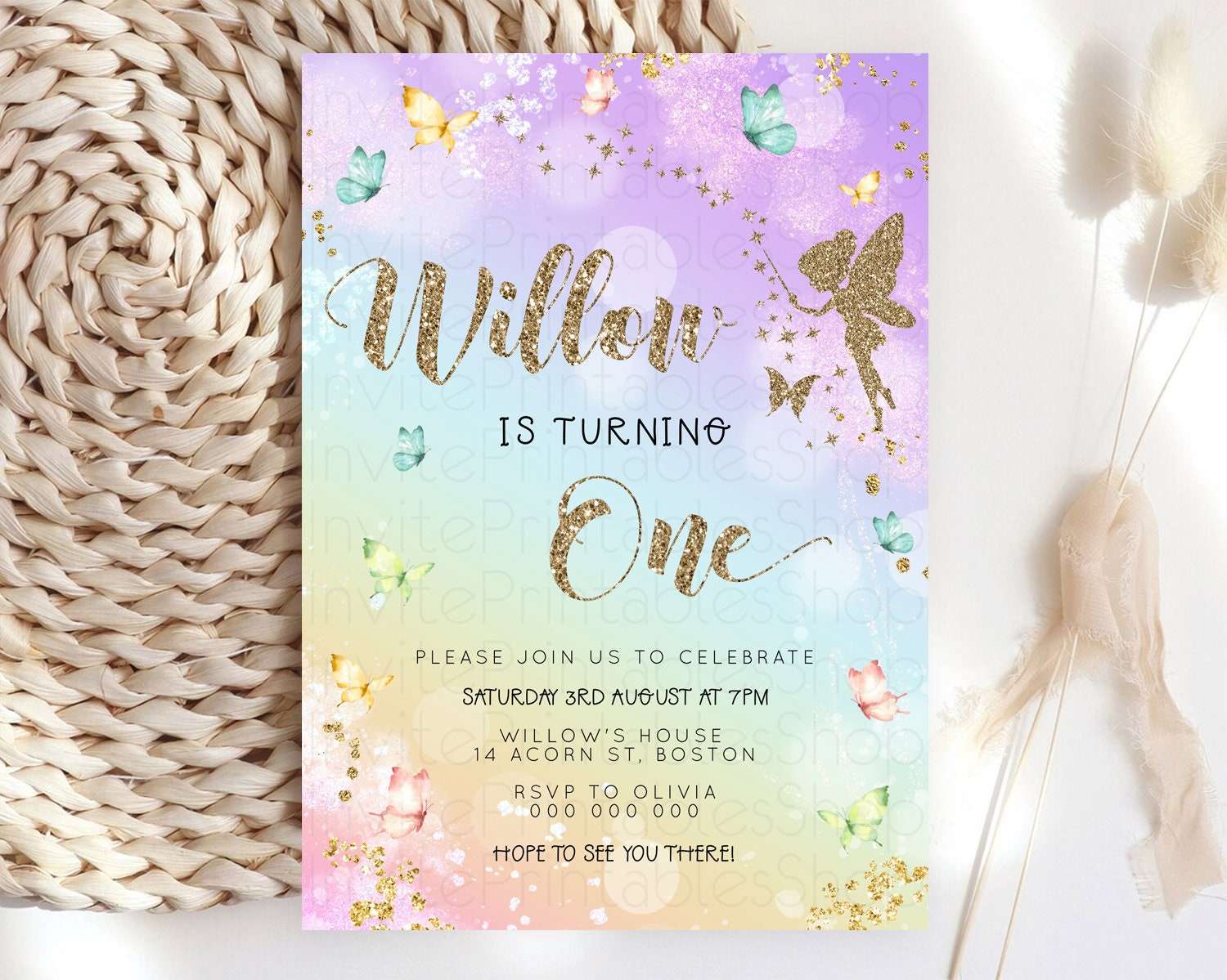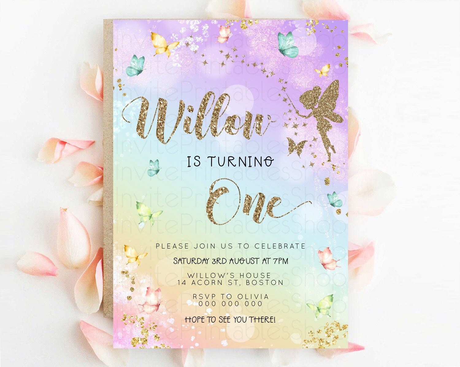 Pastel Fairy Birthday Invitation Pastel Butterflies Fairy Birthday Invitation Rainbow Ombre Watercolor 1st 2nd Birthday Invitation D23161