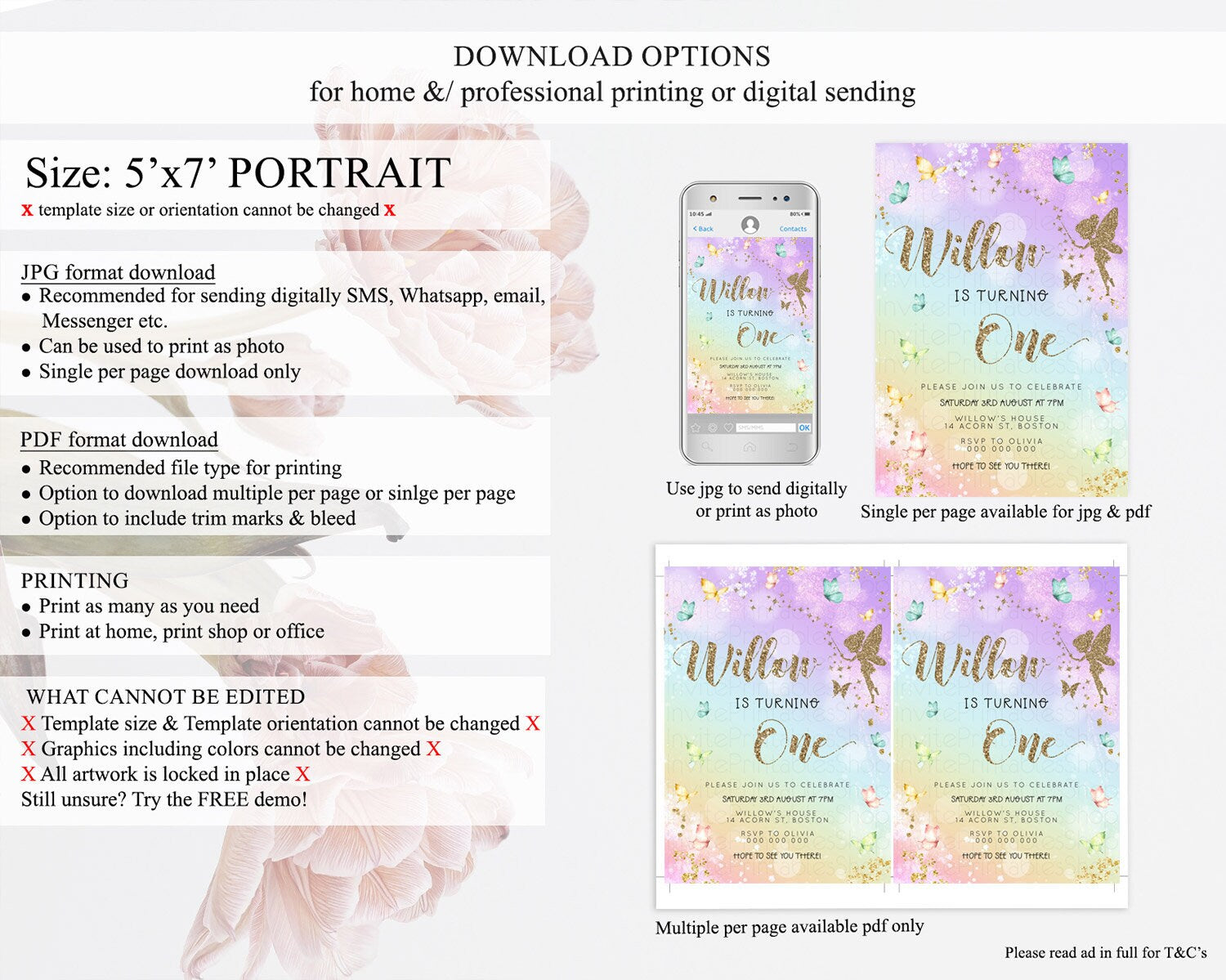 • Template size & orientation cannot be changed. Please use the demo link to confirm this product suits your needs.