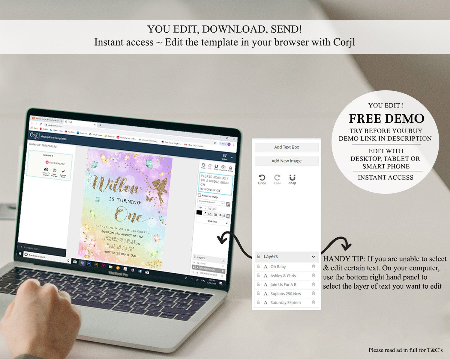 • After purchase, Corjl emails your editing link. Allow up to 15 minutes for delivery.
