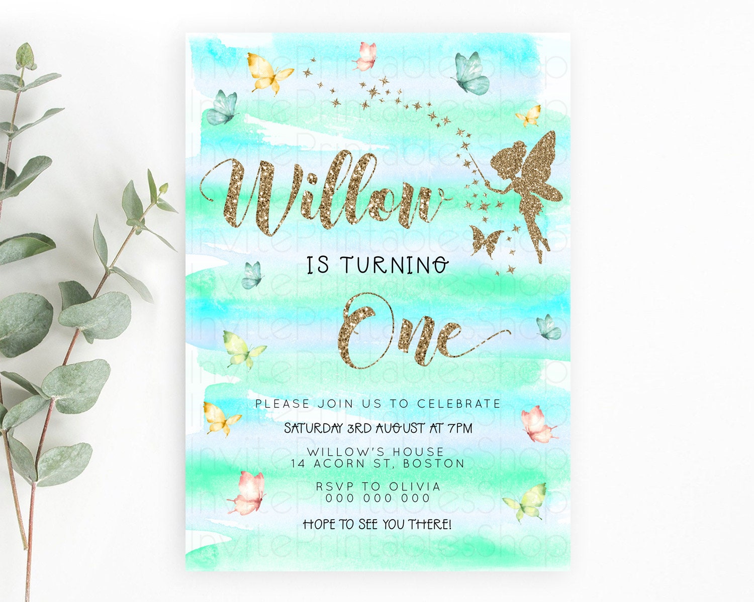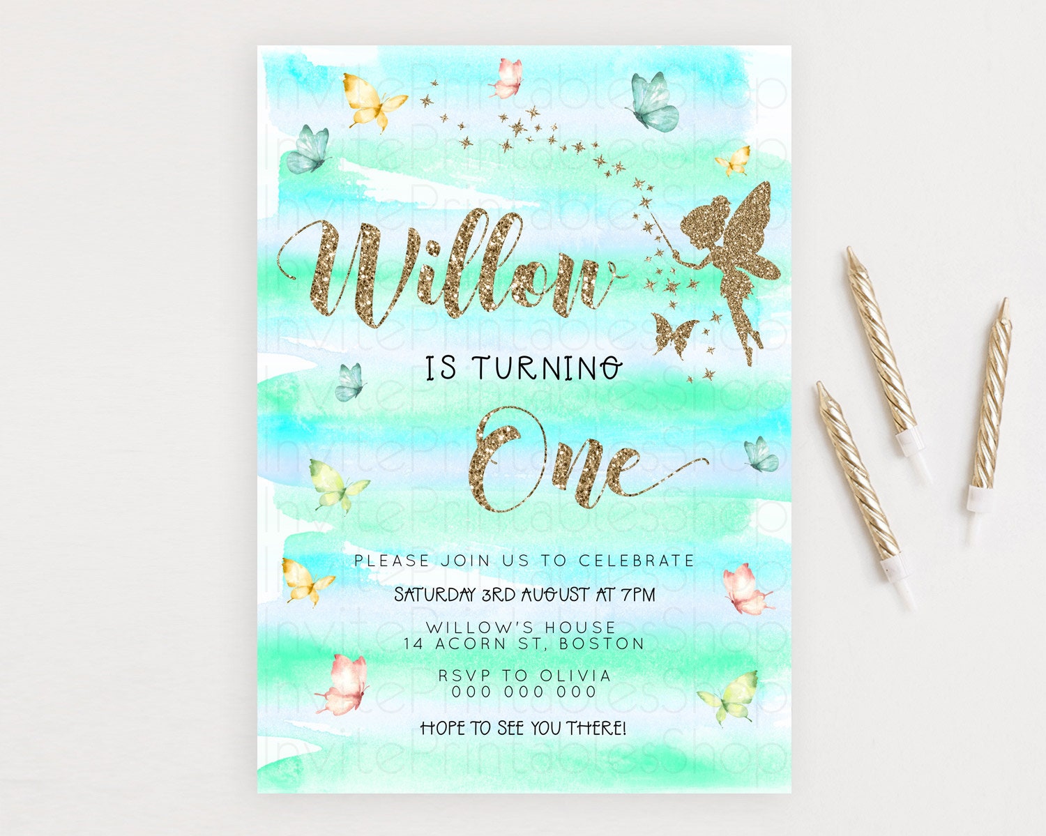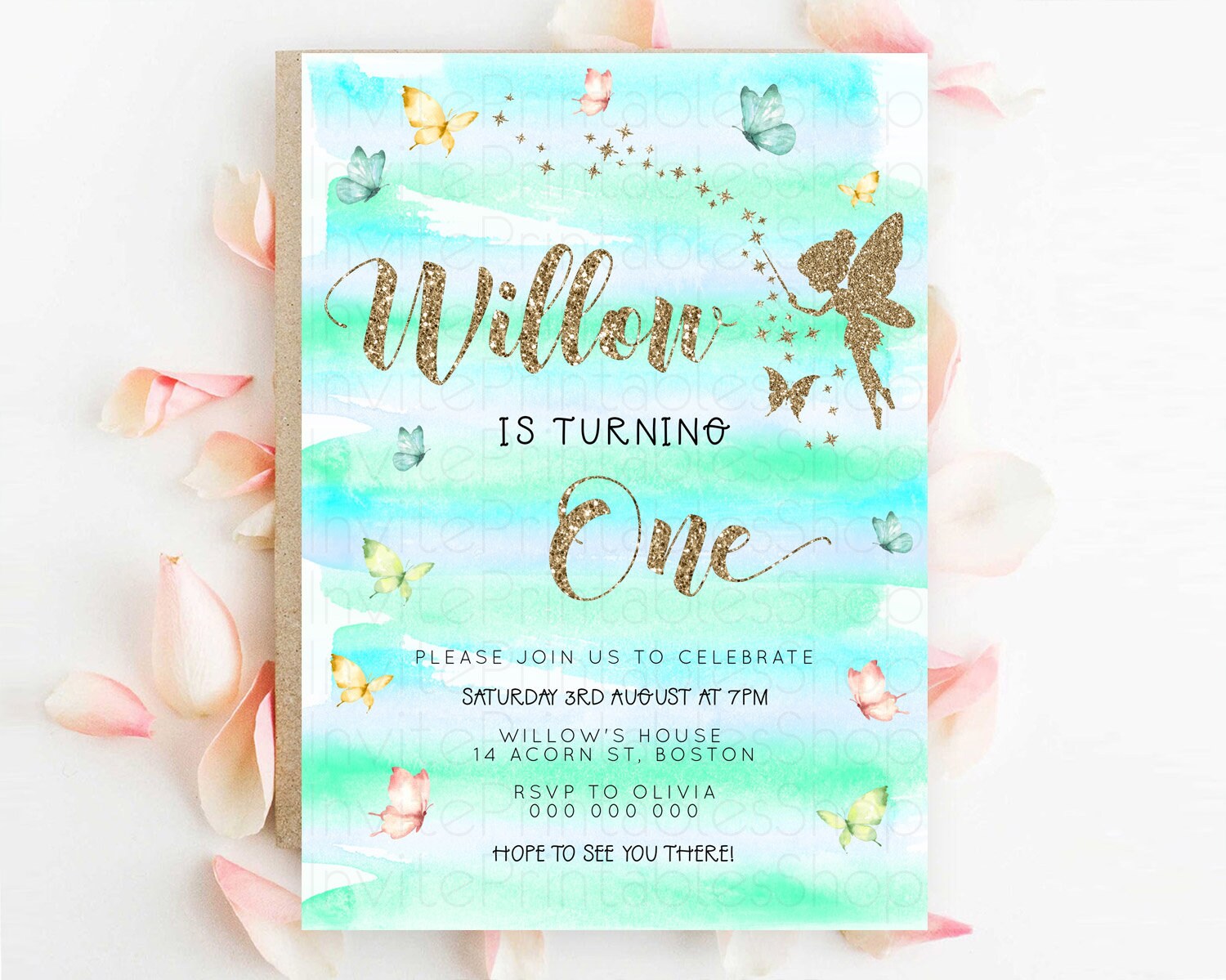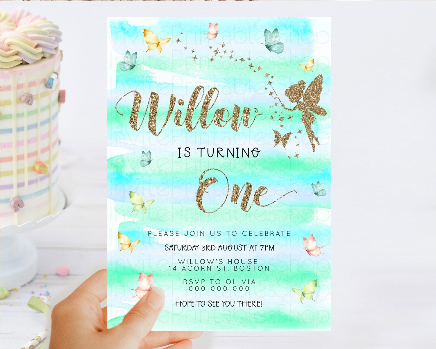 Pastel Fairy Birthday Invitation Pastel Butterflies Fairy Birthday Invitation Rainbow Ombre Watercolor 1st 2nd Birthday Invitation D23314