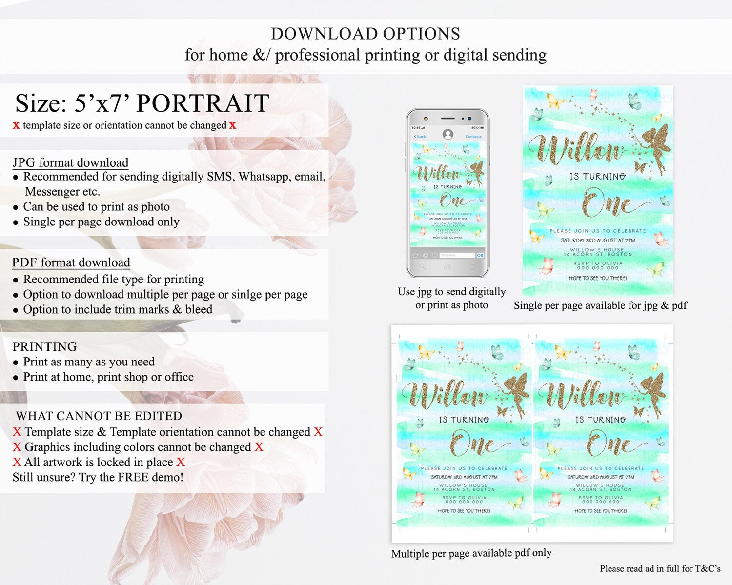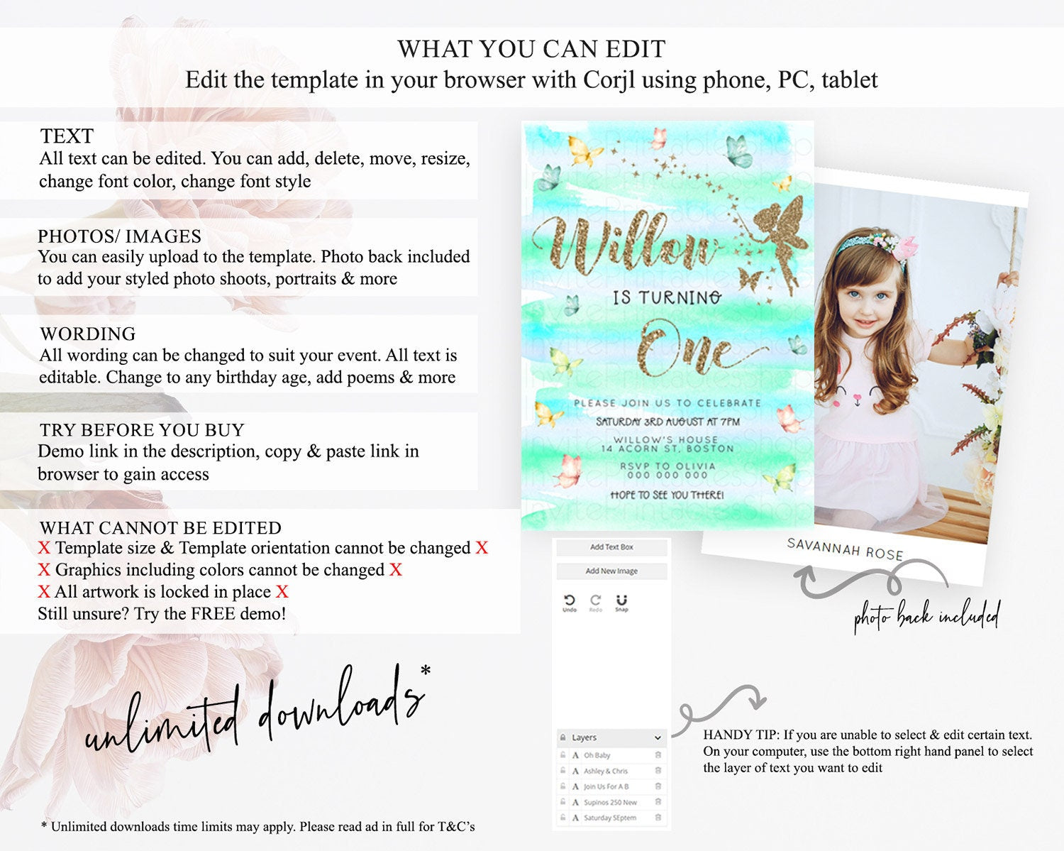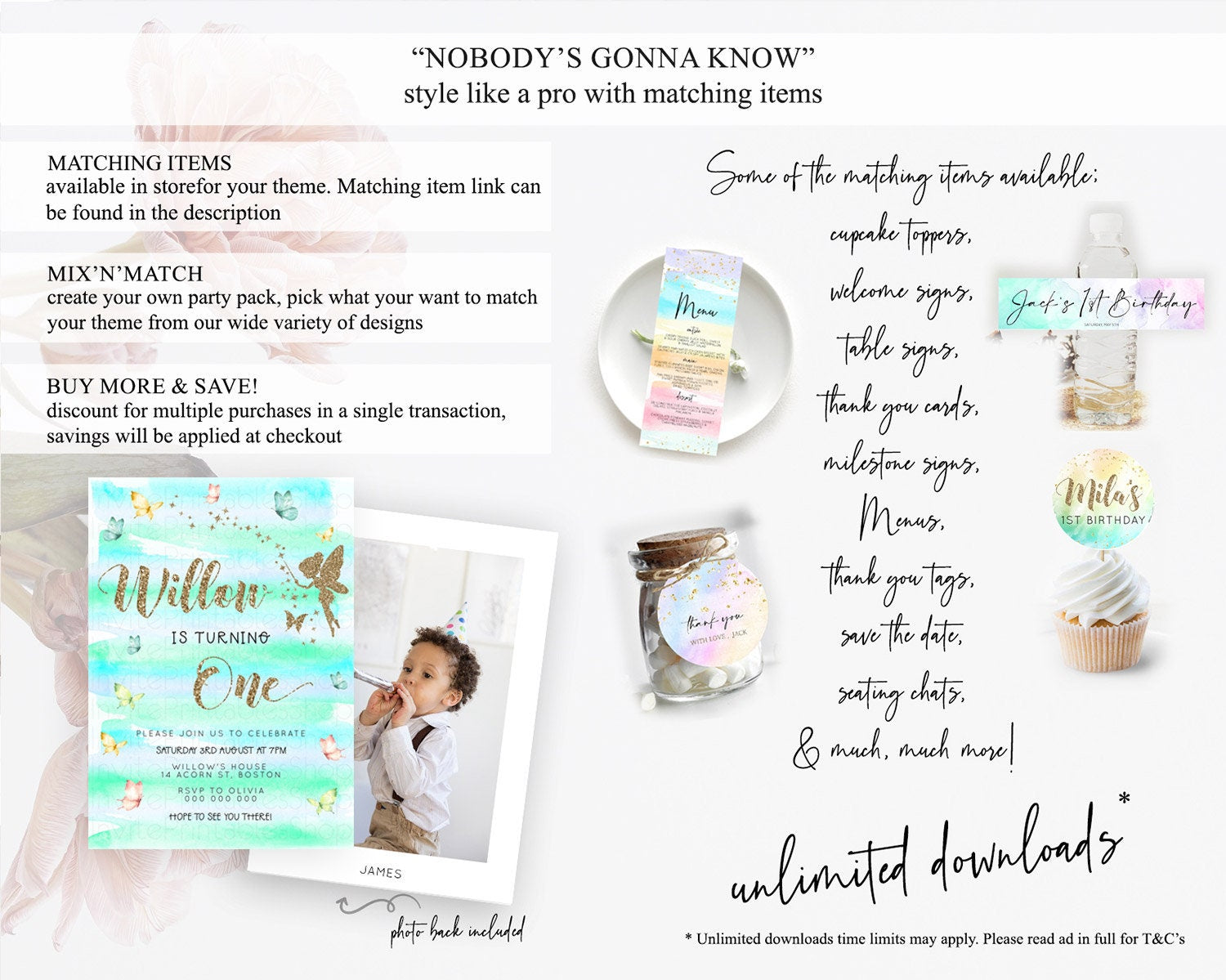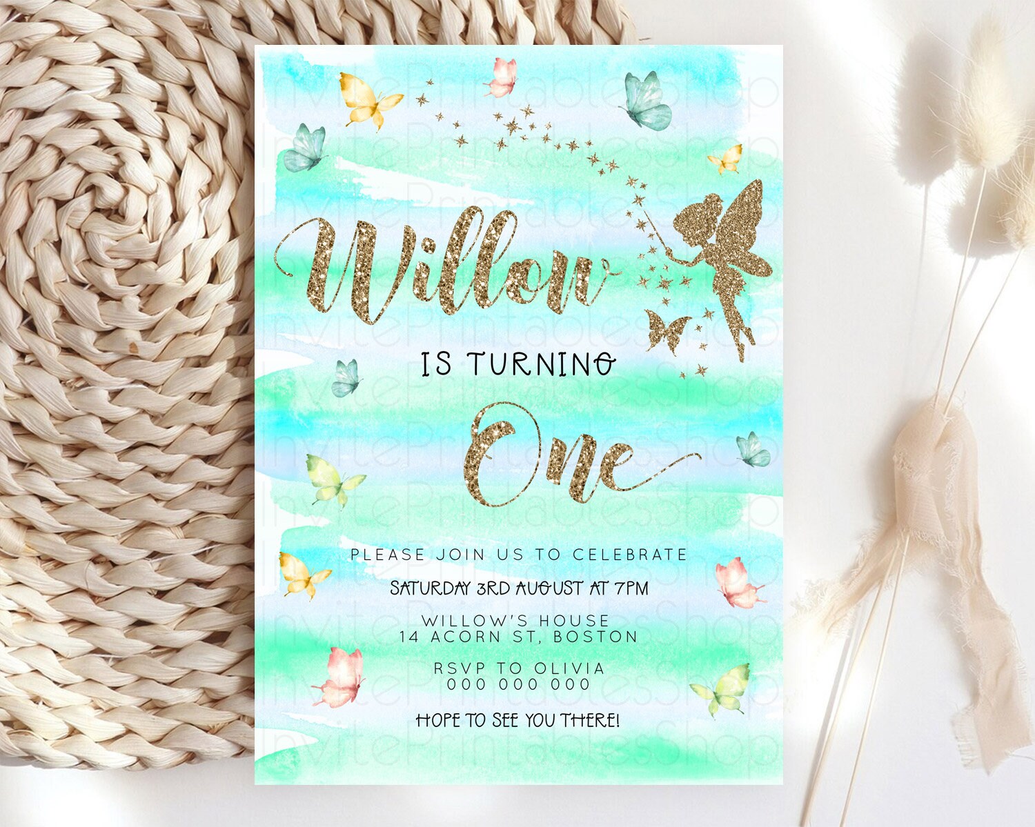 Pastel Fairy Birthday Invitation Pastel Butterflies Fairy Birthday Invitation Rainbow Ombre Watercolor 1st 2nd Birthday Invitation D23314