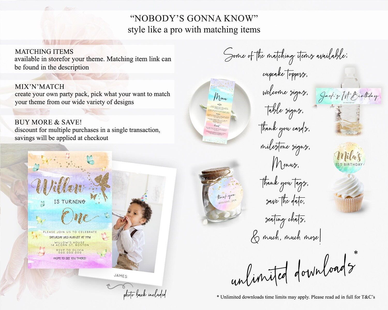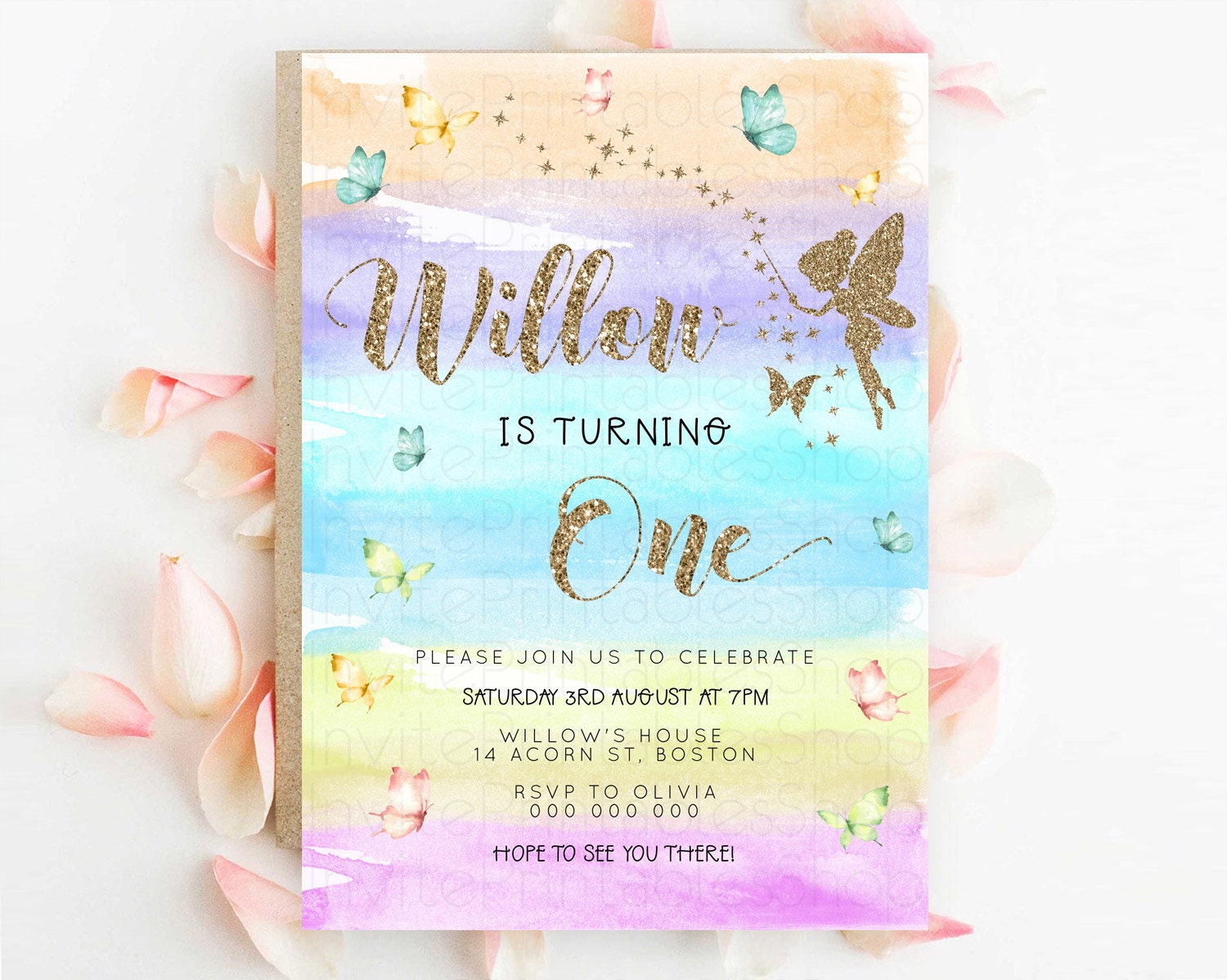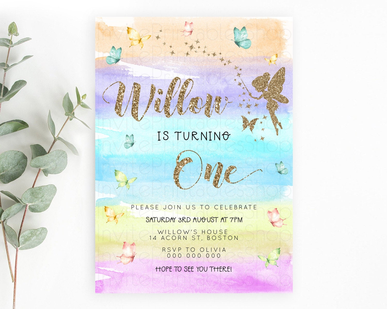 Pastel Fairy Birthday Invitation Pastel Butterflies Fairy Birthday Invitation Rainbow Ombre Watercolor 1st 2nd Birthday Invitation D23318