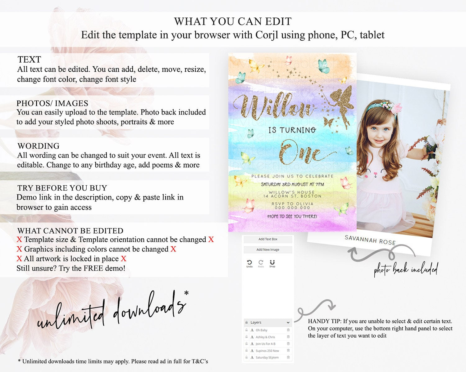 • After purchase, Corjl emails your editing link. Allow up to 15 minutes for delivery.