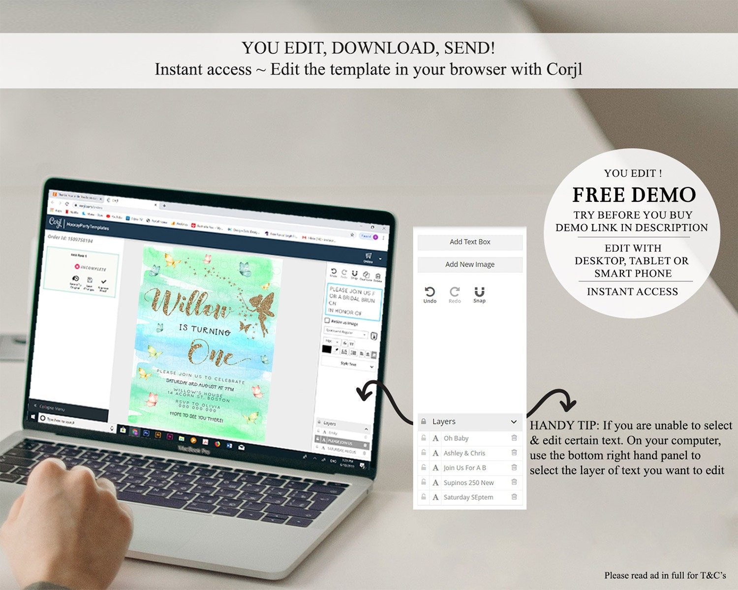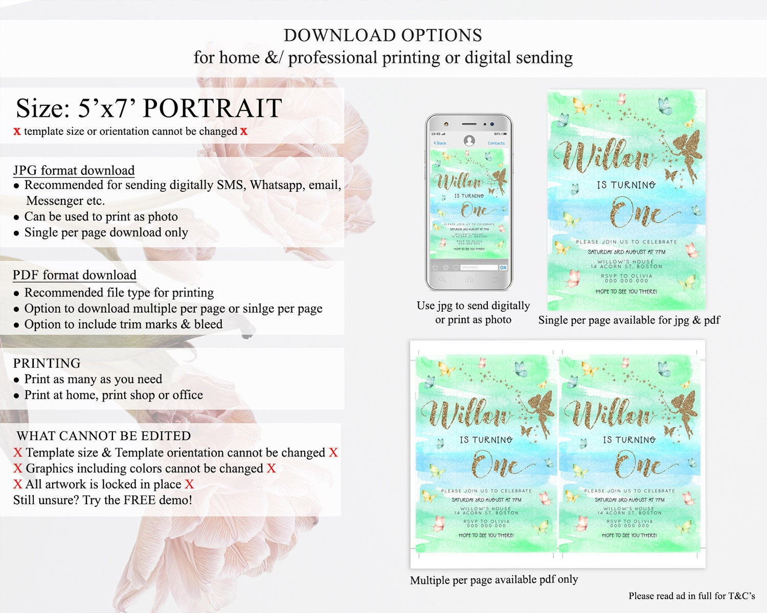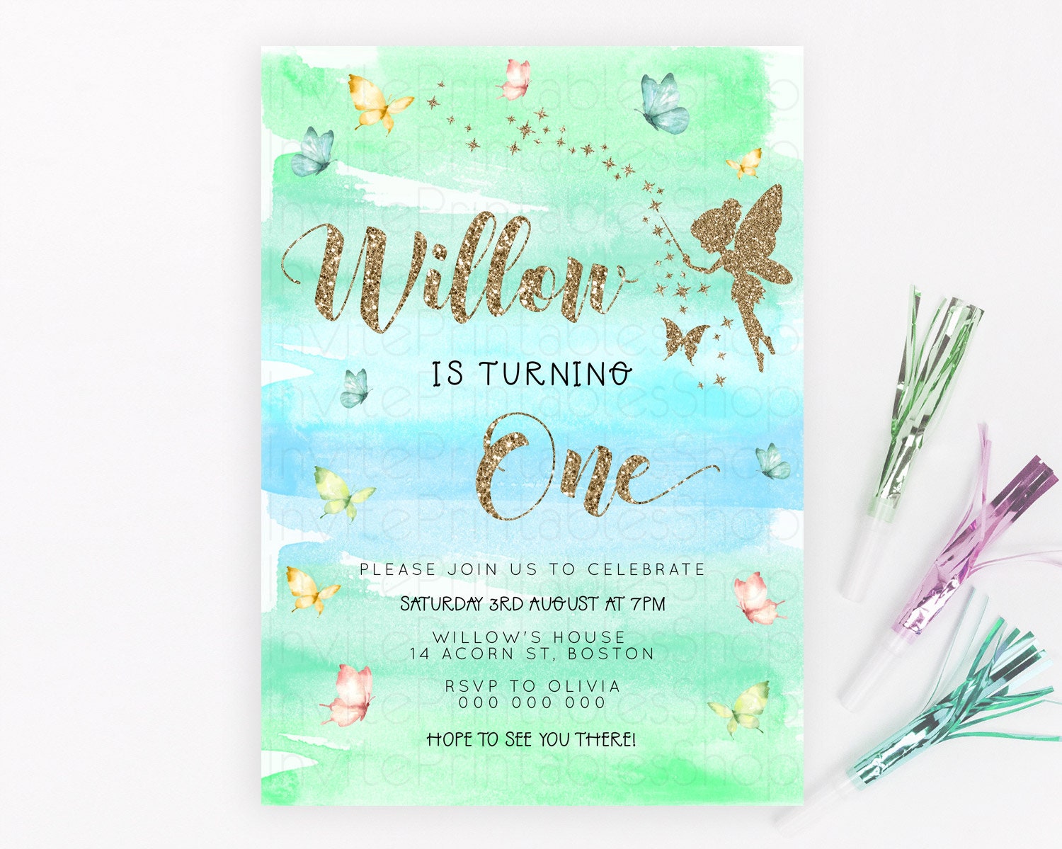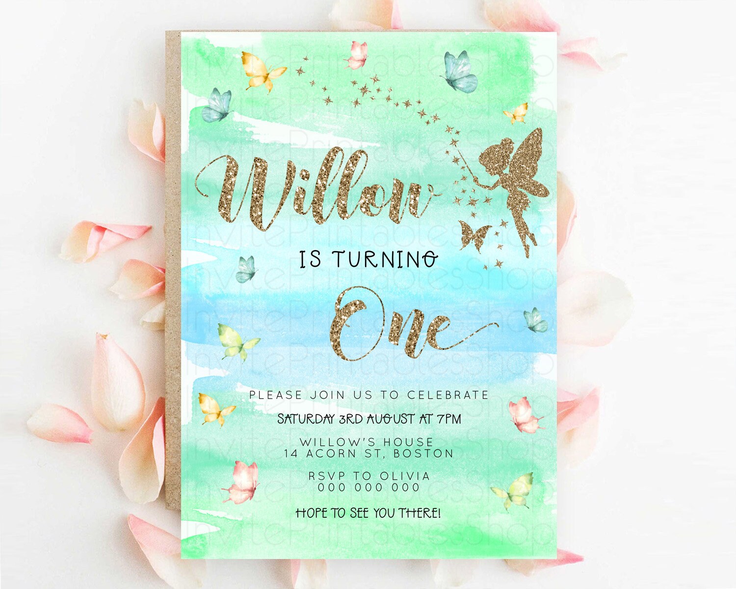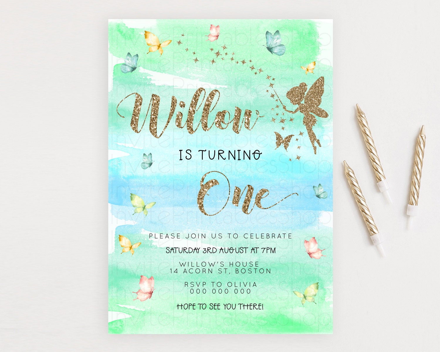 Pastel Fairy Birthday Invitation Pastel Butterflies Fairy Birthday Invitation Rainbow Ombre Watercolor 1st 2nd Birthday Invitation D23323
