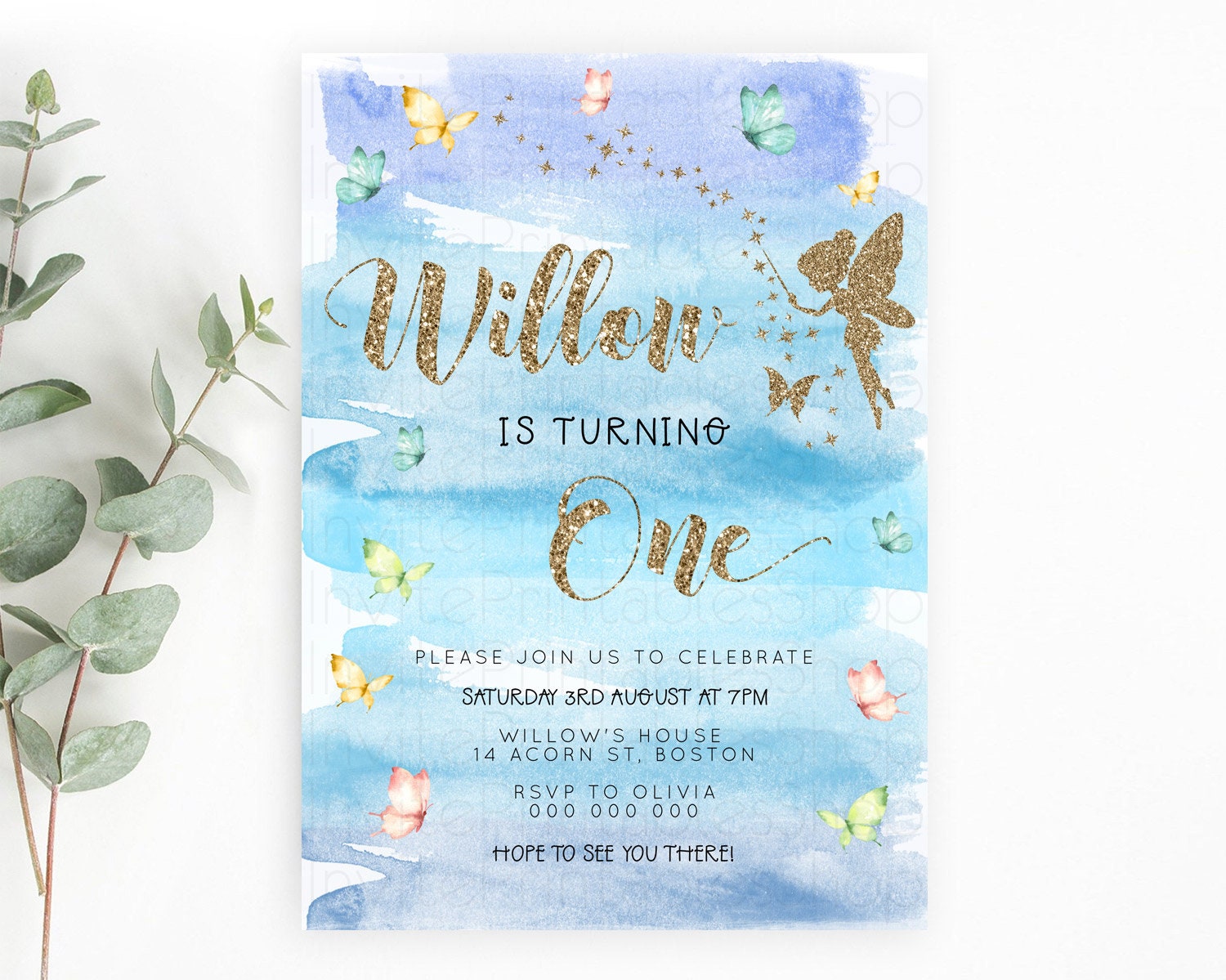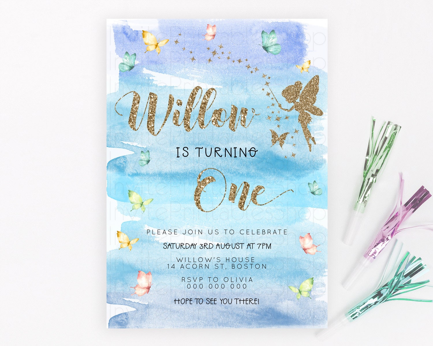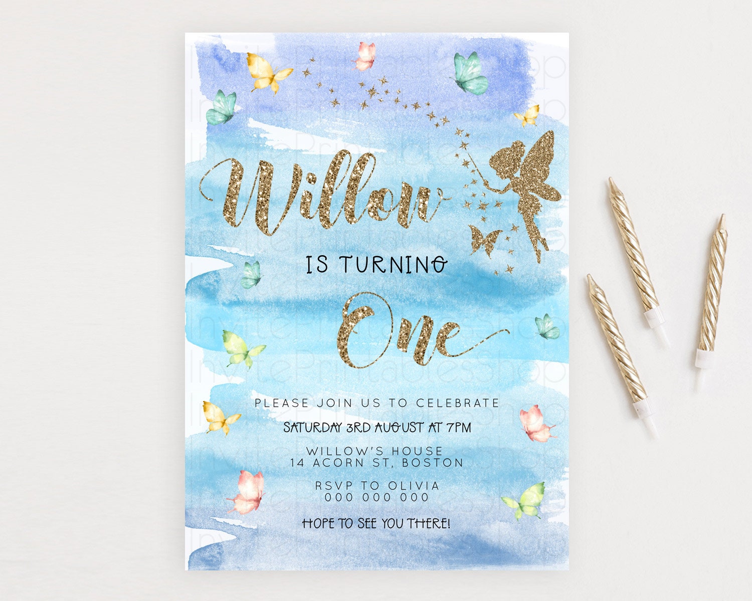 Pastel Fairy Birthday Invitation Pastel Butterflies Fairy Birthday Invitation Rainbow Ombre Watercolor 1st 2nd Birthday Invitation D23324