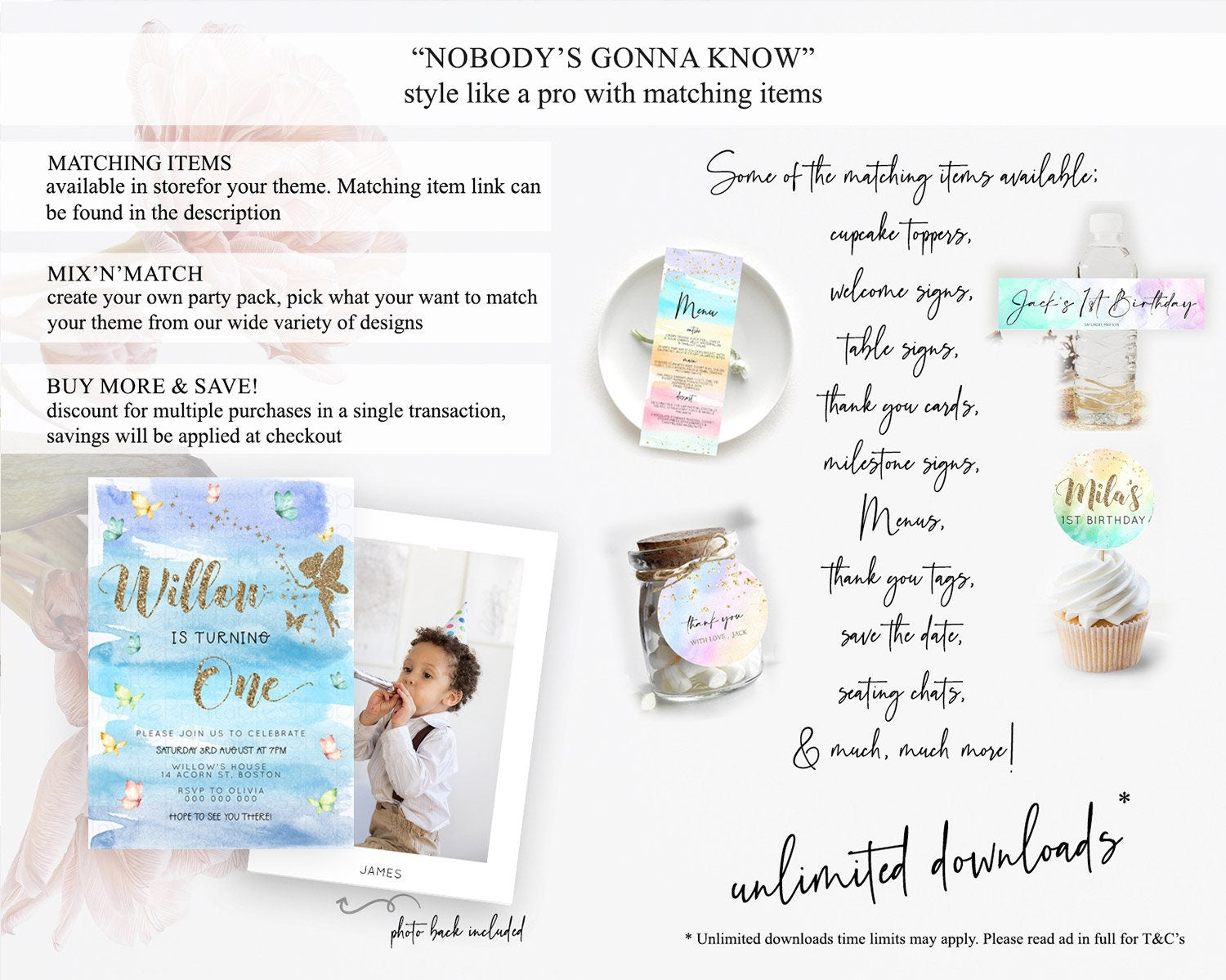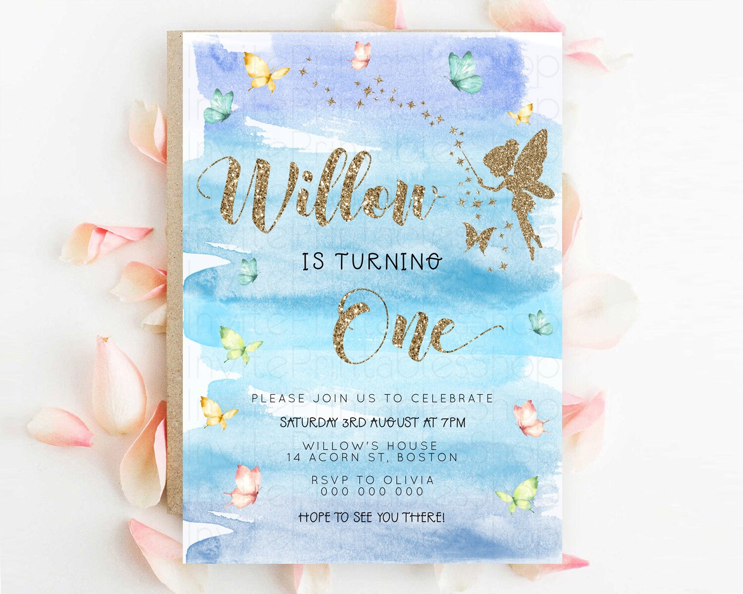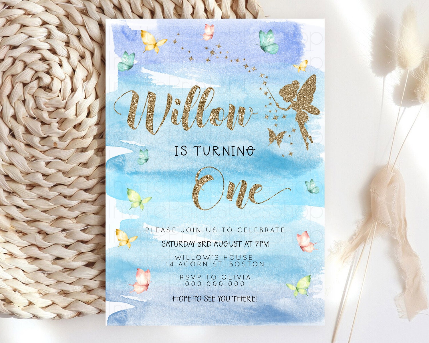 Pastel Fairy Birthday Invitation Pastel Butterflies Fairy Birthday Invitation Rainbow Ombre Watercolor 1st 2nd Birthday Invitation D23324