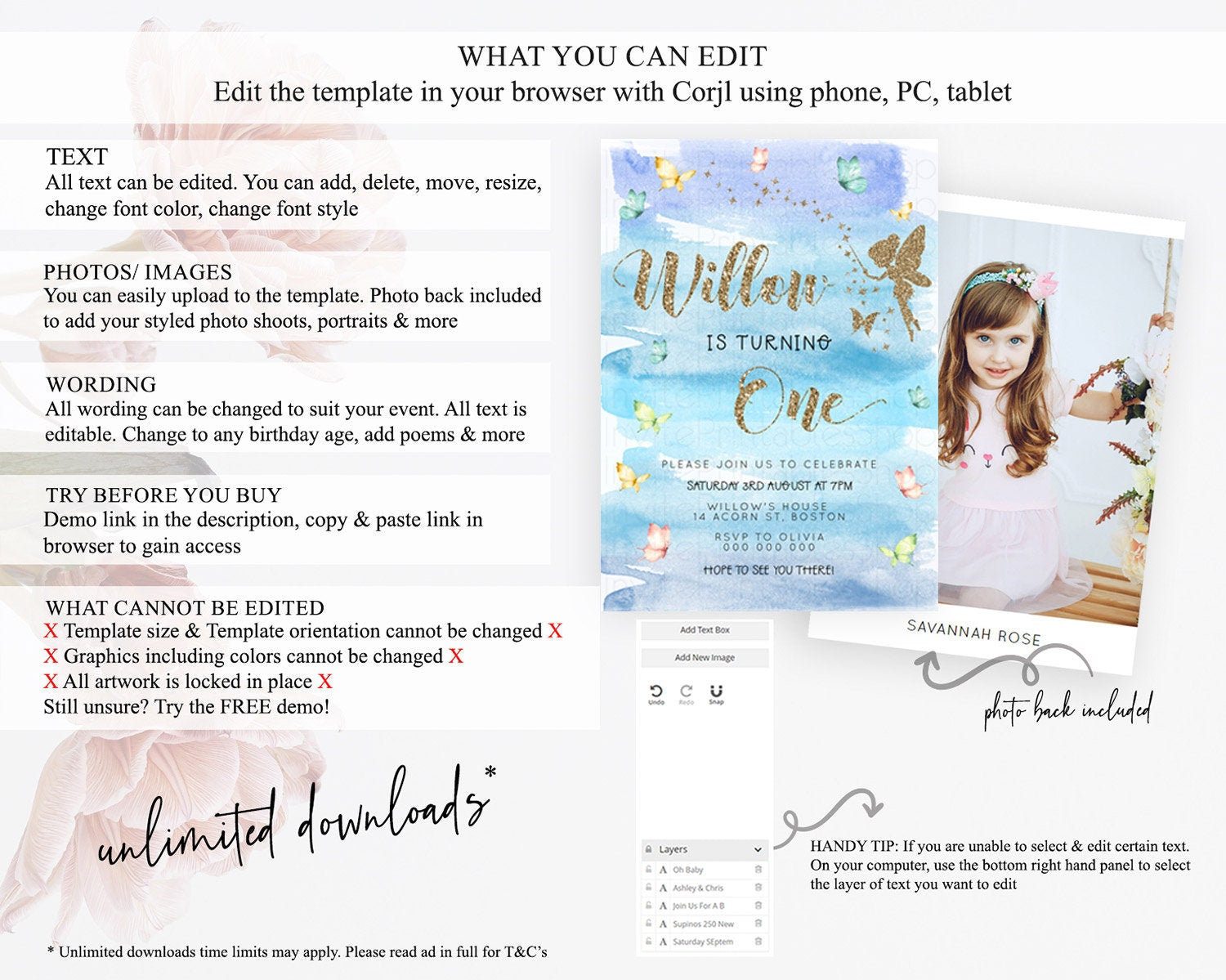 • After purchase, Corjl emails your editing link. Allow up to 15 minutes for delivery.