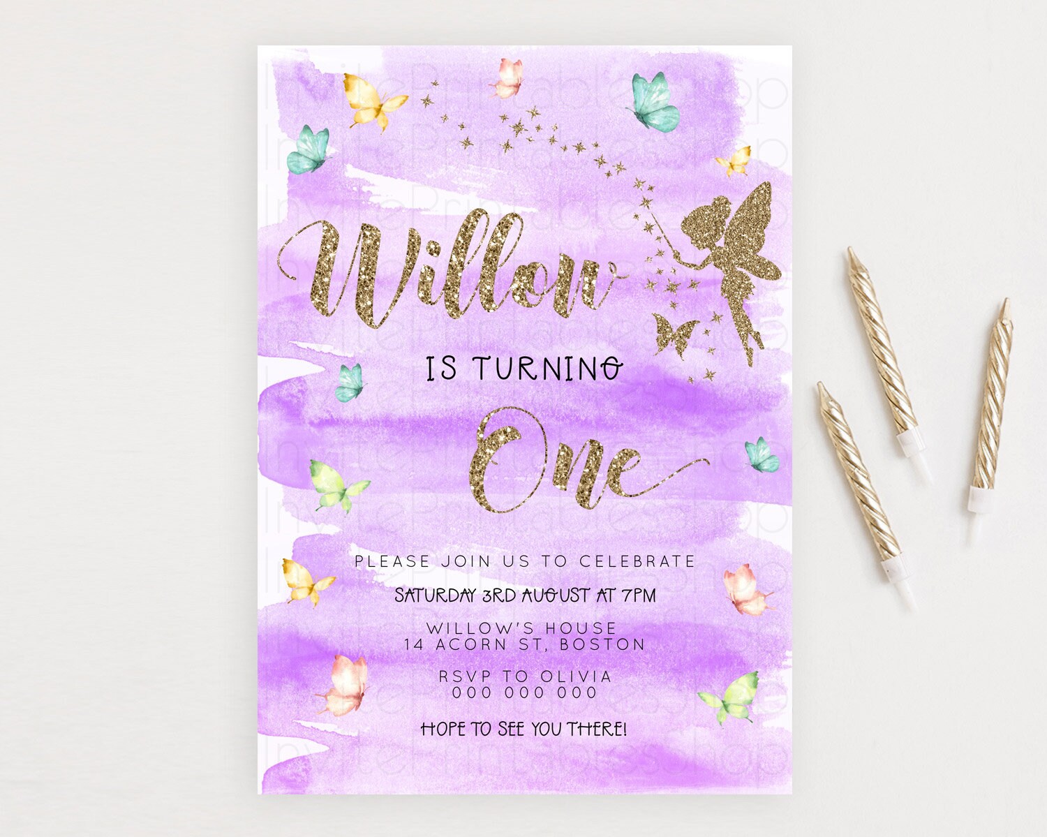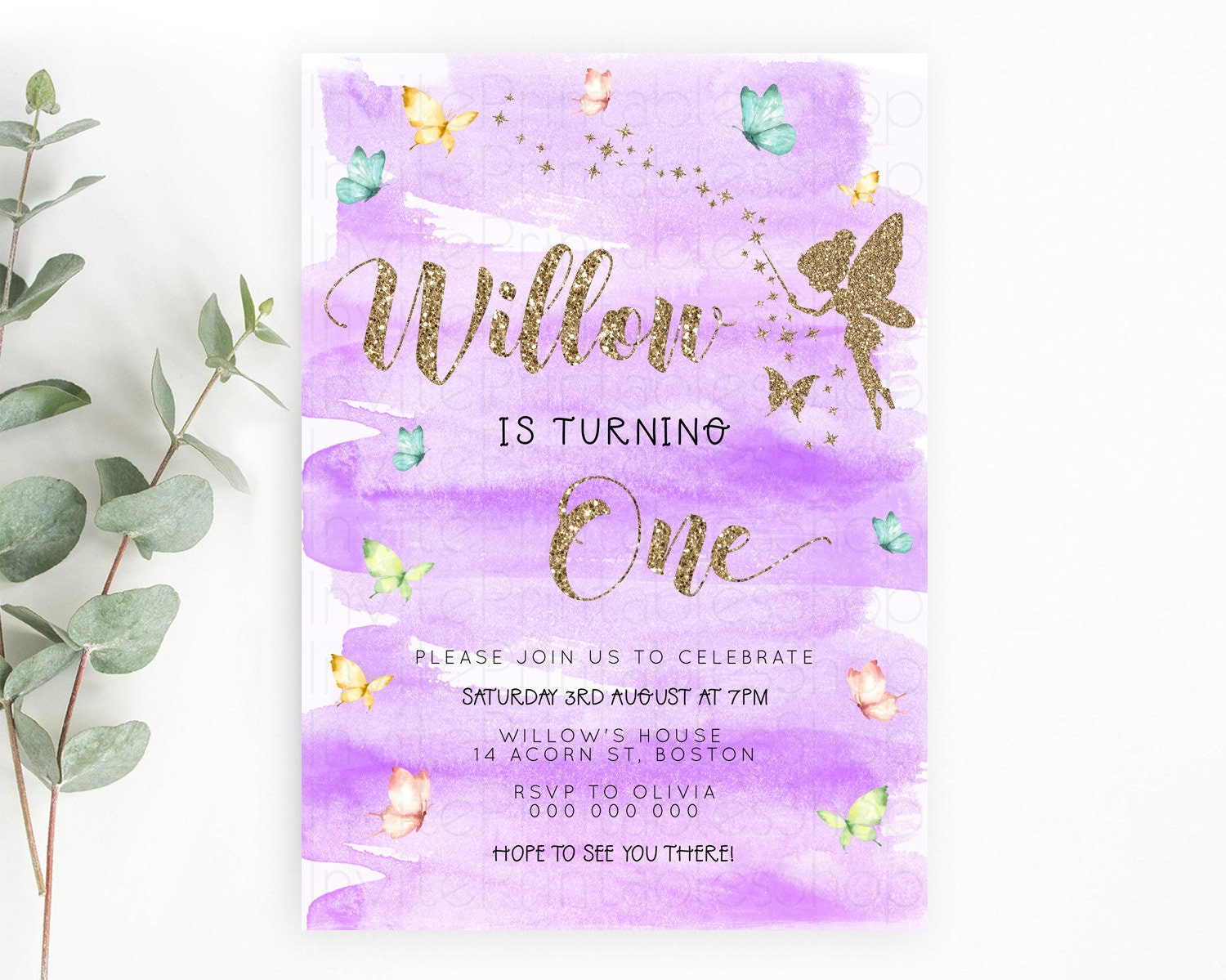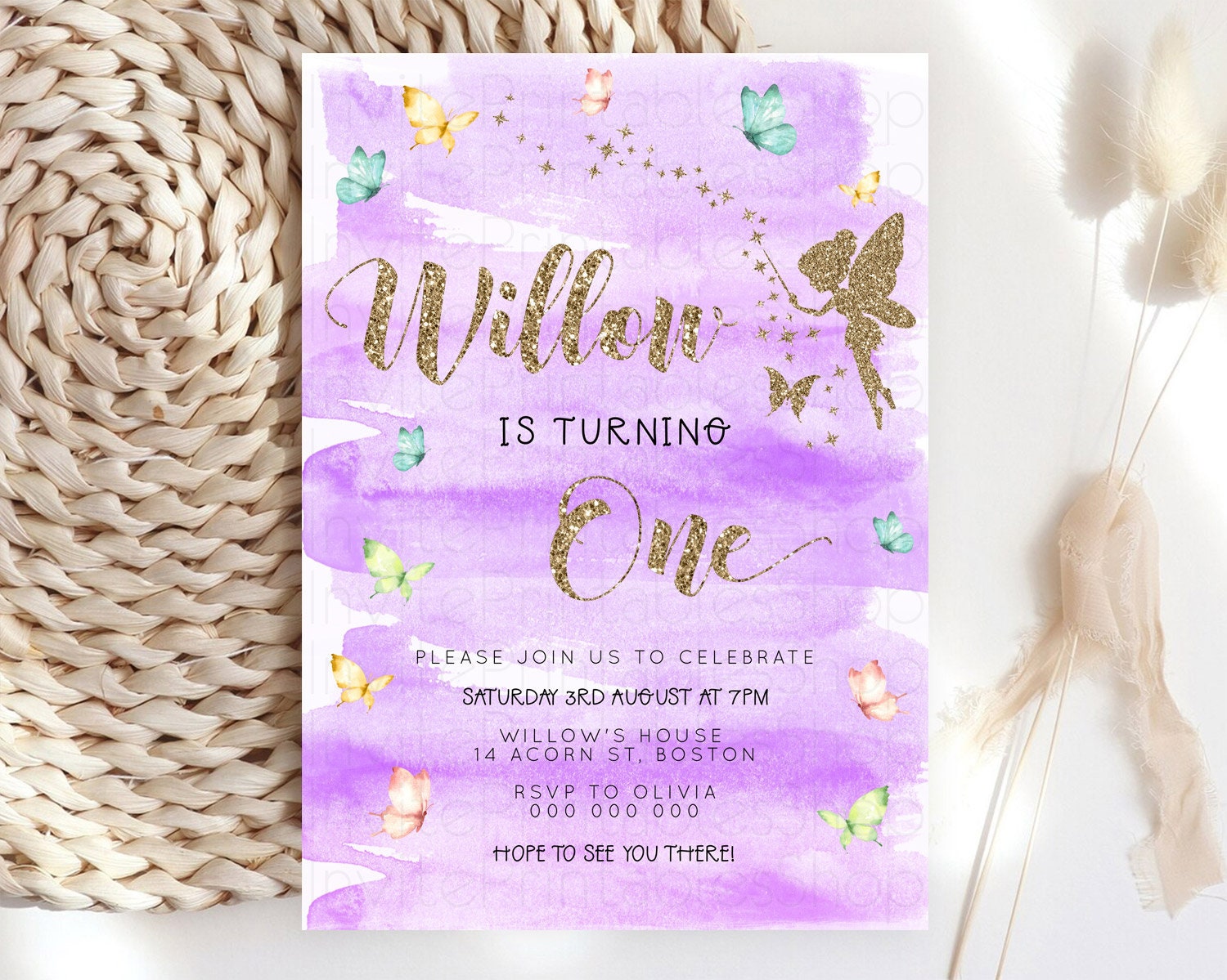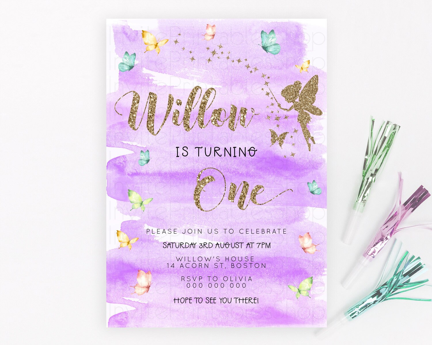 Pastel Fairy Birthday Invitation Pastel Butterflies Fairy Birthday Invitation Rainbow Ombre Watercolor 1st 2nd Birthday Invitation D23327