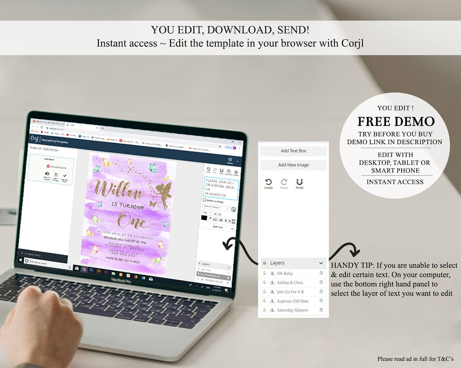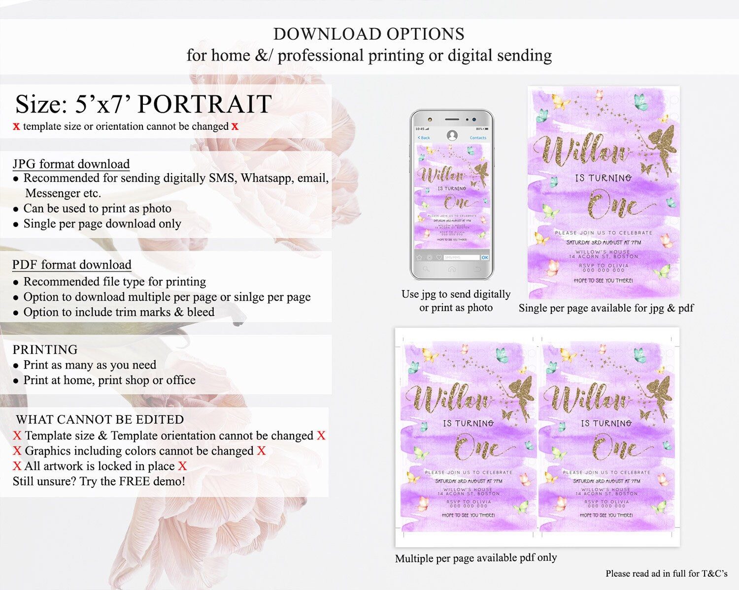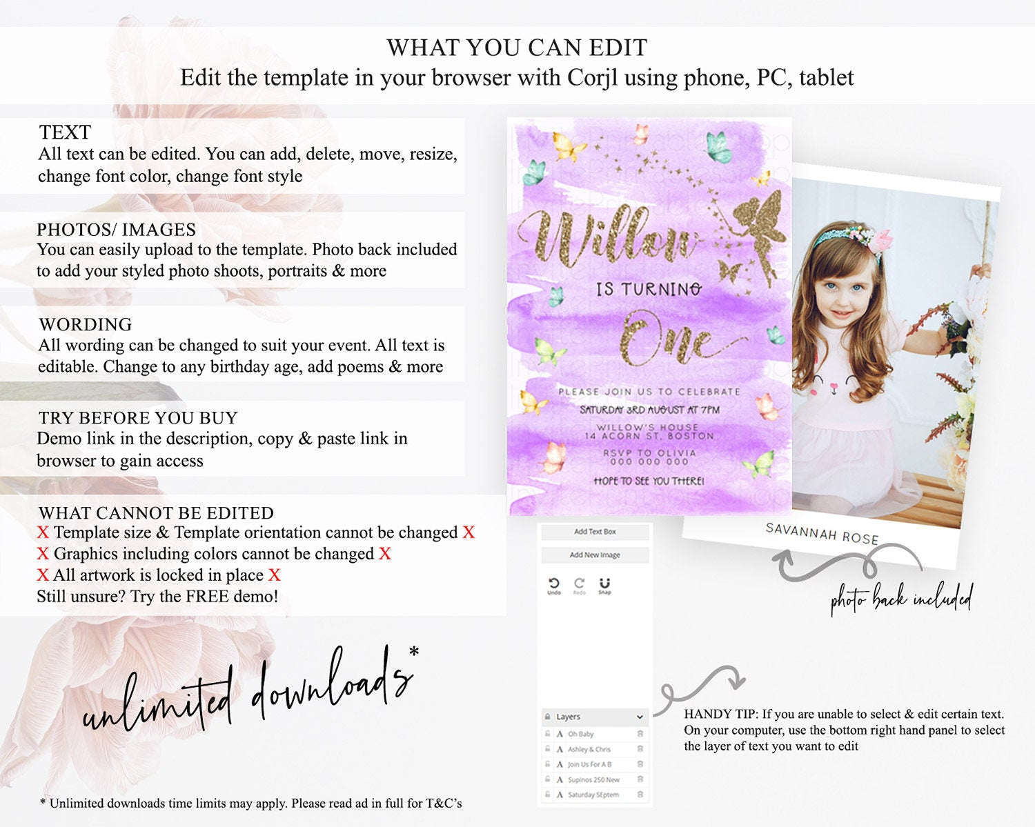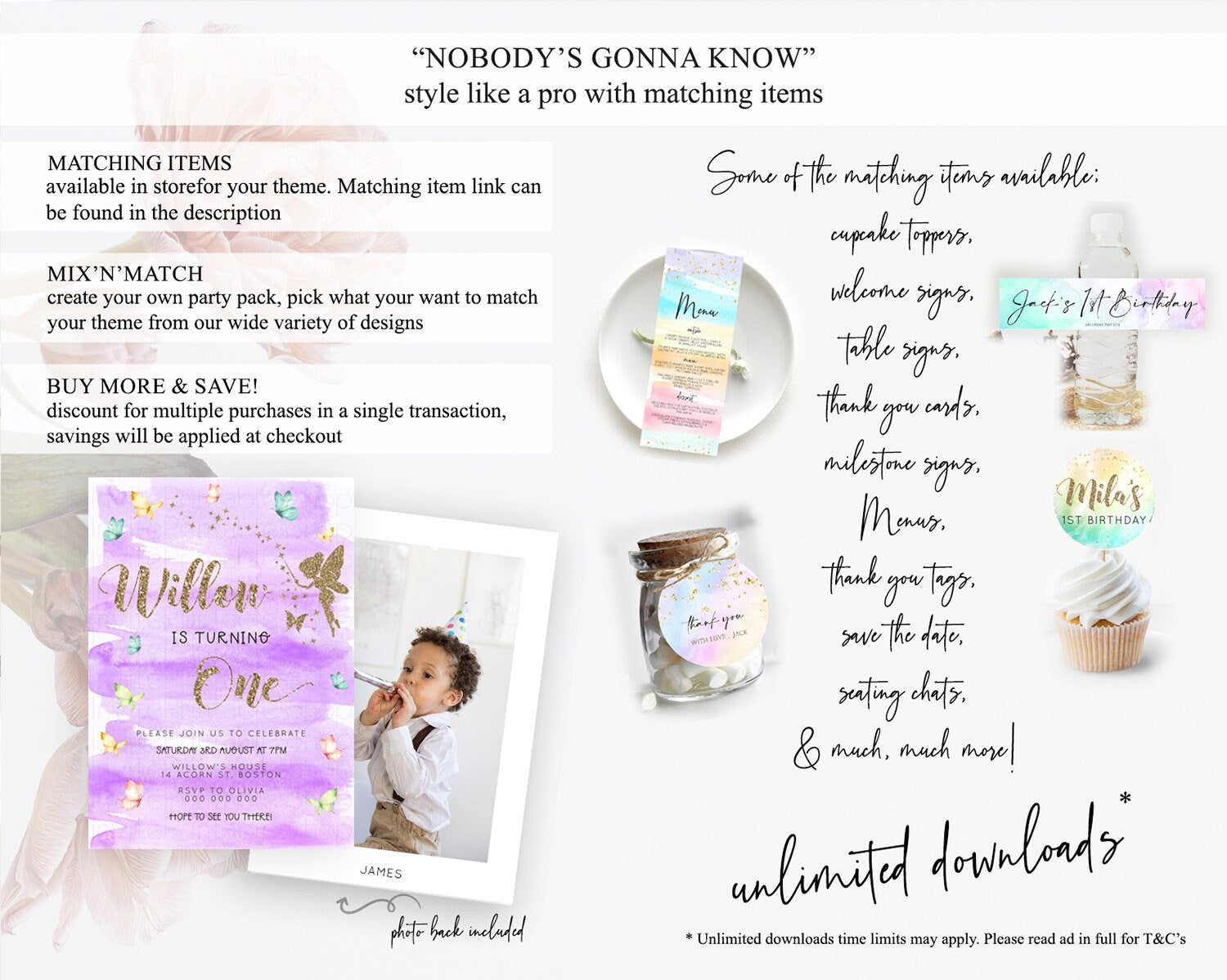 Pastel Fairy Birthday Invitation Pastel Butterflies Fairy Birthday Invitation Rainbow Ombre Watercolor 1st 2nd Birthday Invitation D23327