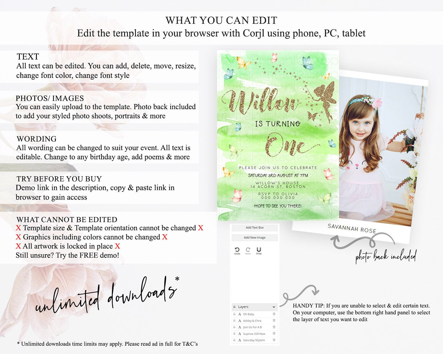 • After purchase, Corjl emails your editing link. Allow up to 15 minutes for delivery.