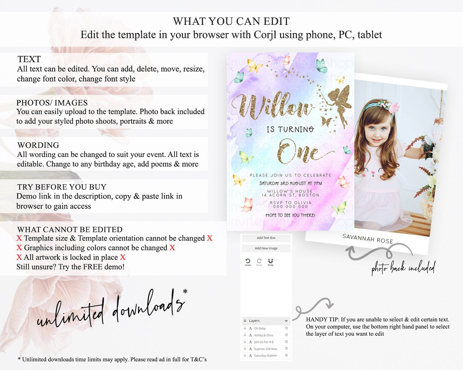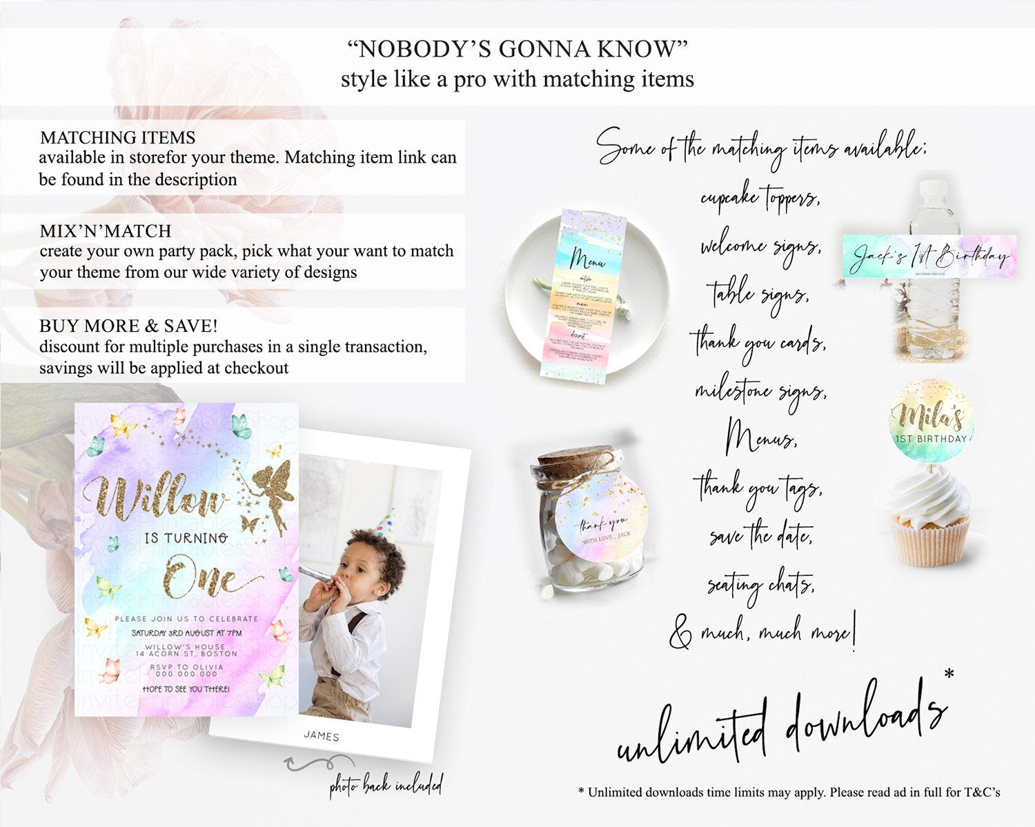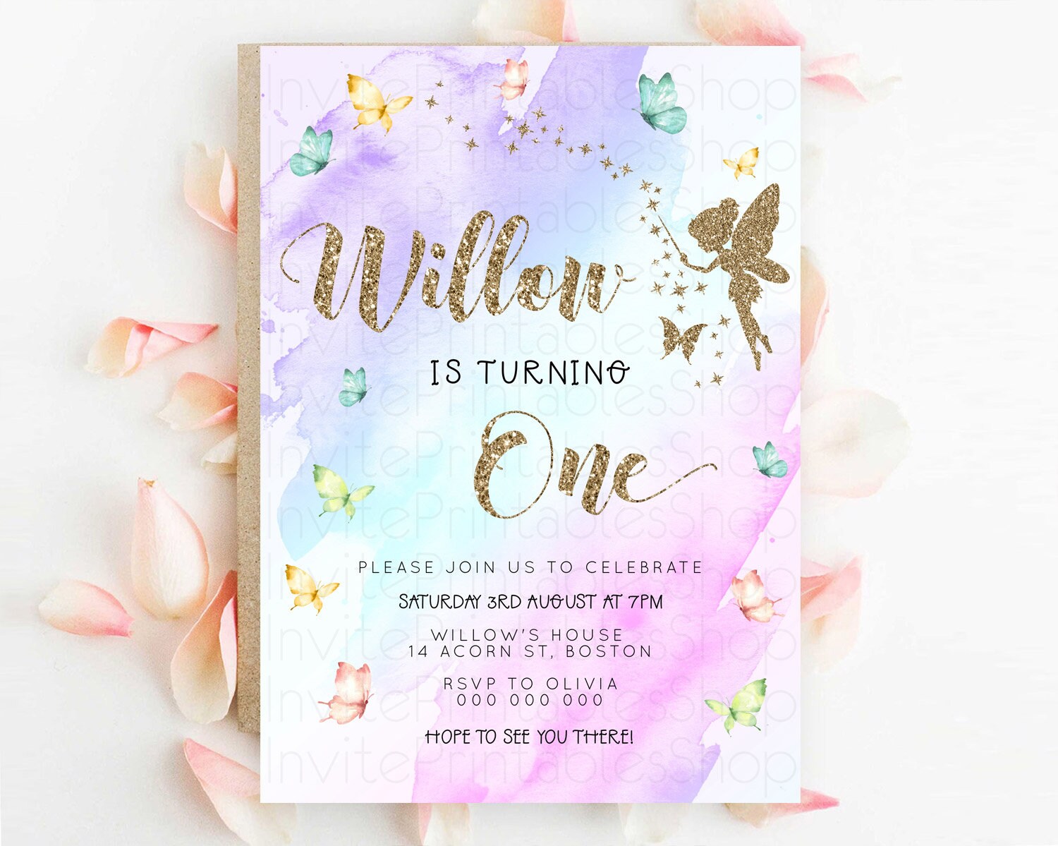 Pastel Fairy Birthday Invitation Pastel Butterflies Fairy Birthday Invitation Rainbow Ombre Watercolor 1st 2nd Birthday Invitation D23330