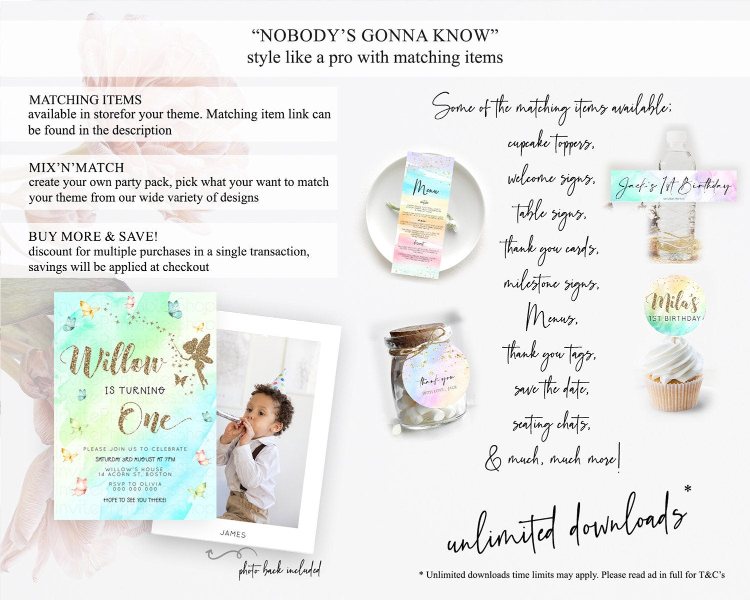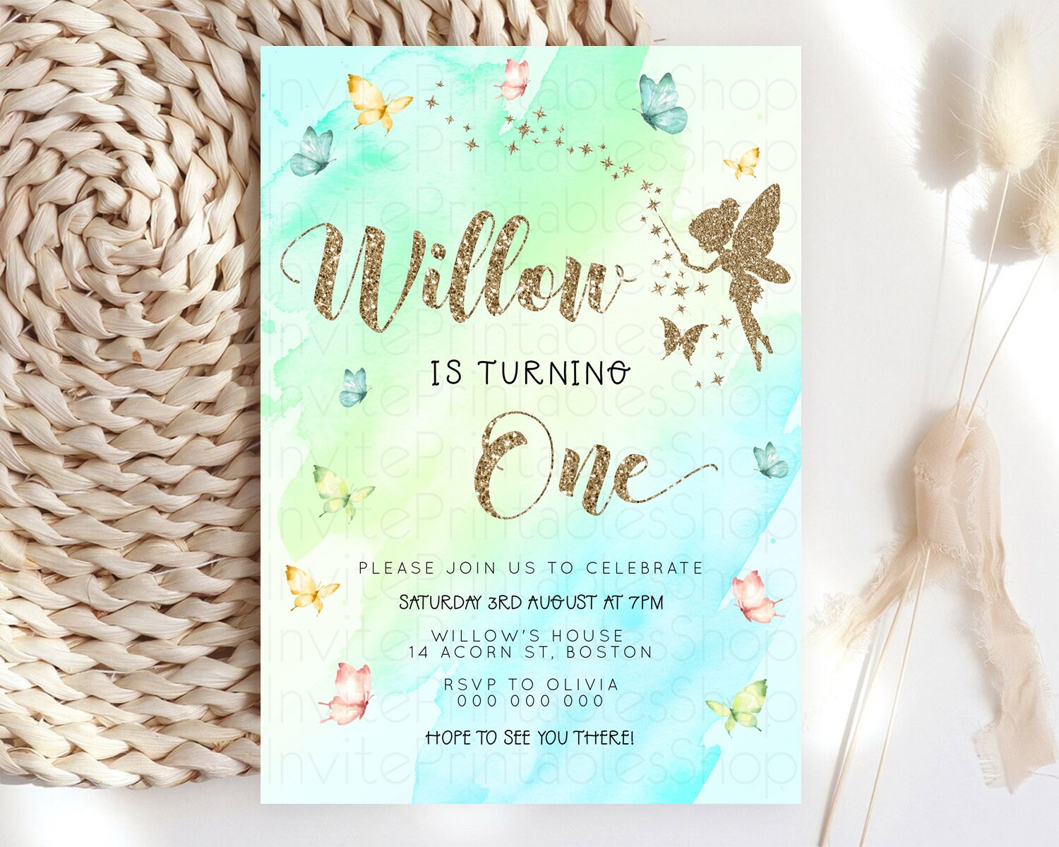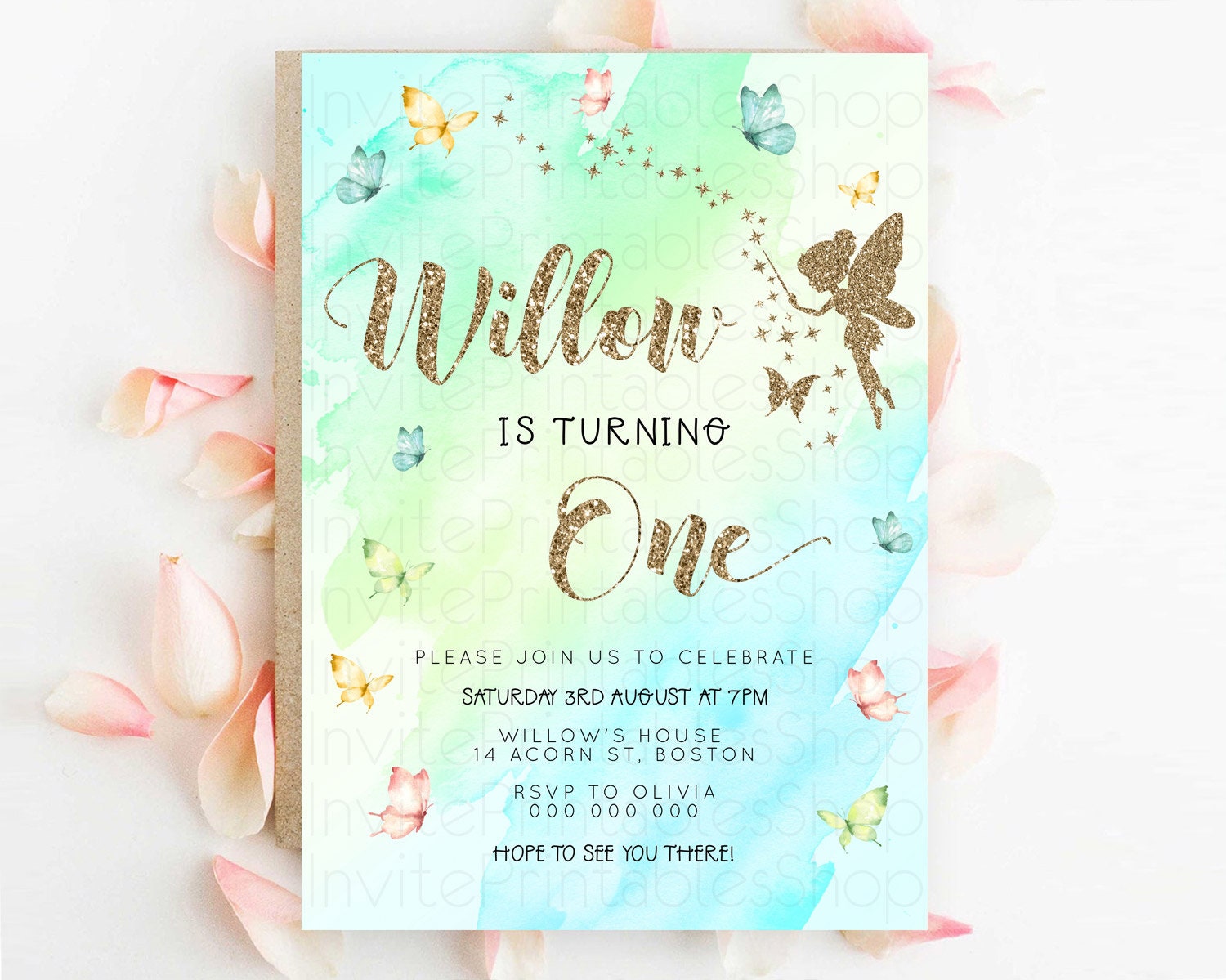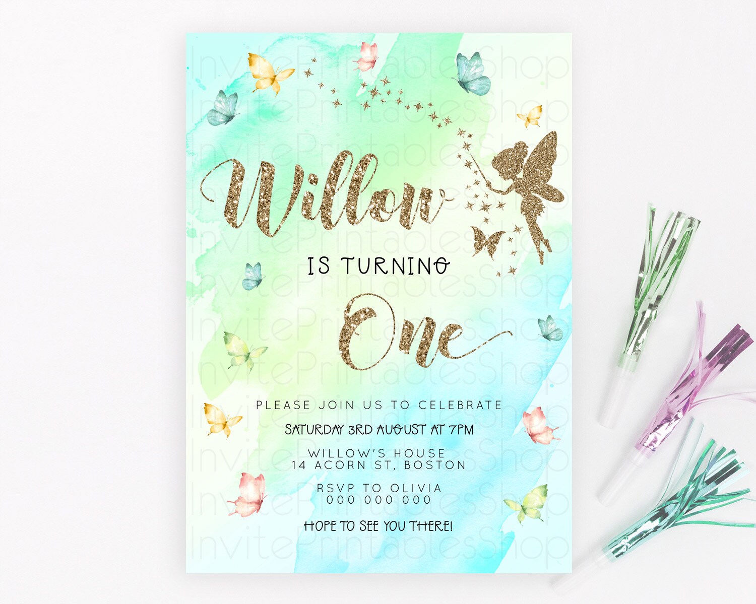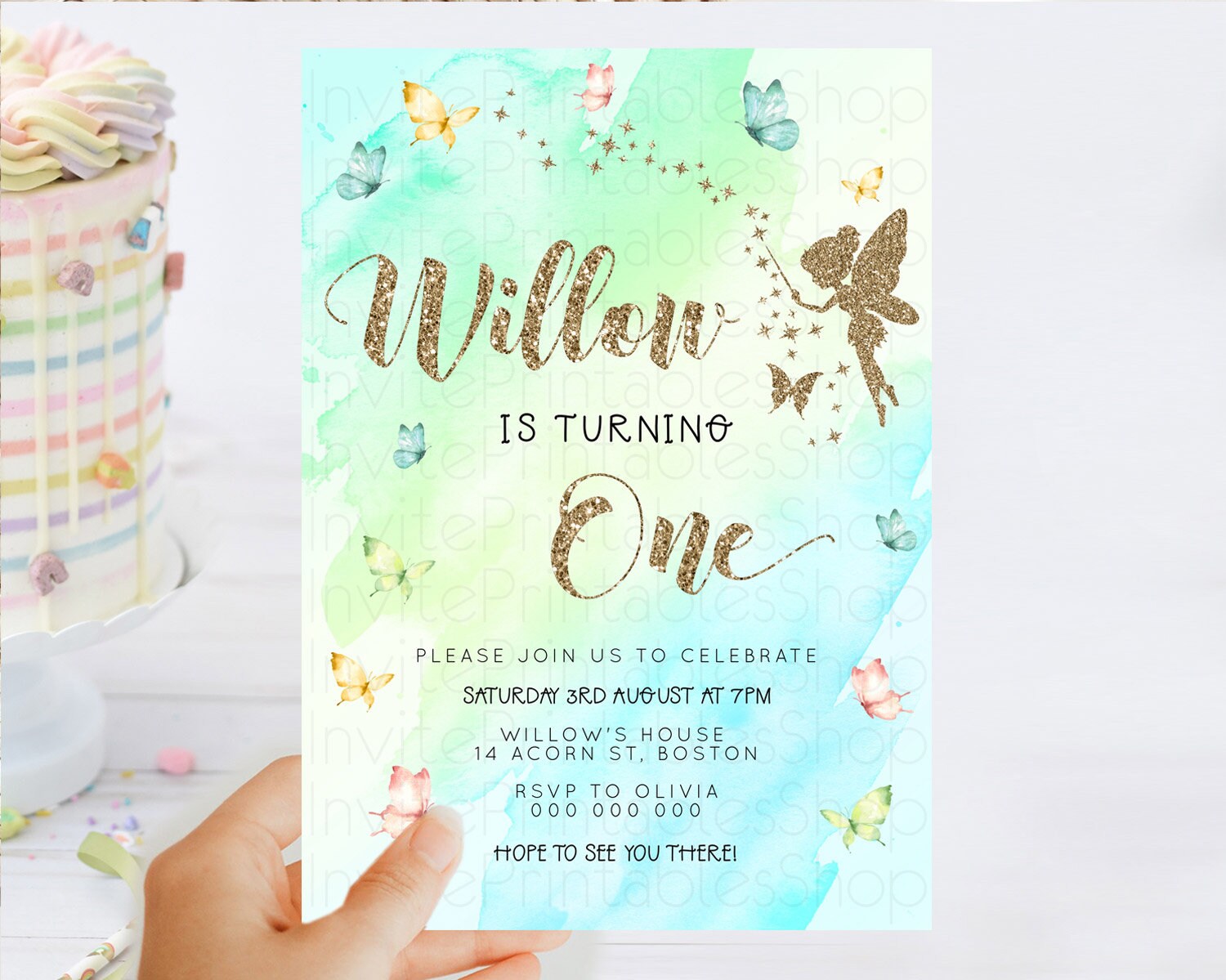 Pastel Fairy Birthday Invitation Pastel Butterflies Fairy Birthday Invitation Rainbow Ombre Watercolor 1st 2nd Birthday Invitation D23334