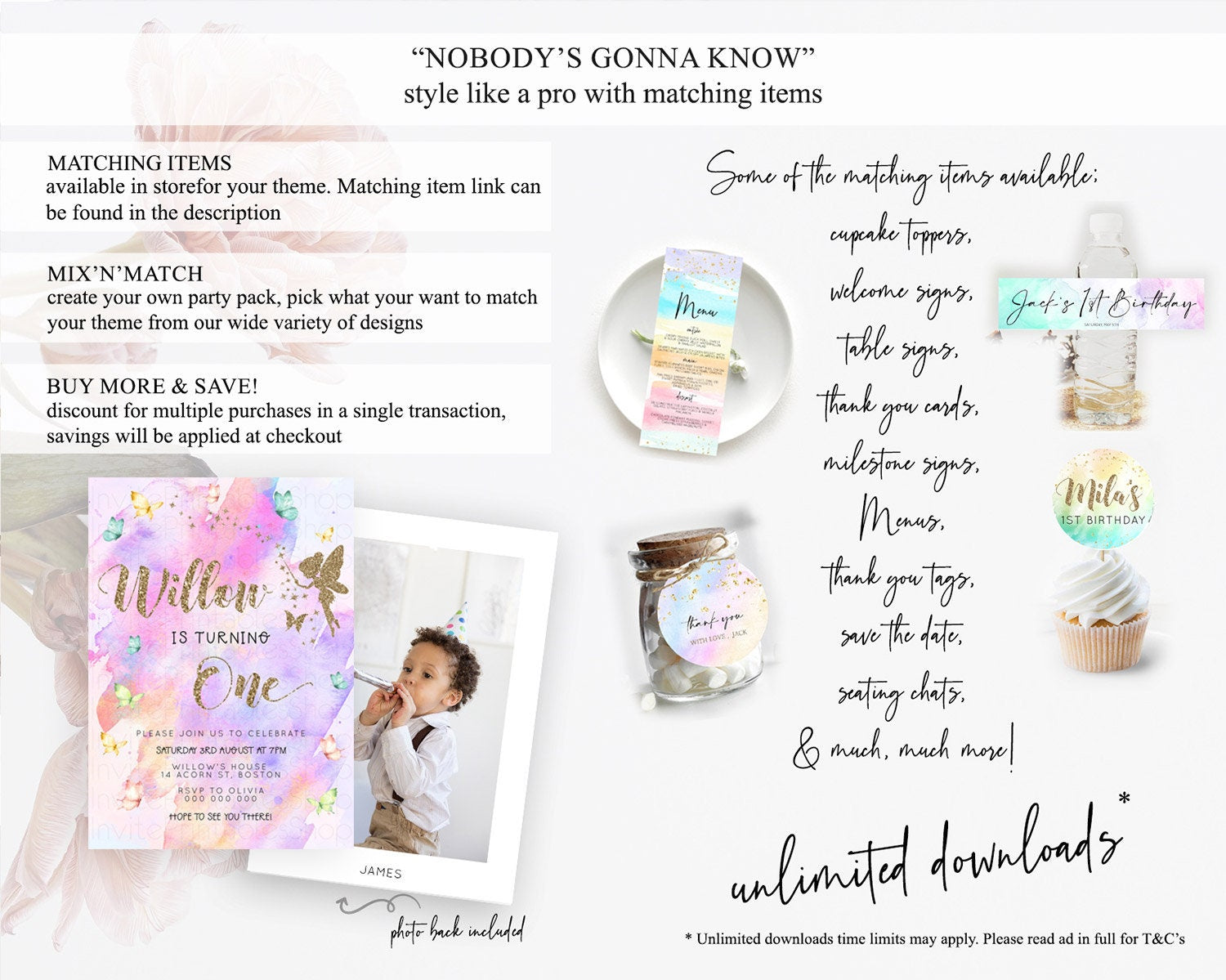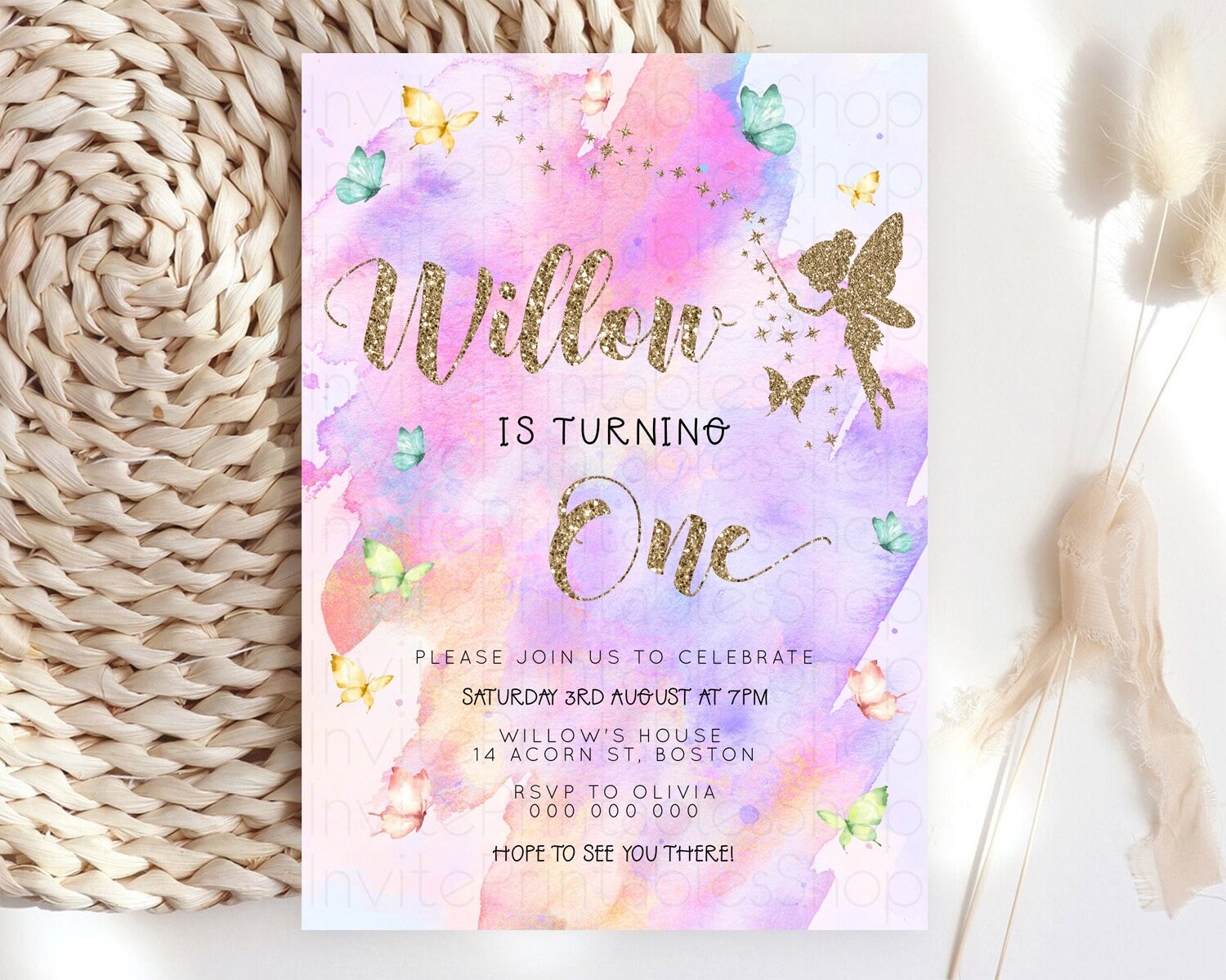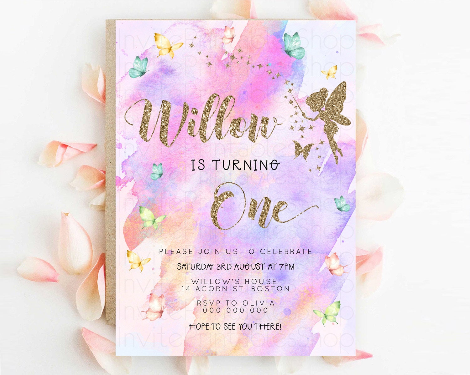 Pastel Fairy Birthday Invitation Pastel Butterflies Fairy Birthday Invitation Rainbow Ombre Watercolor 1st 2nd Birthday Invitation D23345