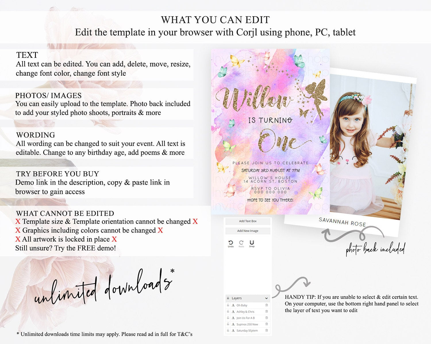 • After purchase, Corjl emails your editing link. Allow up to 15 minutes for delivery.