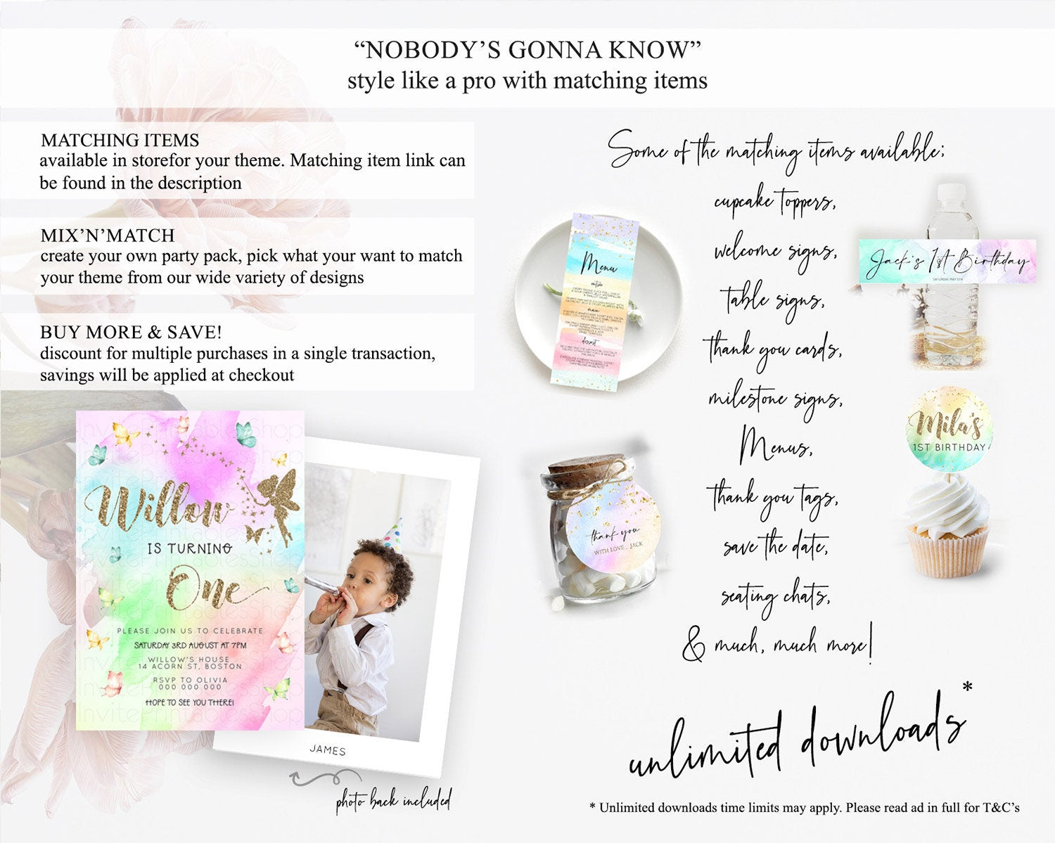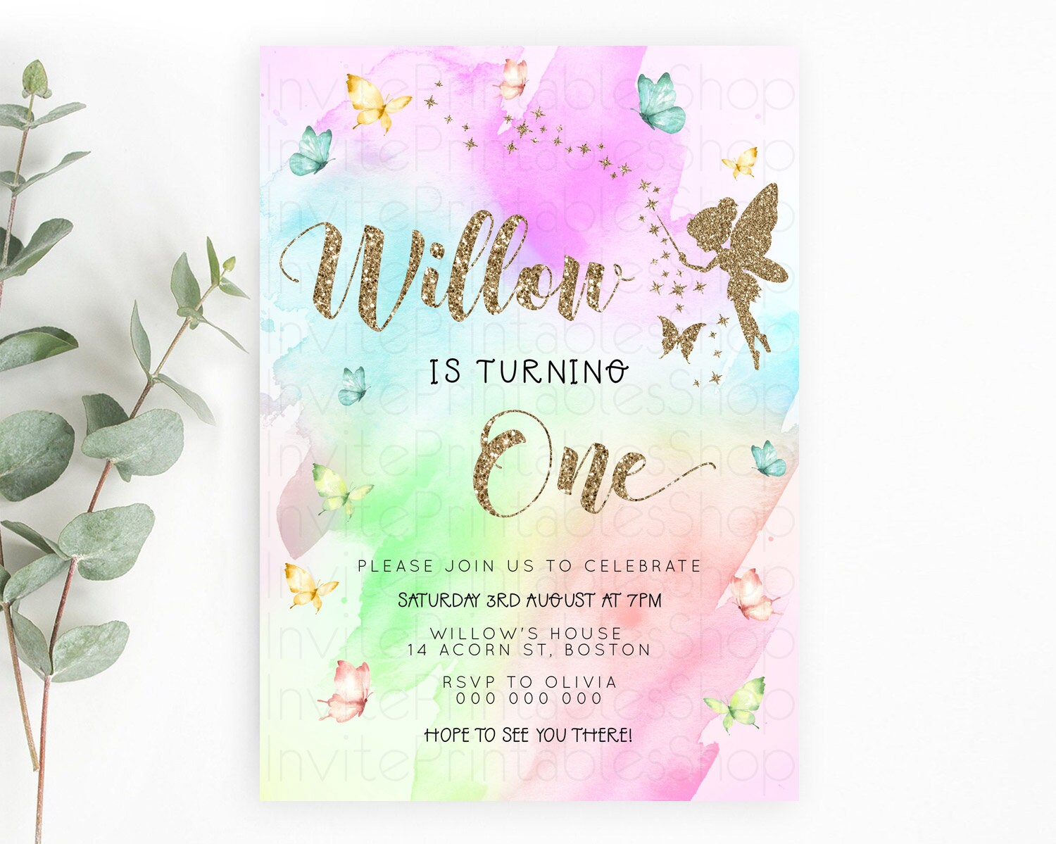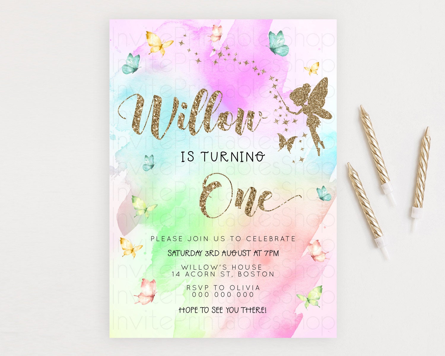 Pastel Fairy Birthday Invitation Pastel Butterflies Fairy Birthday Invitation Rainbow Ombre Watercolor 1st 2nd Birthday Invitation D23350