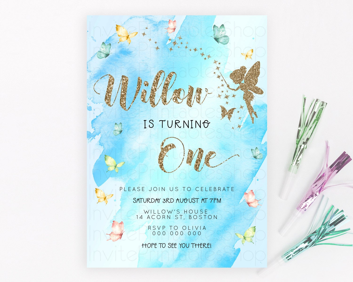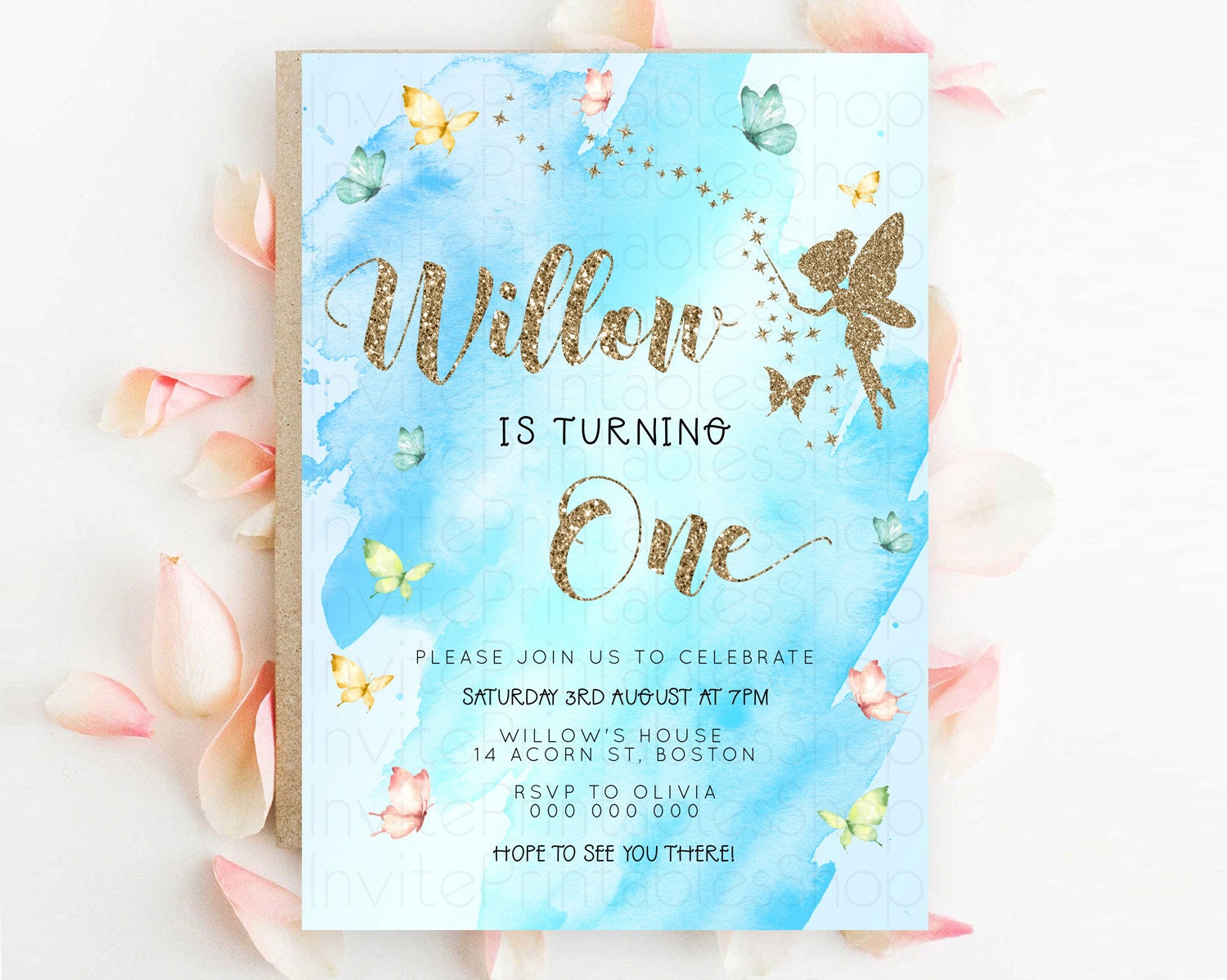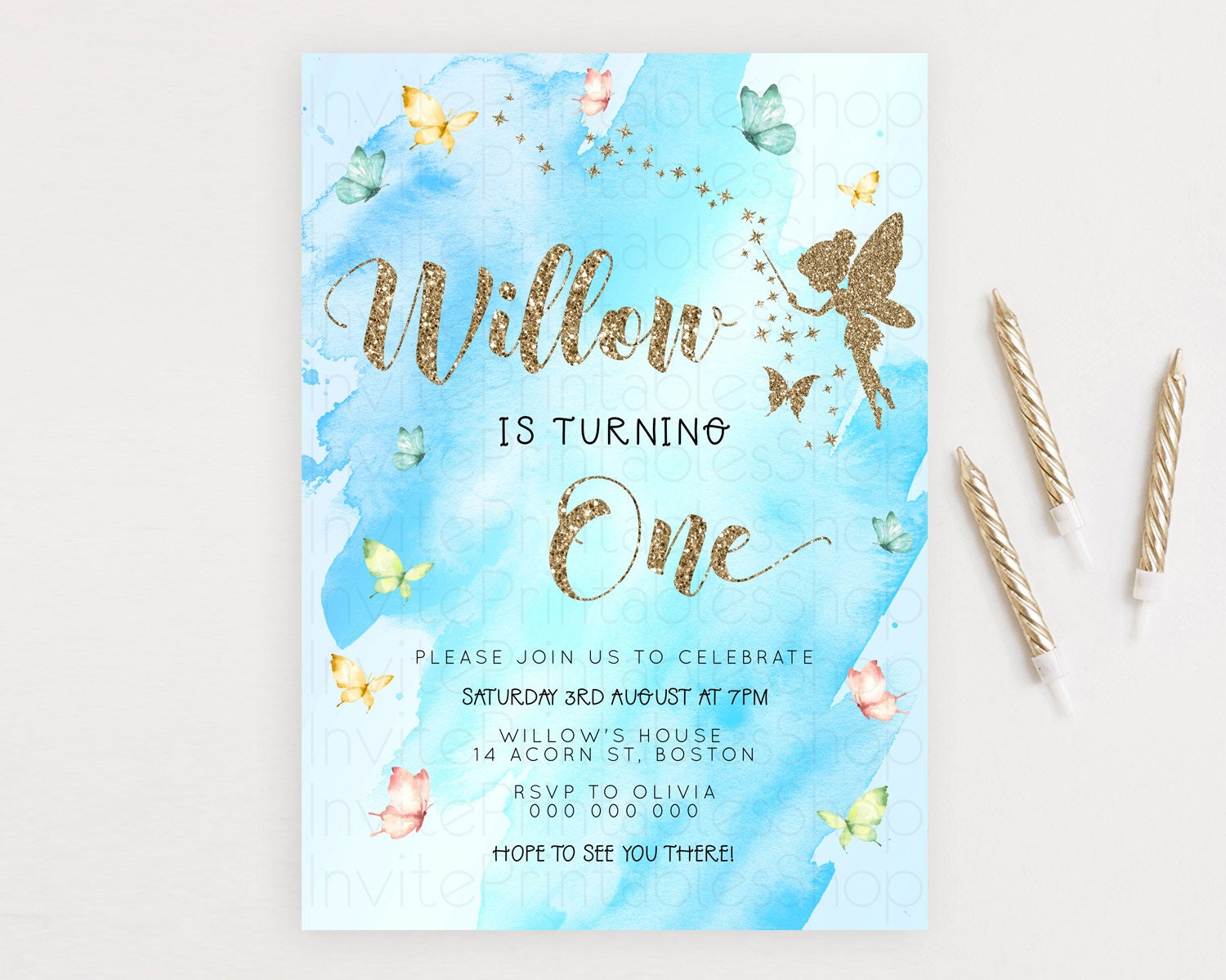 Pastel Fairy Birthday Invitation Pastel Butterflies Fairy Birthday Invitation Rainbow Ombre Watercolor 1st 2nd Birthday Invitation D23354