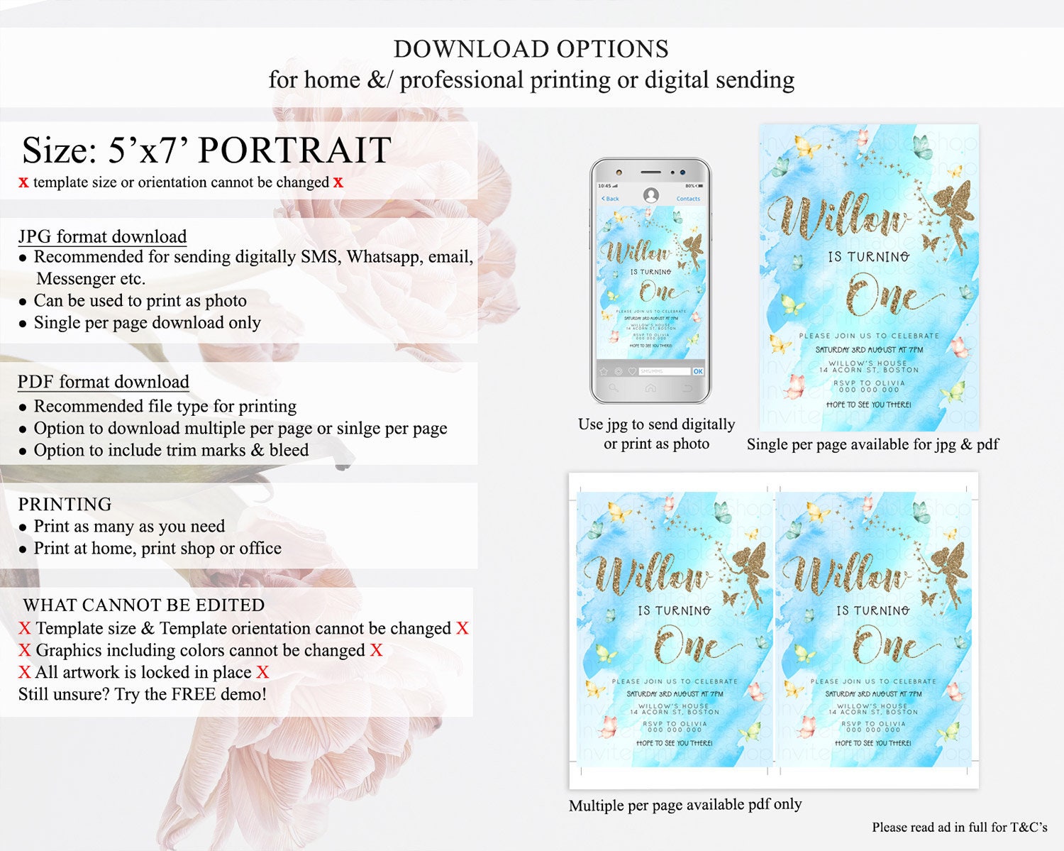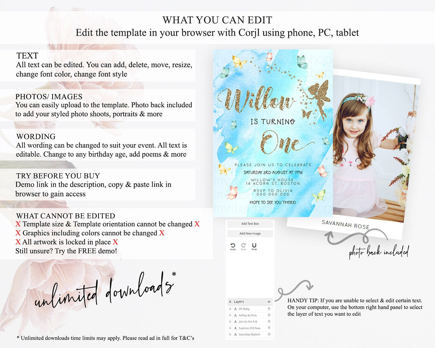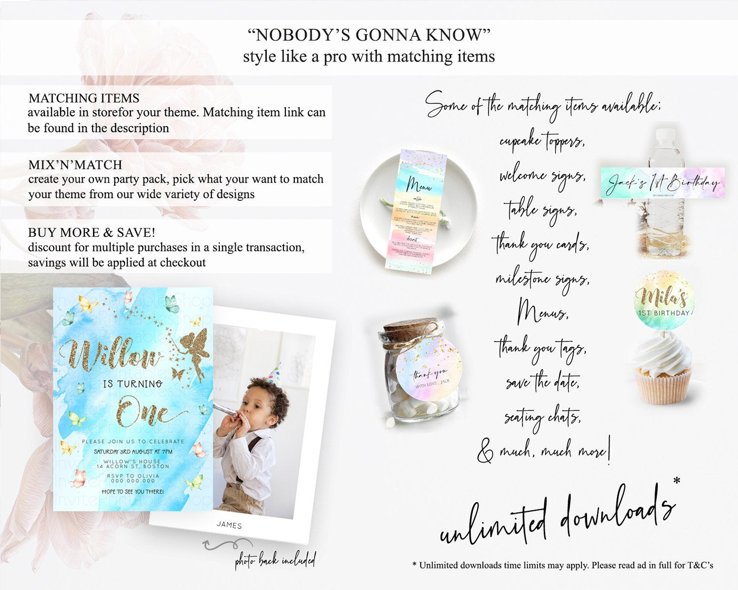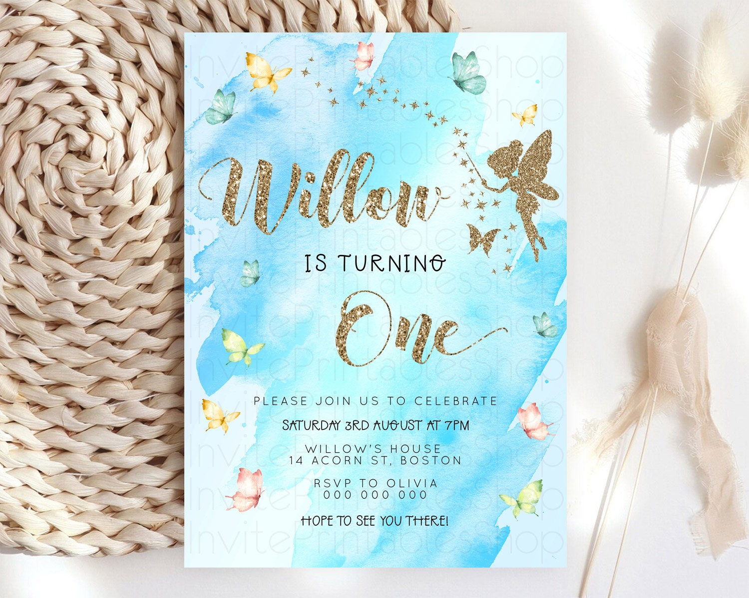 Pastel Fairy Birthday Invitation Pastel Butterflies Fairy Birthday Invitation Rainbow Ombre Watercolor 1st 2nd Birthday Invitation D23354