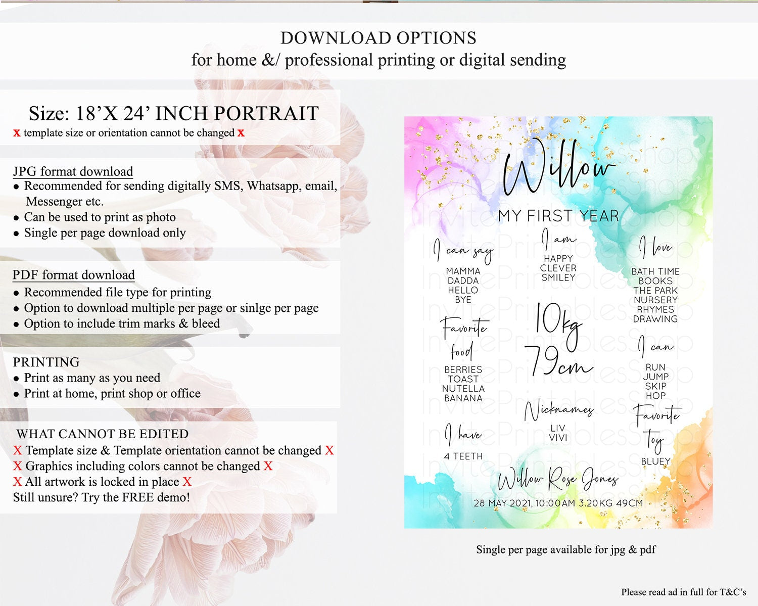 • Template size & orientation cannot be changed. Please use the demo link to confirm this product suits your needs.