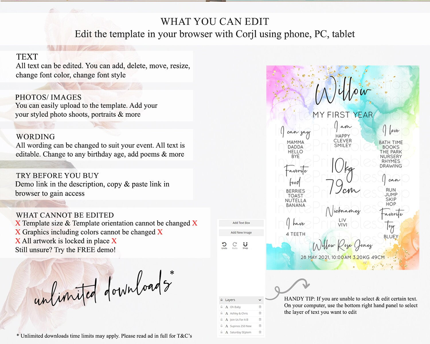 • After purchase, Corjl emails your editing link. Allow up to 15 minutes for delivery.