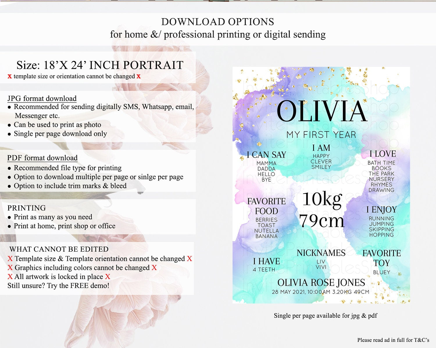 • Template size & orientation cannot be changed. Please use the demo link to confirm this product suits your needs.