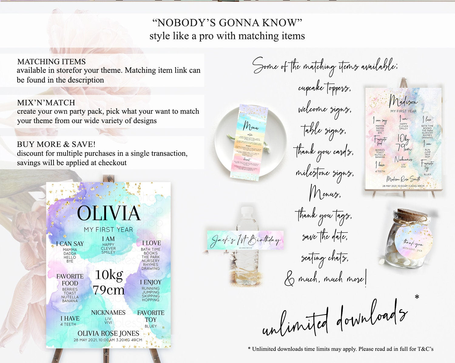 Pastel First Birthday Milestone Board Pastel Rainbow Milestone Poster Colorful Confetti Watercolor Glitter 1st Birthday Welcome Sign D10212