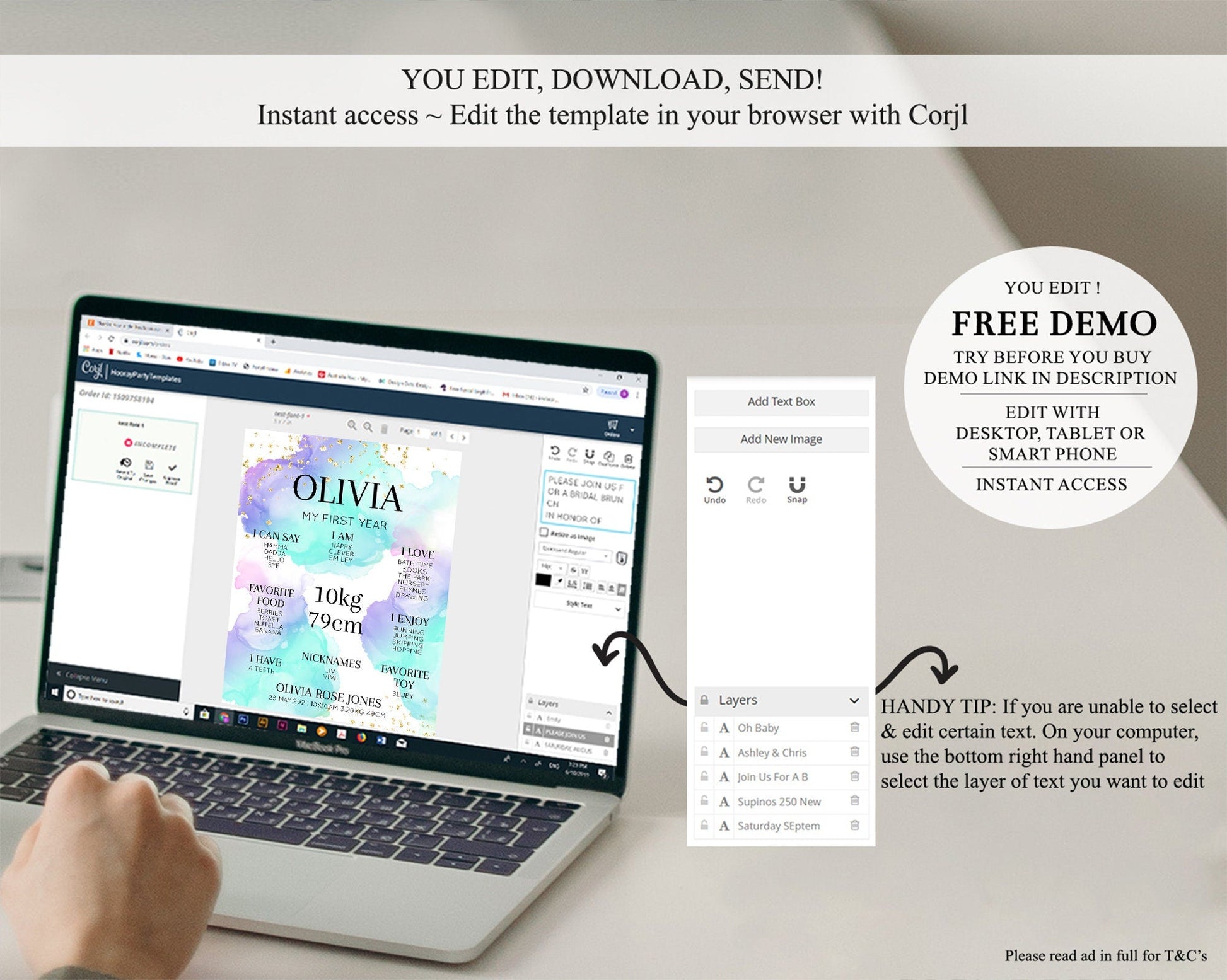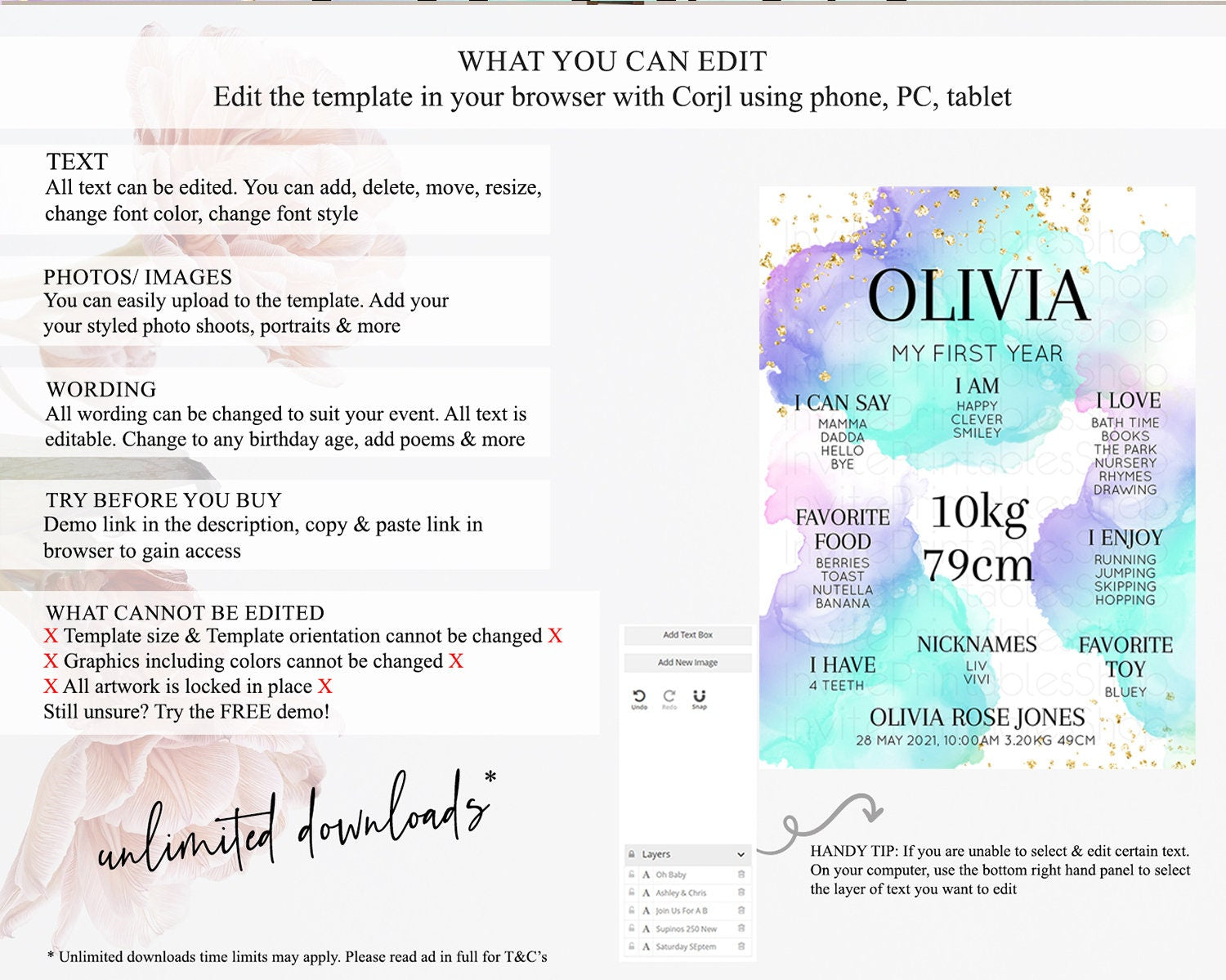 • After purchase, Corjl emails your editing link. Allow up to 15 minutes for delivery.