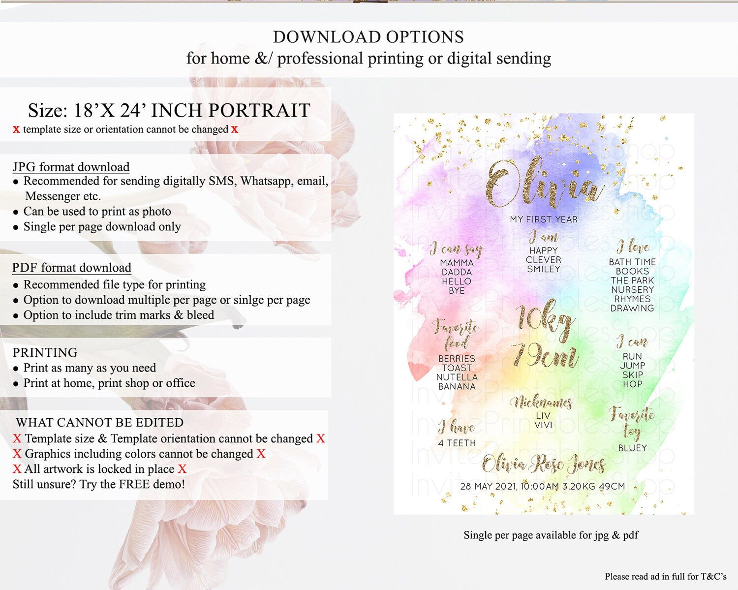 • Template size & orientation cannot be changed. Please use the demo link to confirm this product suits your needs.