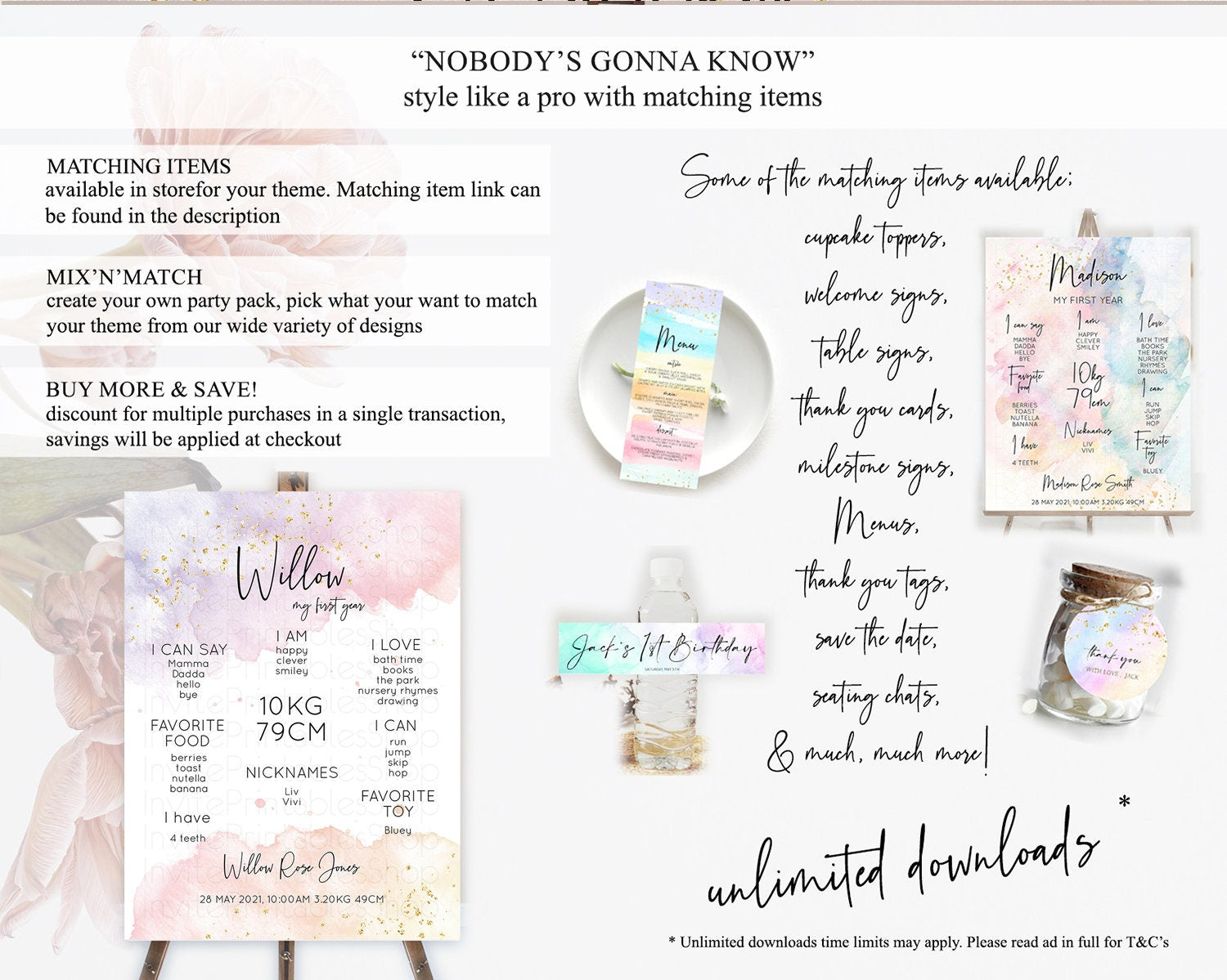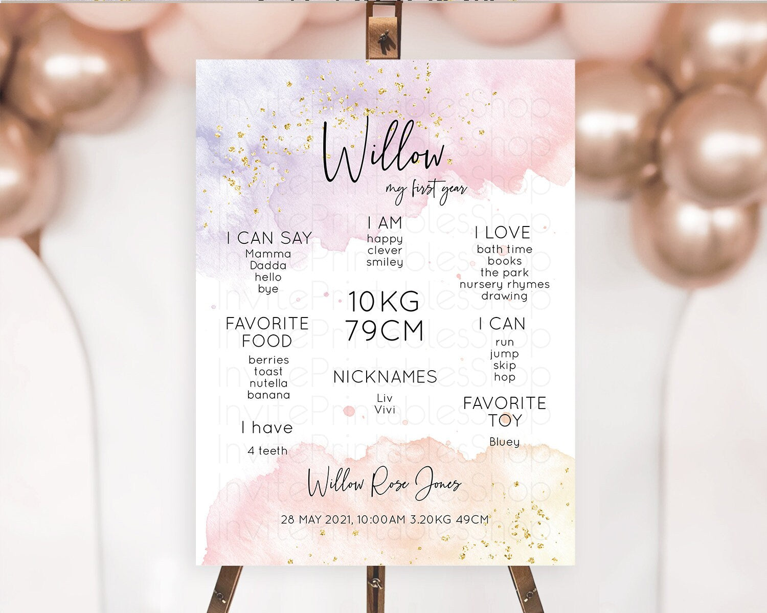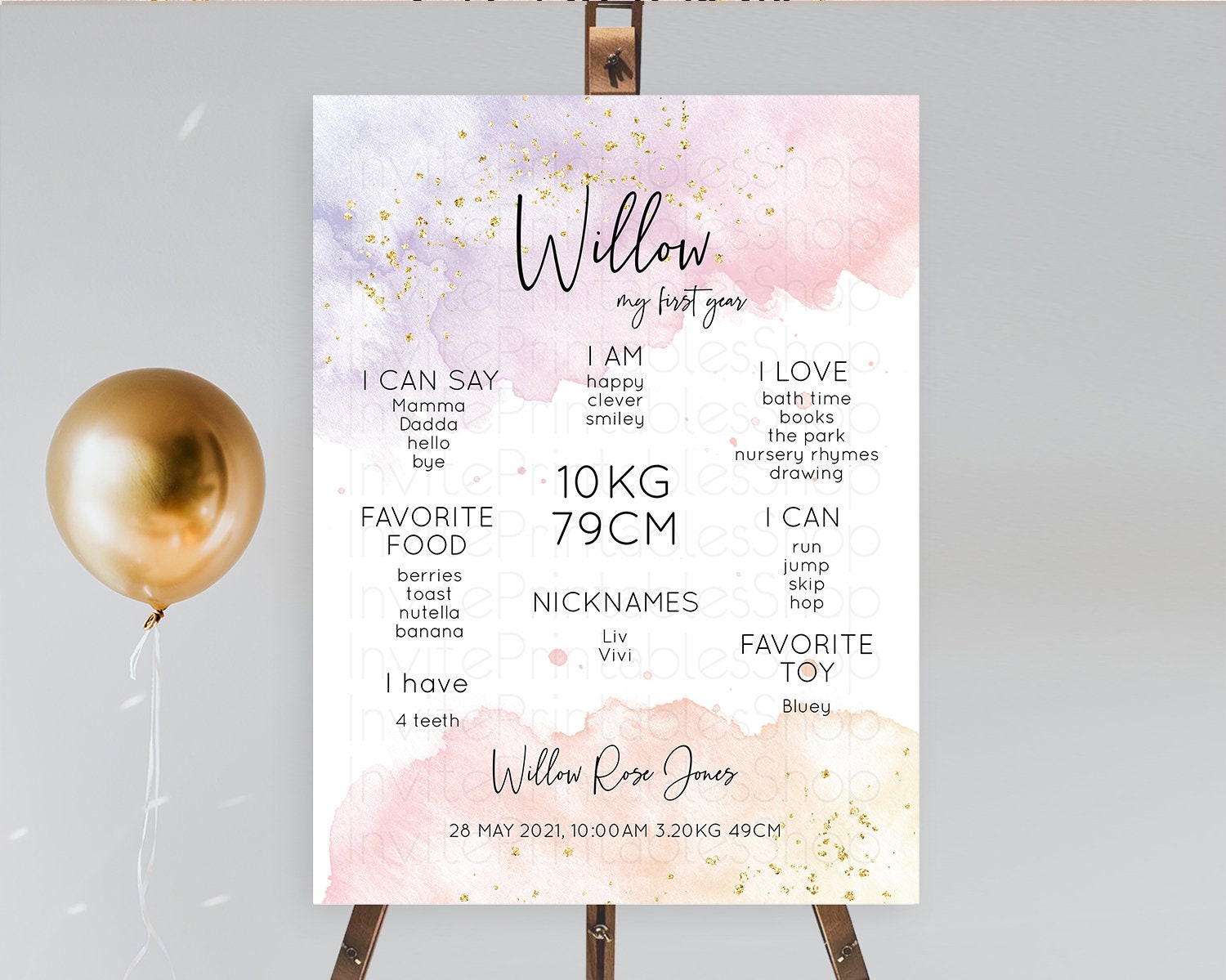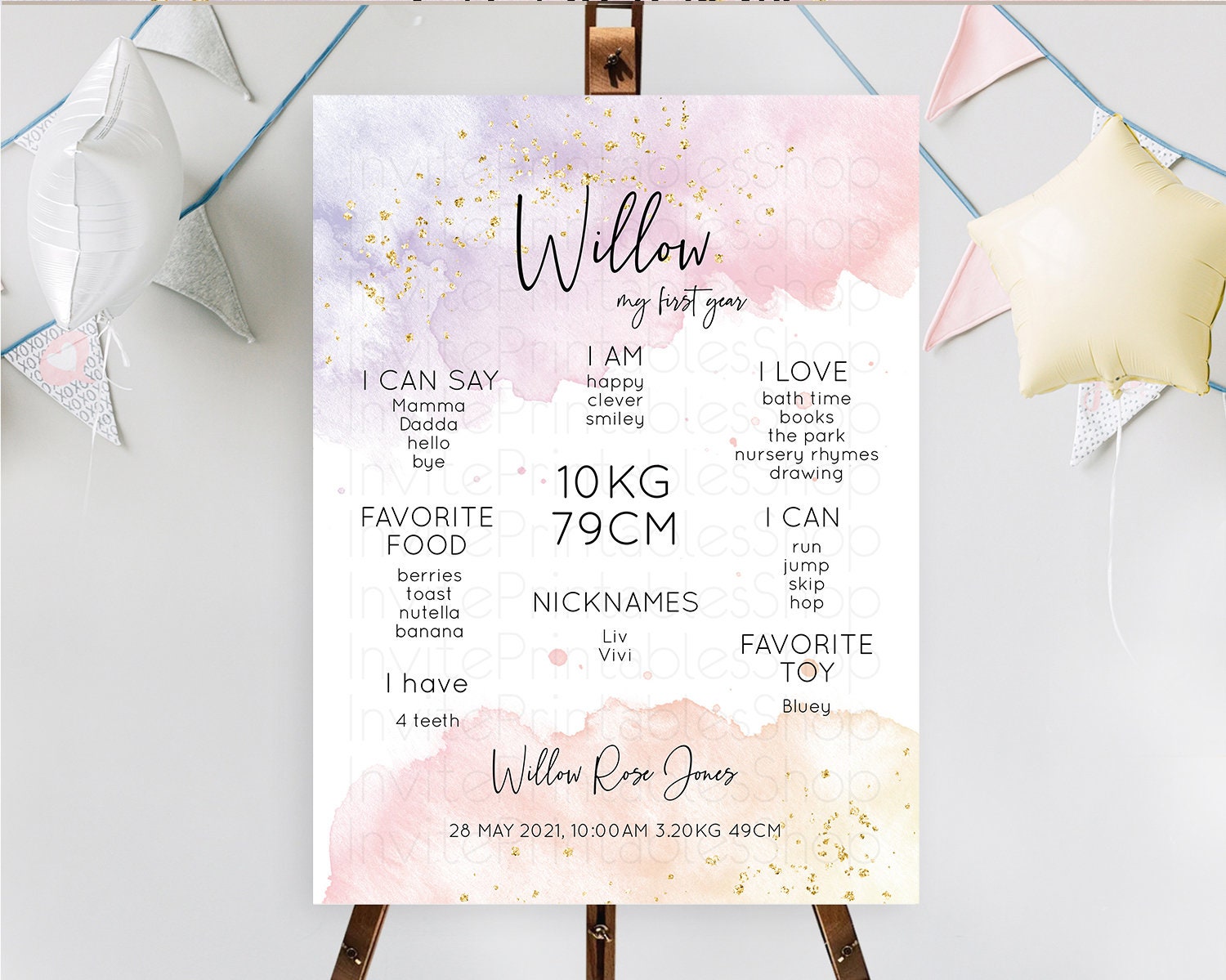 Pastel First Birthday Milestone Board Pastel Rainbow Milestone Poster Colorful Confetti Watercolor Glitter 1st Birthday Welcome Sign D10327