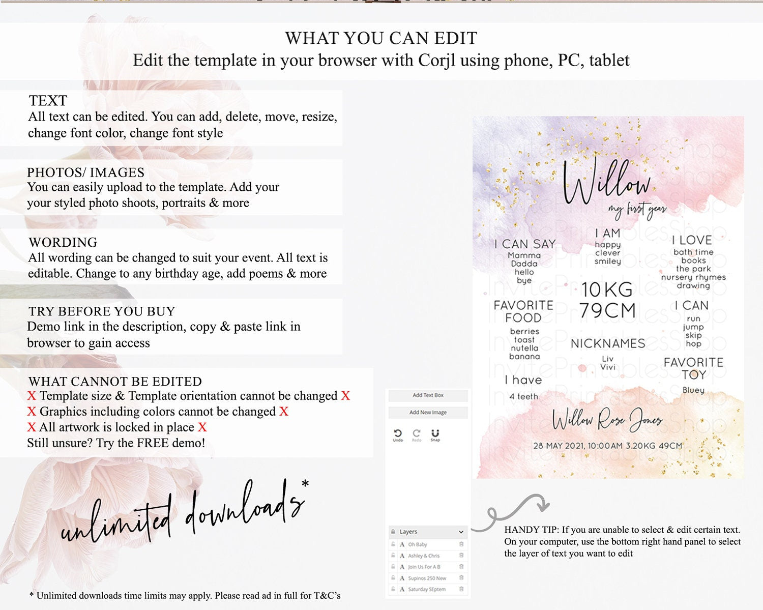 • After purchase, Corjl emails your editing link. Allow up to 15 minutes for delivery.