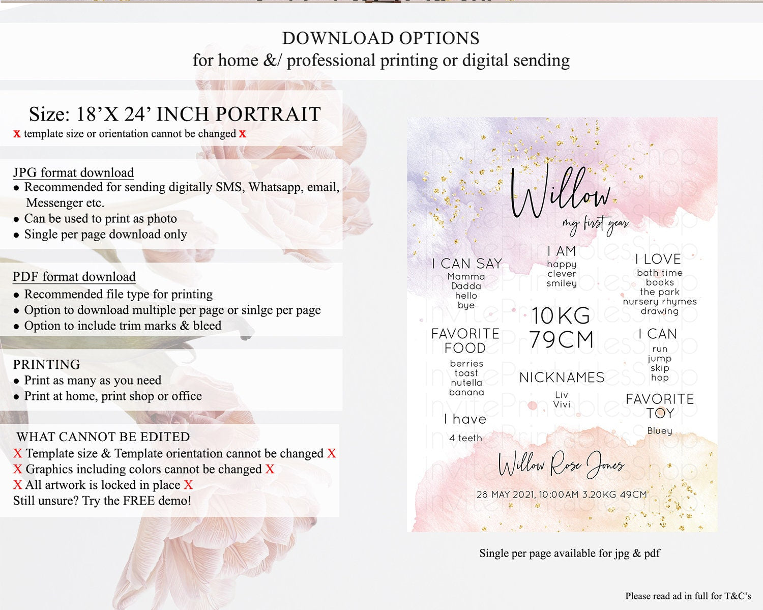 • Template size & orientation cannot be changed. Please use the demo link to confirm this product suits your needs.