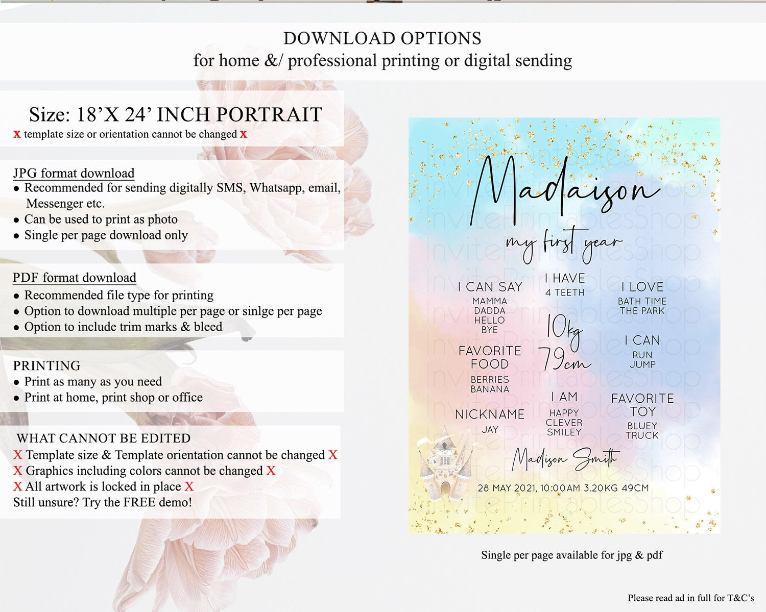 • Template size & orientation cannot be changed. Please use the demo link to confirm this product suits your needs.