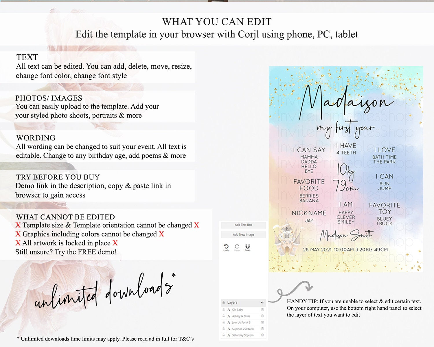 • After purchase, Corjl emails your editing link. Allow up to 15 minutes for delivery.