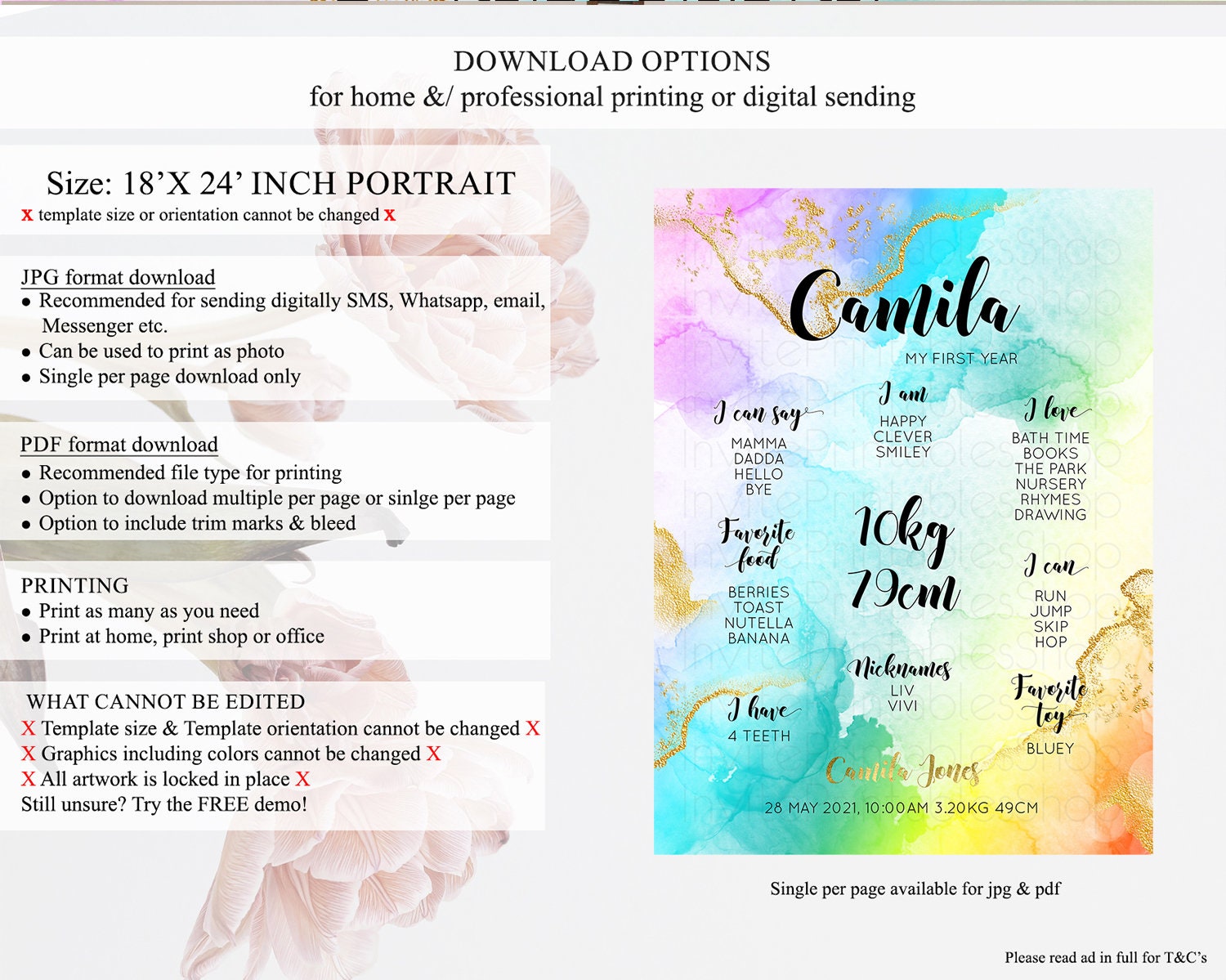• Template size & orientation cannot be changed. Please use the demo link to confirm this product suits your needs.