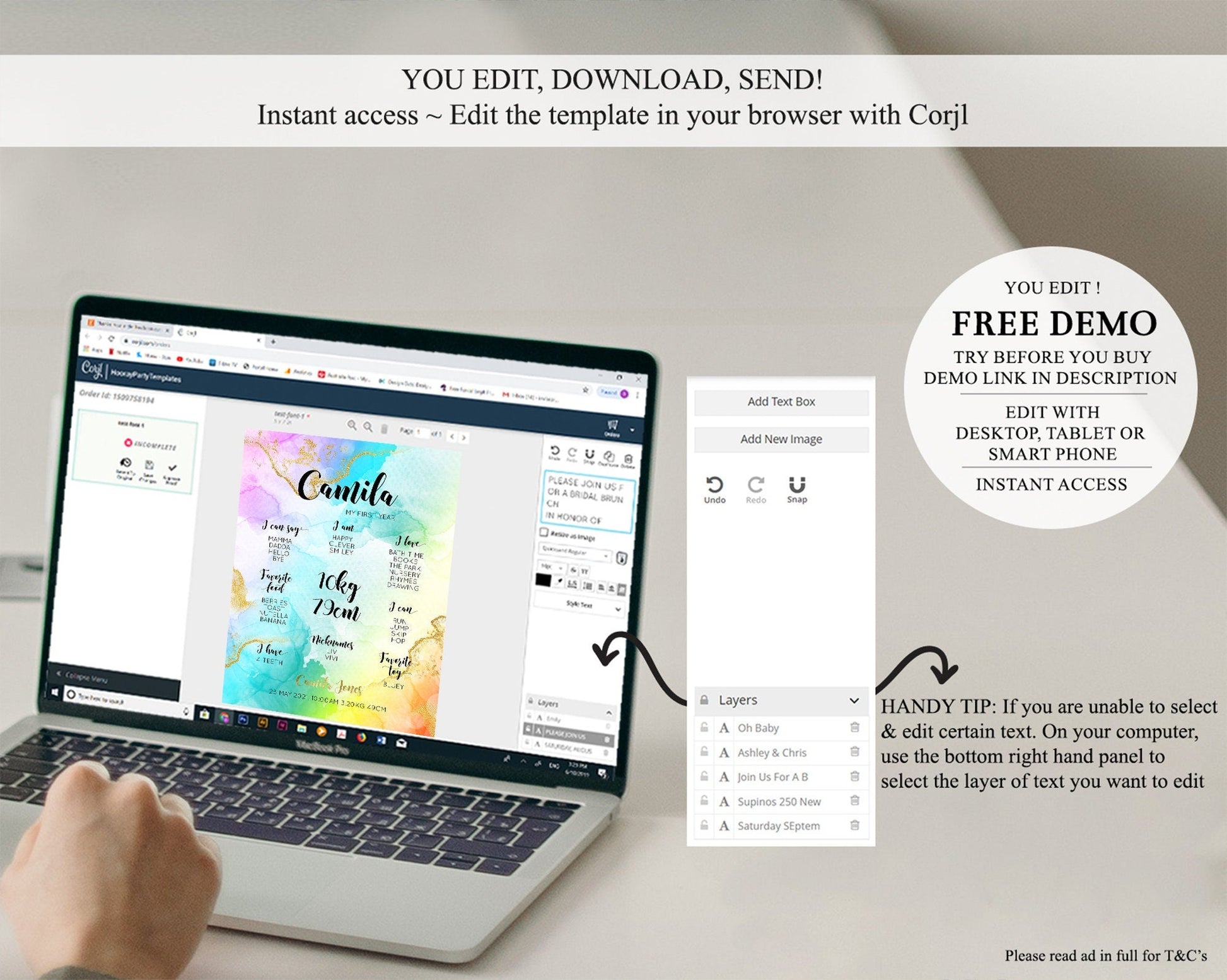 • After purchase, Corjl emails your editing link. Allow up to 15 minutes for delivery.