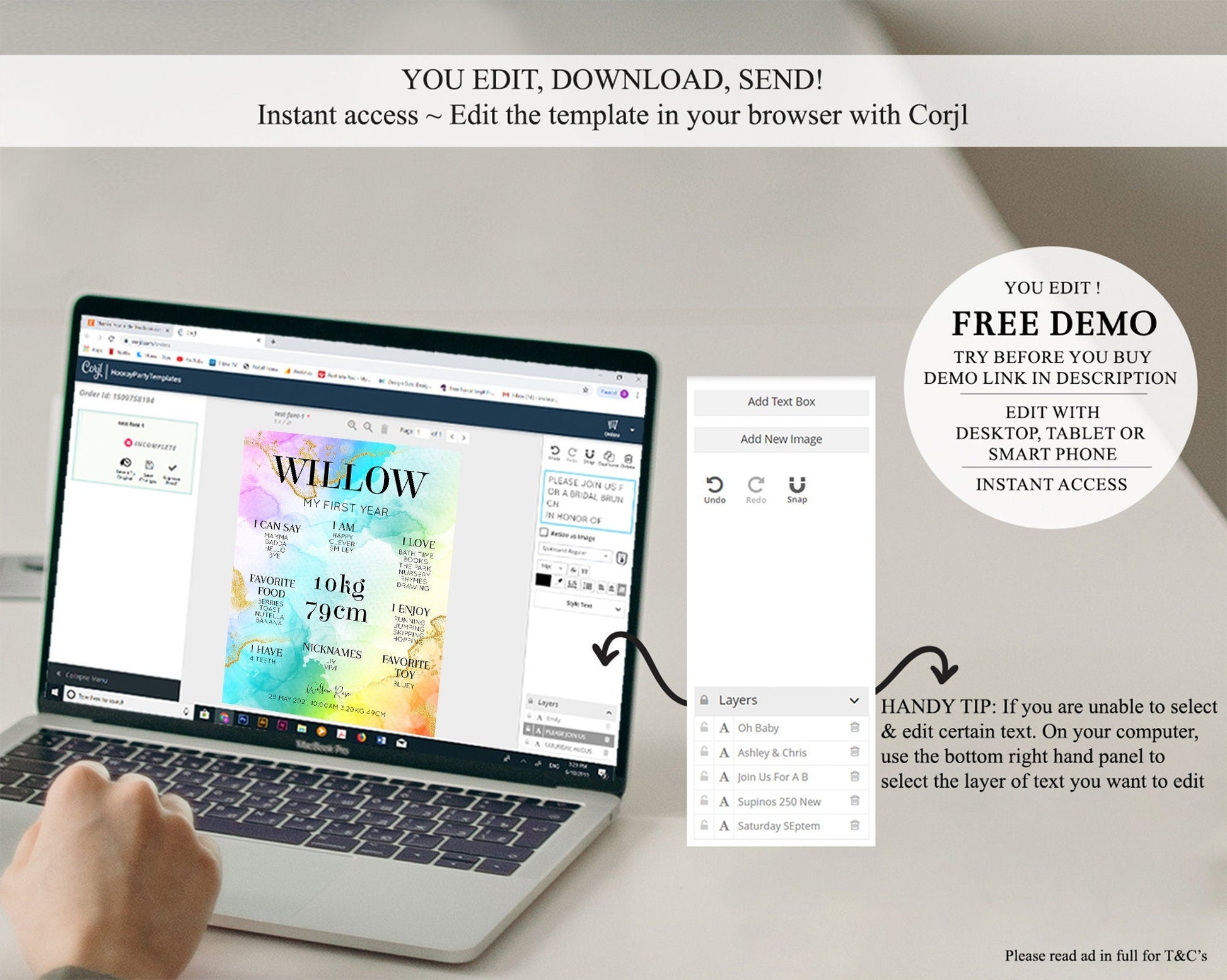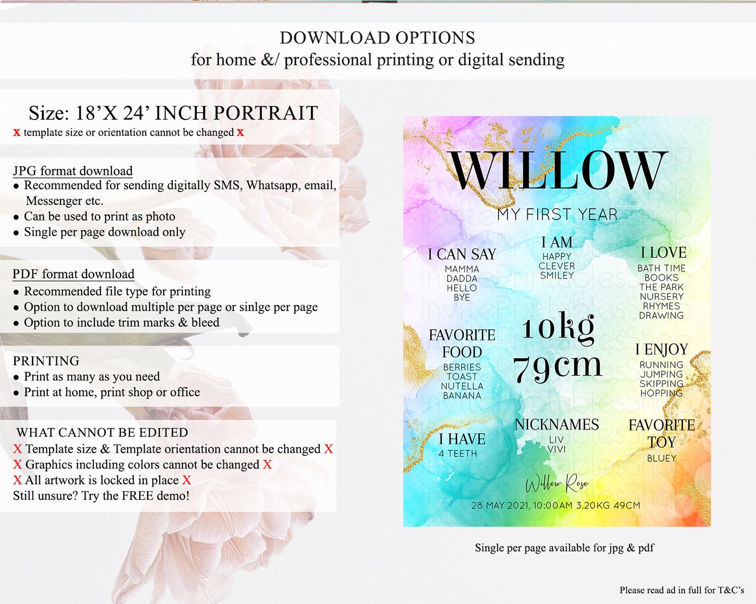 • Template size & orientation cannot be changed. Please use the demo link to confirm this product suits your needs.