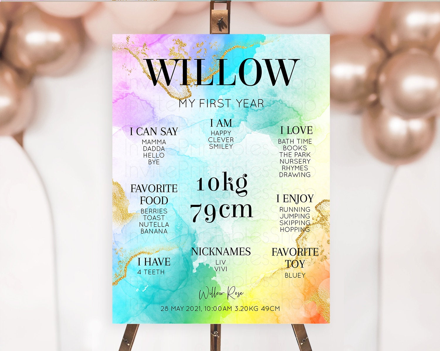 Pastel First Birthday Milestone Board Pastel Rainbow Milestone Poster Colorful Confetti Watercolor Glitter 1st Birthday Welcome Sign D10393
